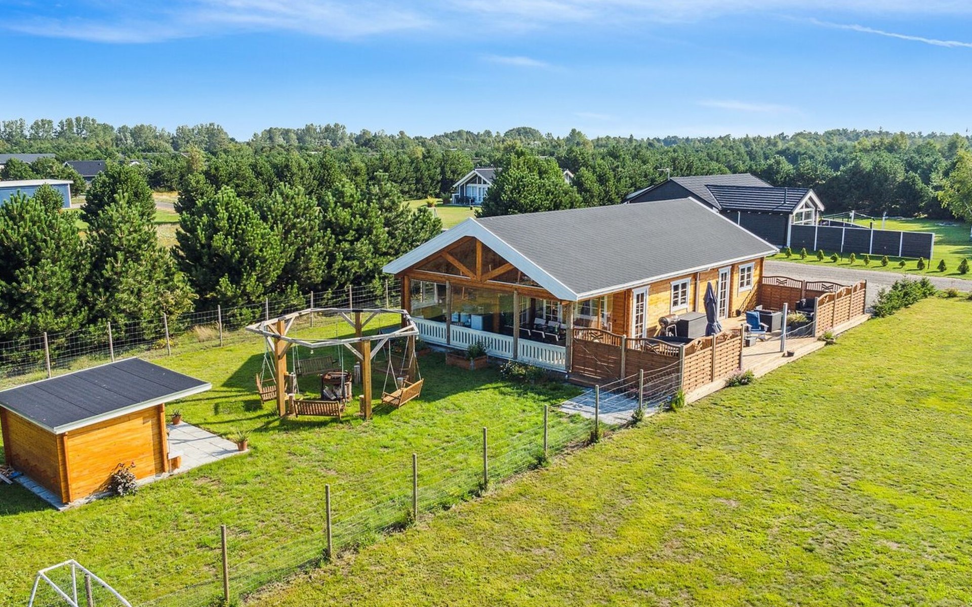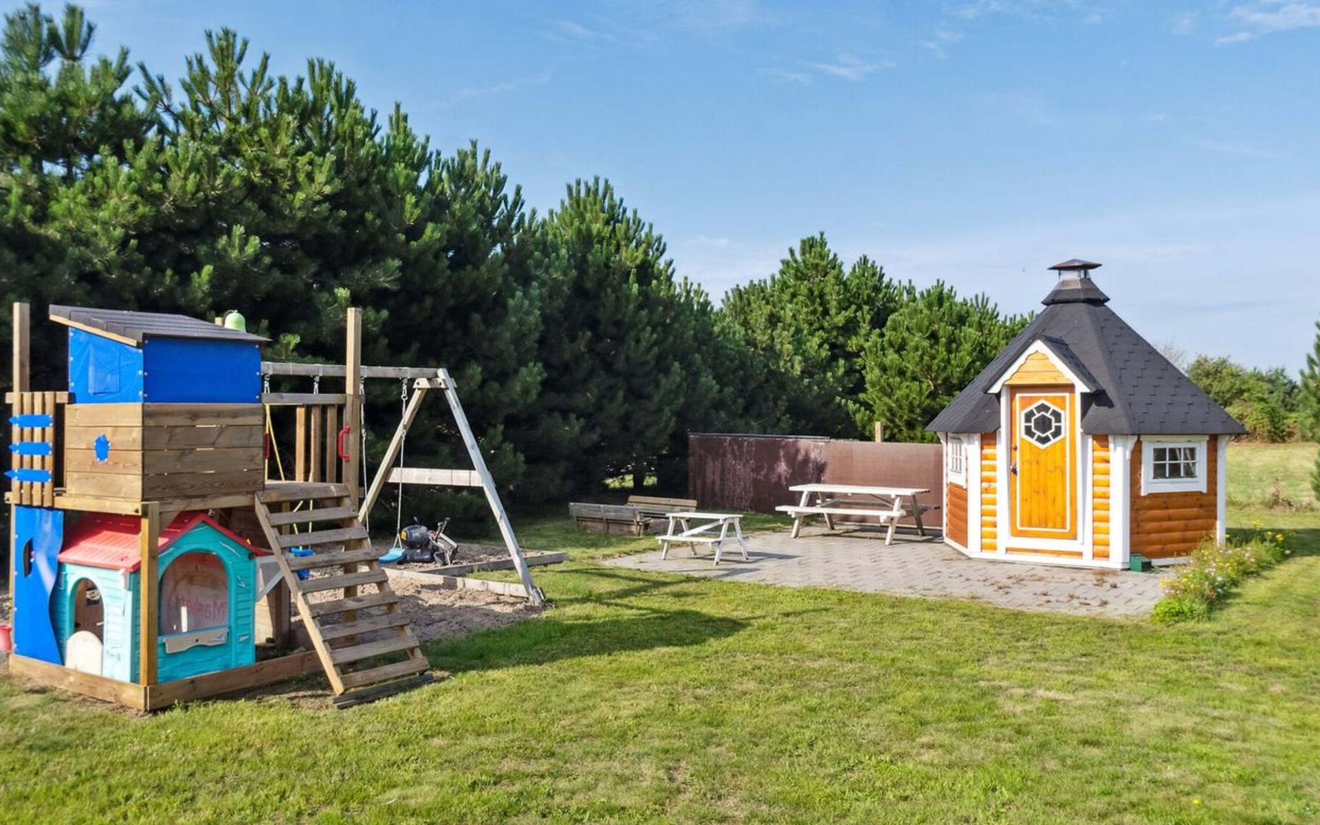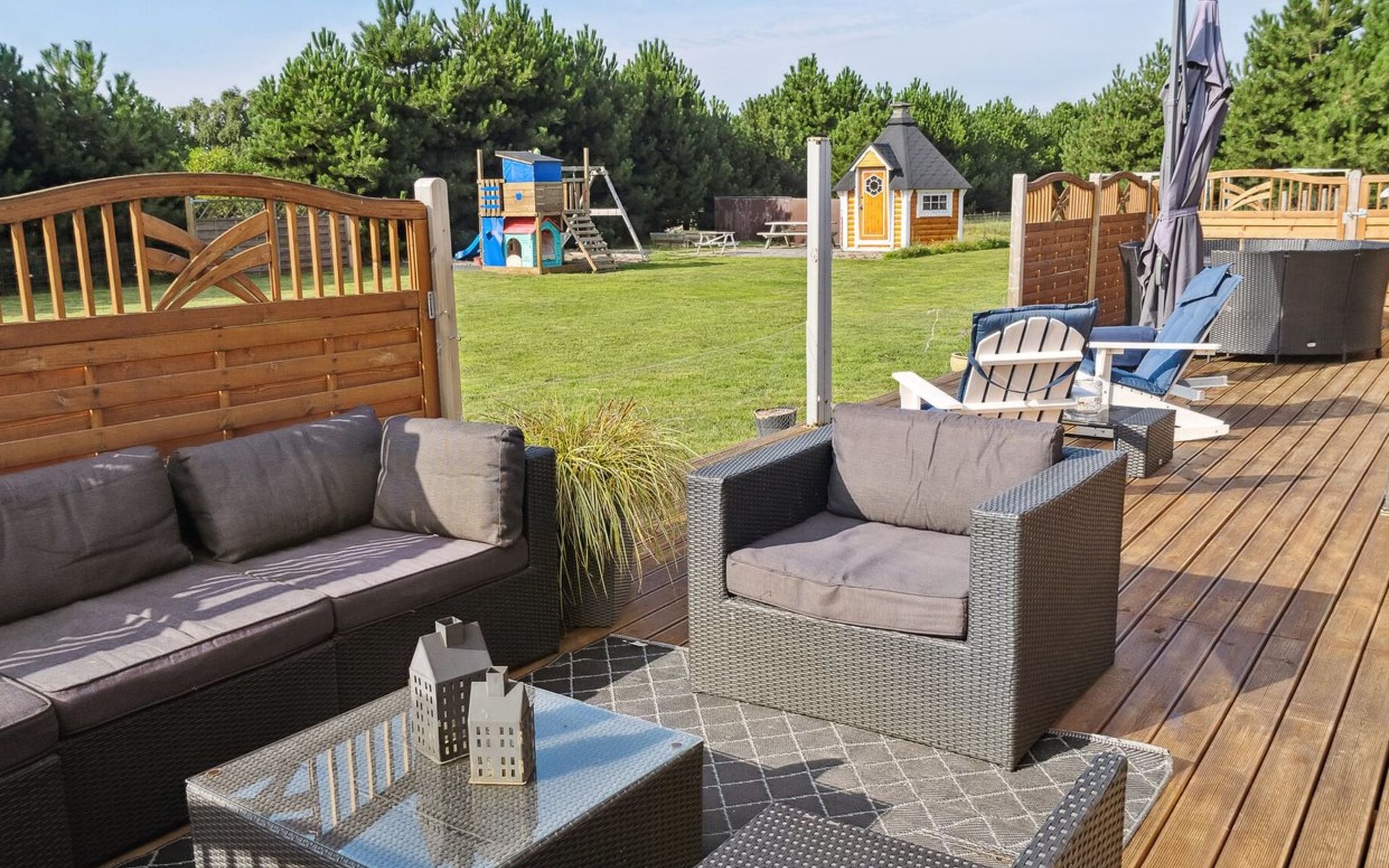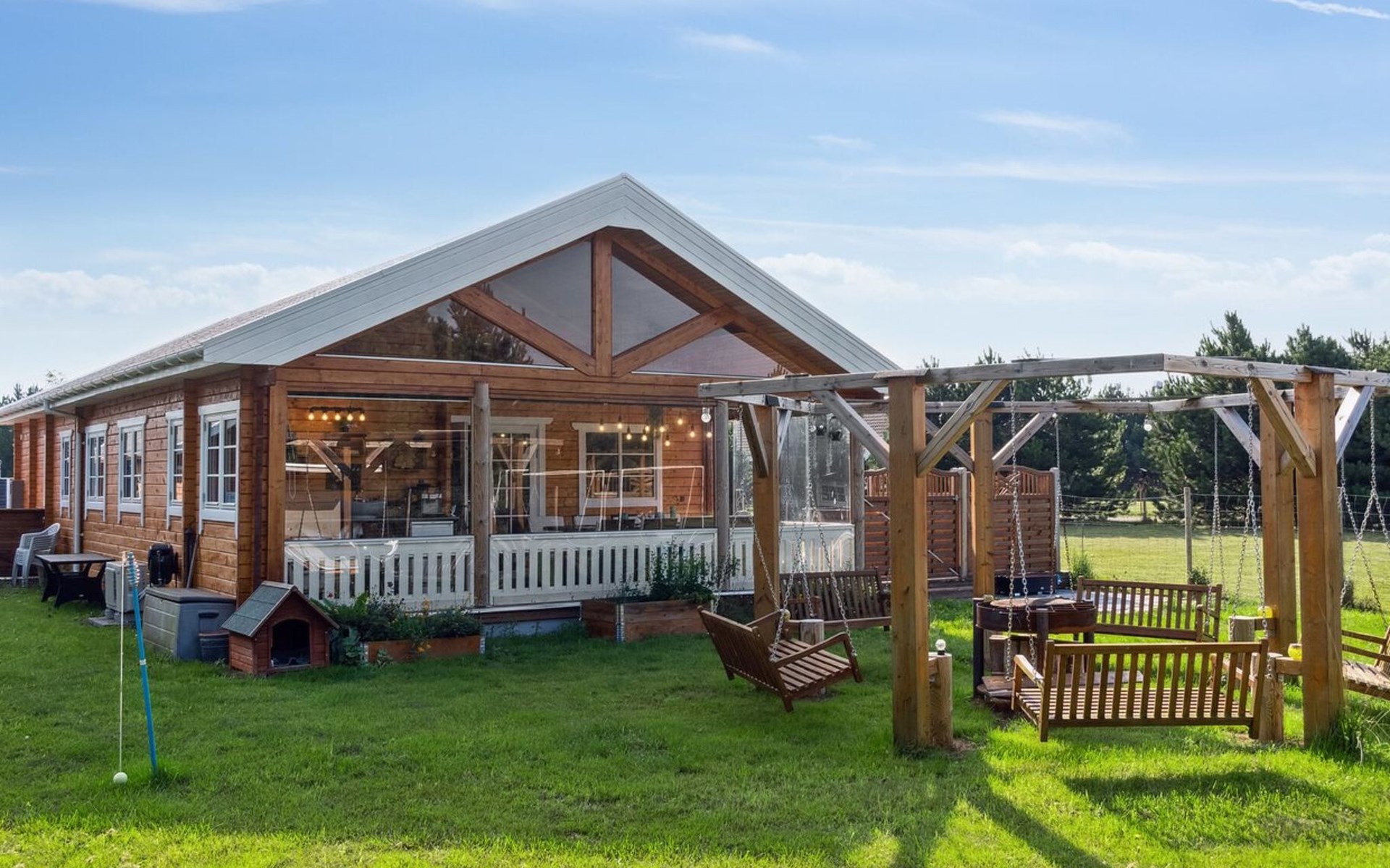 Eengezinswoning, bouwjaar 2021. 1.5 km van zee. Voor medegebruik: tuin. Voor alleengebruik: wild terrein 1.700 m2, tuin (omheind). Barbecue, stookplaats, kinderspeelplaats (schommel). In het huis: tafelvoetbal. Parkeerplaats bij het huis. Levensmiddelenwinkel 1.1 km. Golfterrein 2 km. De eigenaar accepteert geen jeugdgroepen.