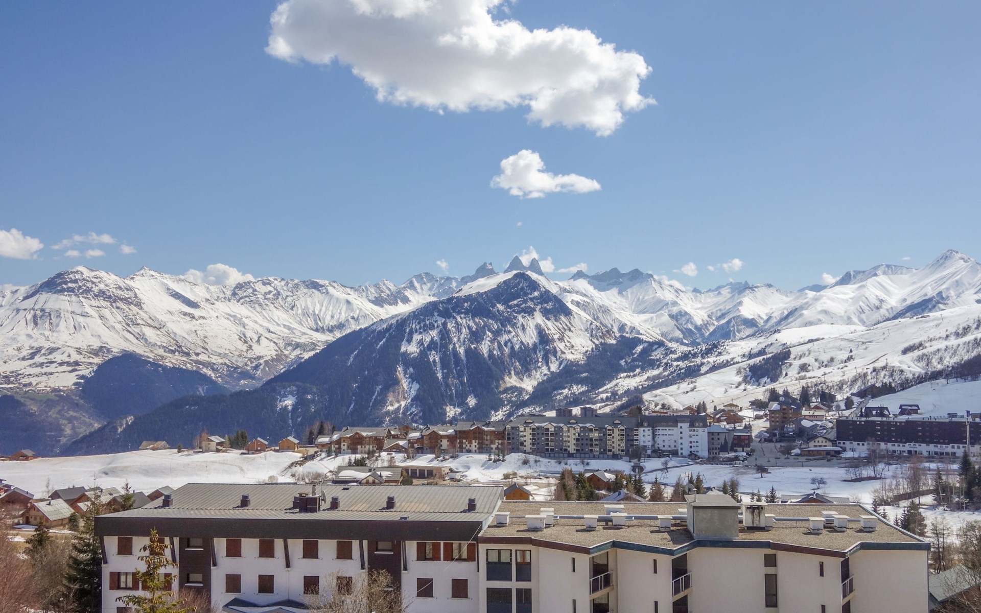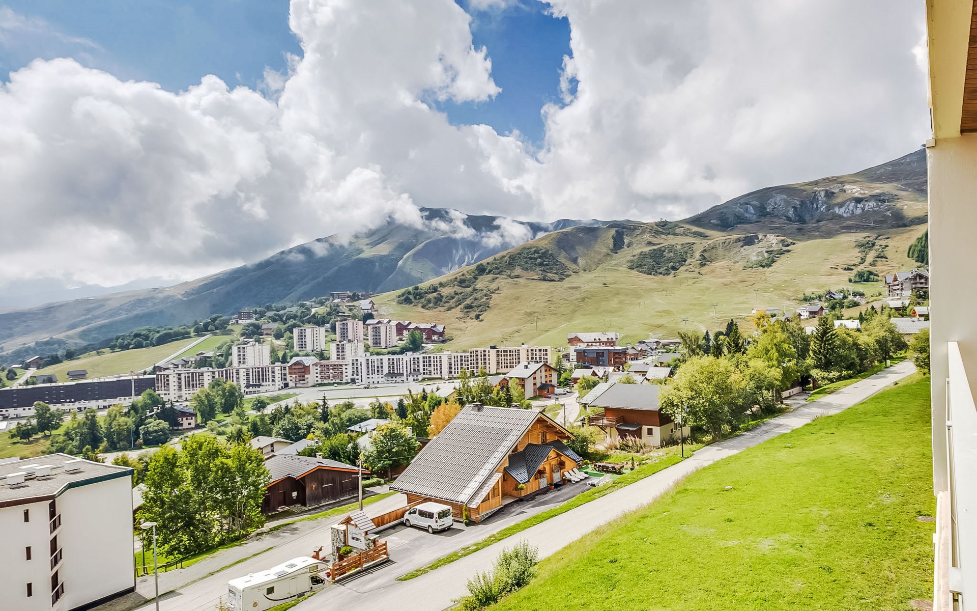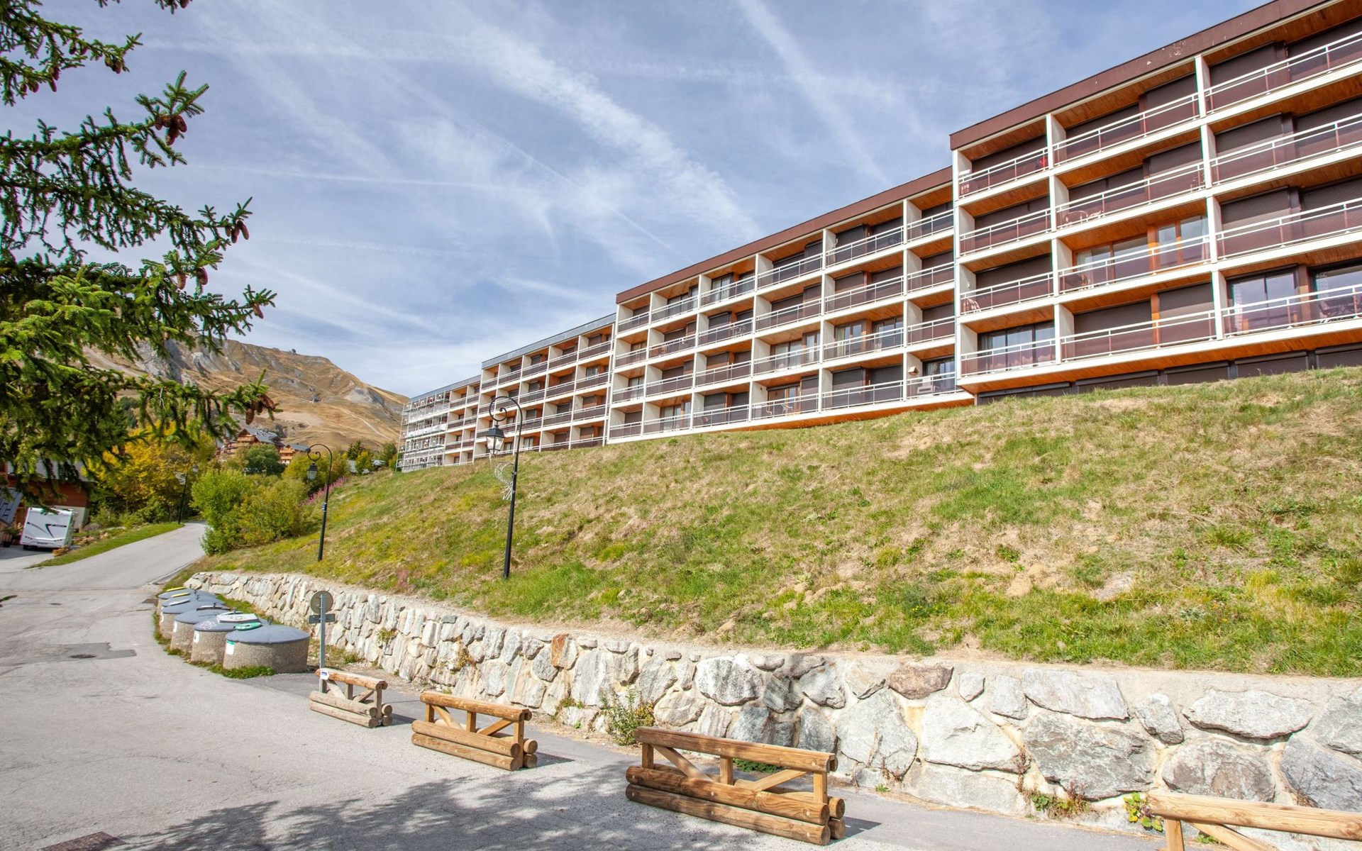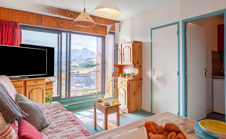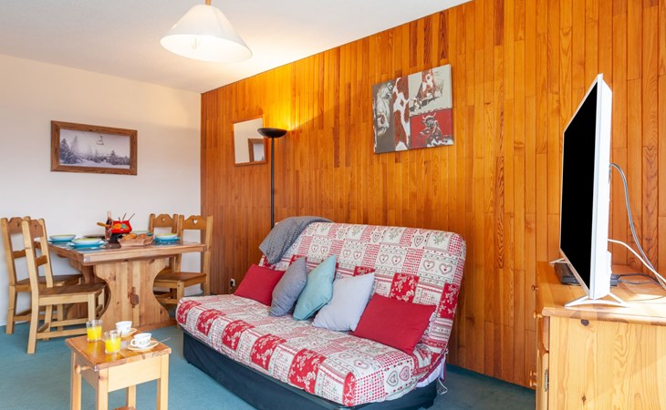 La Toussuire: Klein appartementencomplex "L'Edioule", van 3 verdiepingen. Boven La Toussuire, rustige, verhoogde ligging, 500 m van het skigebied, op het zuiden. In het huis: lift, berging voor ski's. In de winter sneeuwkettingen aanbevolen. Openbare parkeerplaatsen. Winkel 400 m, levensmiddelenwinkel 200 m, restaurant, bar, bushalte 350 m, station "St Jean de Maurienne" 15 km. Stoeltjeslift 200 m, skipisten 450 m, skibushalte 150 m. Gratis skibus. De sleuteloverdracht vindt plaats bij het agentschap INTERHOME DU CORBIER in LA STATION VOISINE, 4 km.