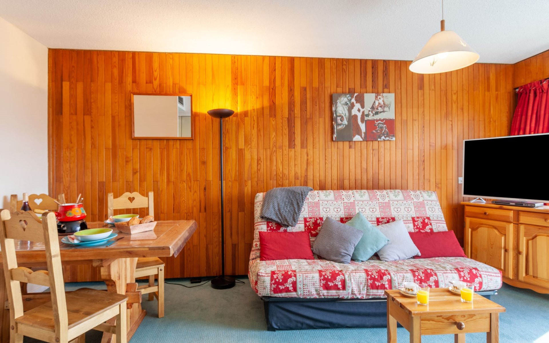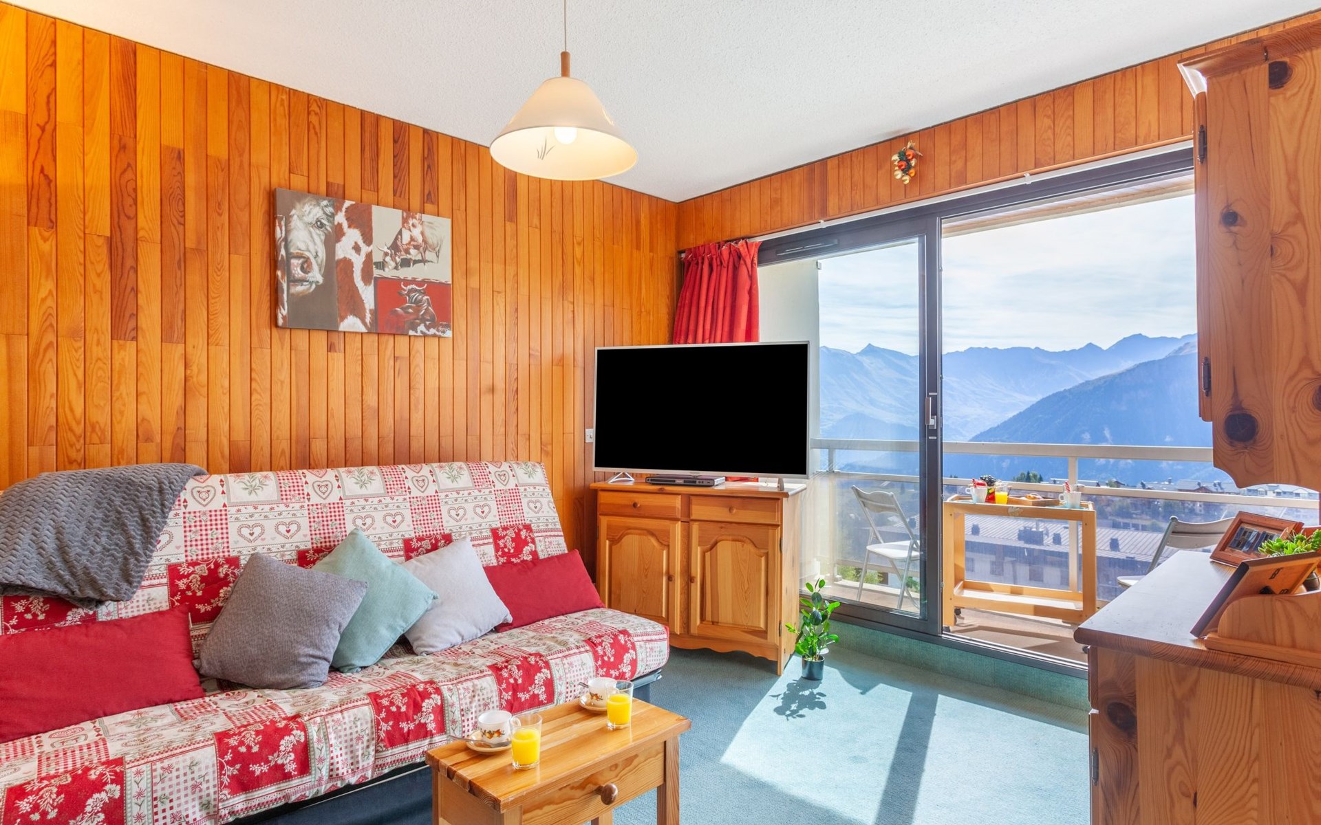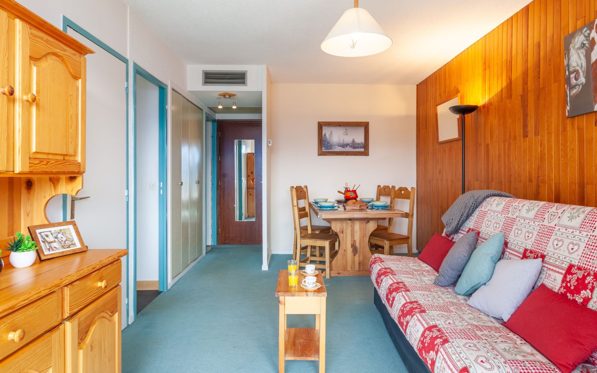 La Toussuire: Klein appartementencomplex "L'Edioule", van 3 verdiepingen. Boven La Toussuire, rustige, verhoogde ligging, 500 m van het skigebied, op het zuiden. In het huis: lift, berging voor ski's. In de winter sneeuwkettingen aanbevolen. Openbare parkeerplaatsen. Winkel 400 m, levensmiddelenwinkel 200 m, restaurant, bar, bushalte 350 m, station "St Jean de Maurienne" 15 km. Stoeltjeslift 200 m, skipisten 450 m, skibushalte 150 m. Gratis skibus. De sleuteloverdracht vindt plaats bij het agentschap INTERHOME DU CORBIER in LA STATION VOISINE, 4 km.