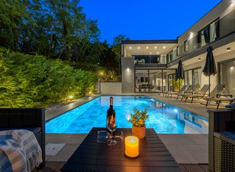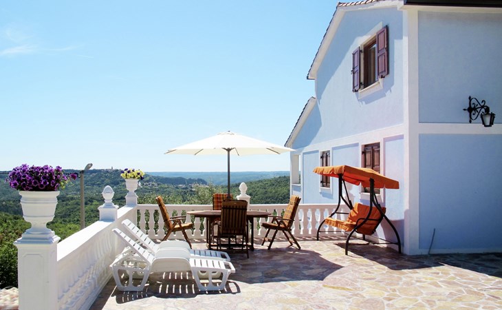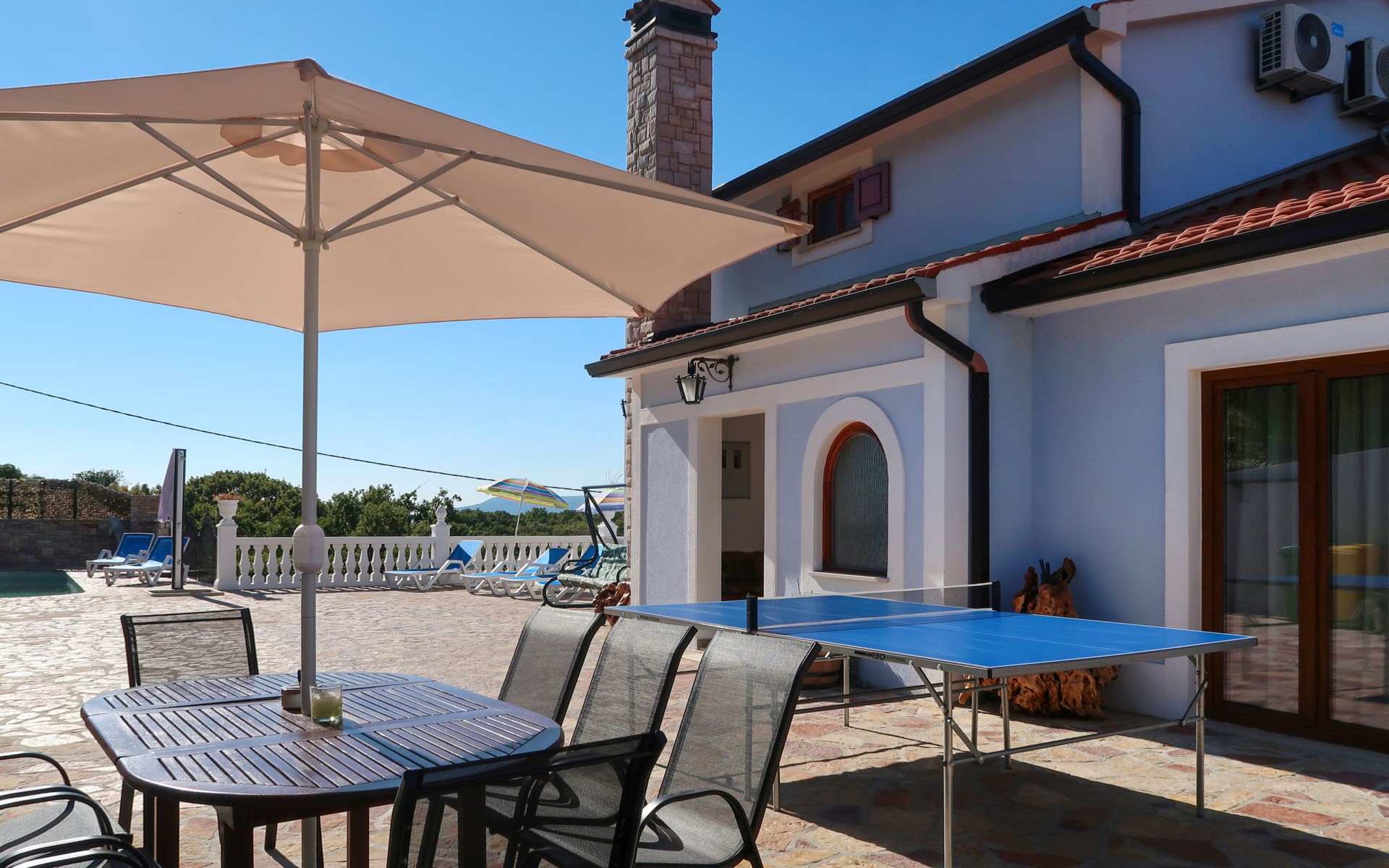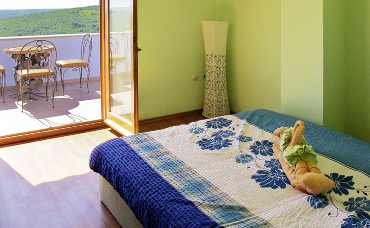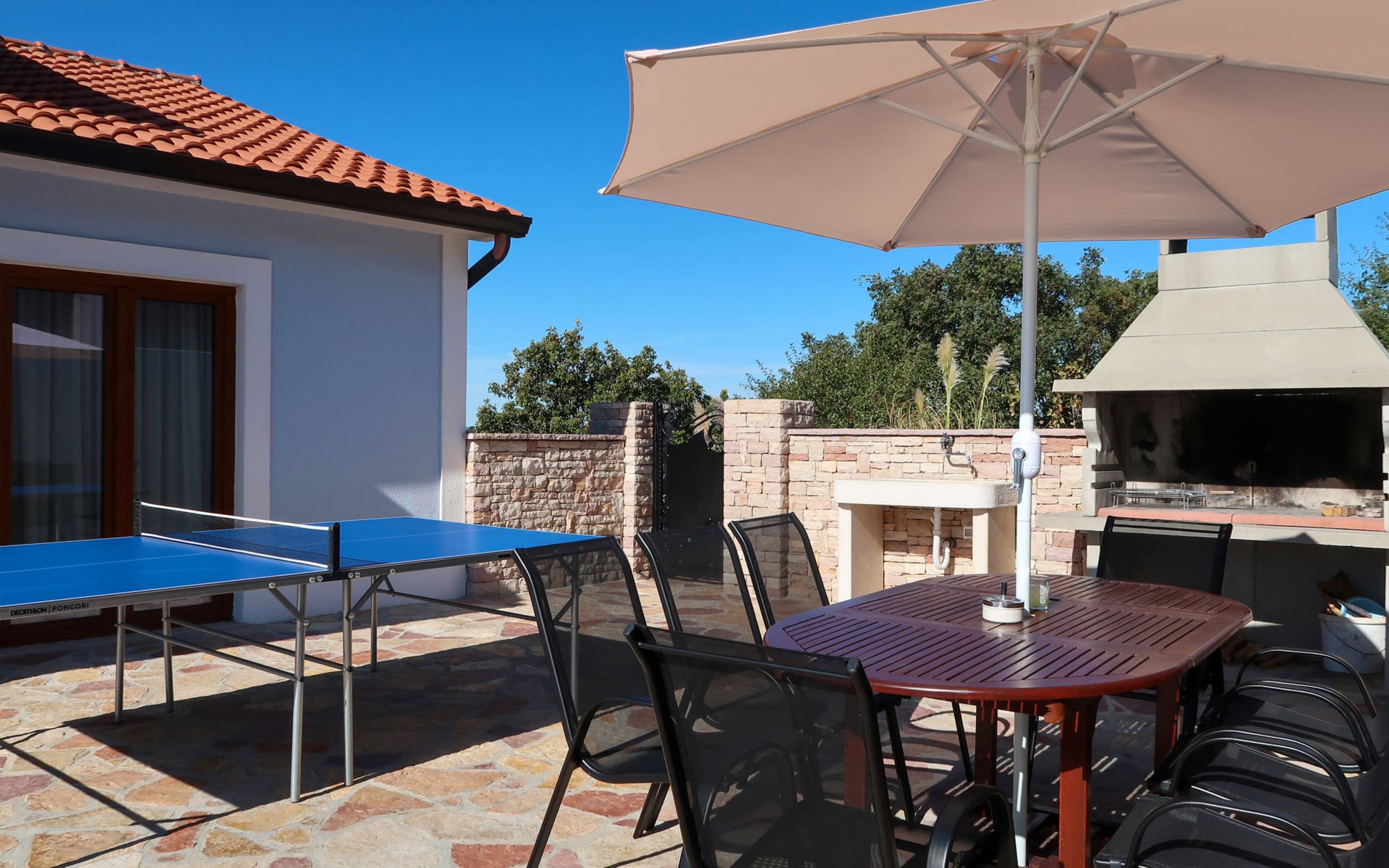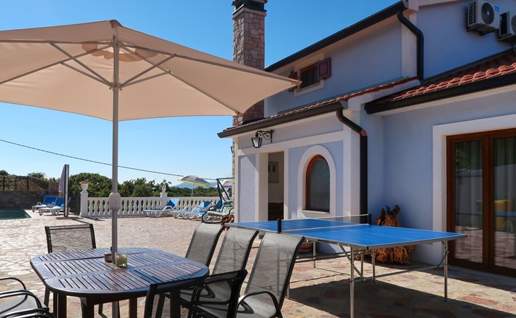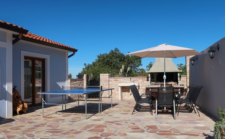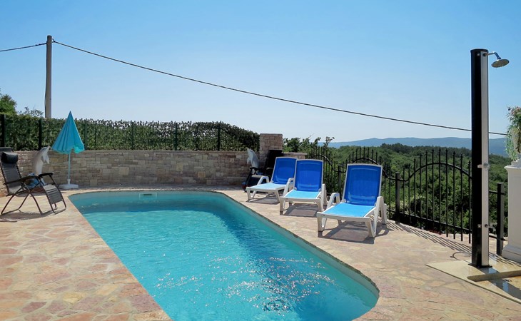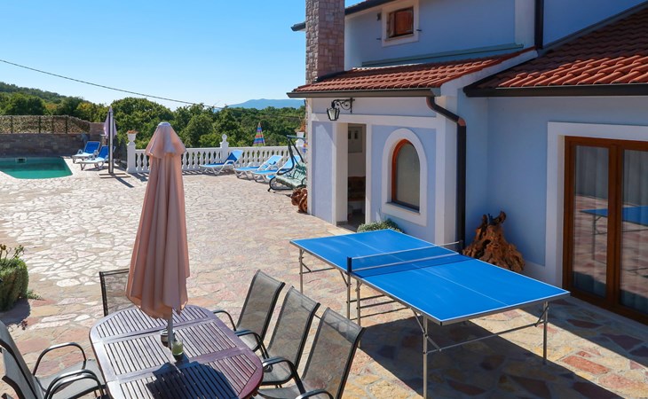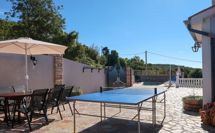 Twee onder één kap woning "Stella", van 2 verdiepingen. In het gehucht Ripenda, 4 km van het centrum van Rabac, 4.7 km van zee. Voor alleengebruik: terrein 500 m2, planten, openluchtzwembad (28 m2, 135 cm diepte, seizoensgebonden beschikbaarheid: 16.Mei. - 02.Okt.). Buitendouche, tafeltennis, terras (60 m2), tuinmeubelen, barbecue. In het huis: internetaansluiting, dakterras. 200 m lange steile toegangsweg tot aan het huis. Parkeerplaats (voor 3 auto's). Winkel 4 km, restaurant 3 km, bushalte 3.8 km, kiezelstrand 4.7 km.