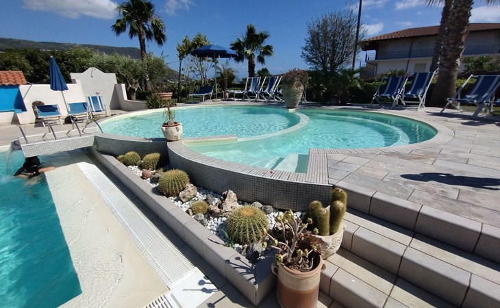 The Heaven rises on the promontory of Capo Vaticano, 10km from ancient Tropea, immersed in an oasis of Mediterranean colours and scents. It is 600mt from the beach of S.Maria and 2.5km from the bay of Grotticelle. The numerous inlets of the coastline create small sandy beaches overlooked by cliffs discovered by illustrious travellers in past centuries and now known worldwide for its exceptional natural beauty by a crystal-clear sea with colours ranging from turquoise to deep blueGuests can also enjoy our typical Calabrian products from our farmThe family attention and care, the warm and welcoming atmosphere makes Heaven the ideal place for a relaxing holiday between sun, sea and nature.The flats consist of a double bedroom, a bedroom with two beds, first supply of bed linen, kitchen-living room with sofa-bed for one/two people, equipped with crockery, 4-burner cooker, oven, fridge with freezer, bathroom with shower, toilet, hairdryer, veranda with table, chairs and clothes rack.In the structure there is: swimming pool, shuttle service to/from the sea, football field, volleyball field, children's play area with swings, slides, swings, table tennis, table football, relaxation area, internal parking, wi-fi area, coin-operated washing machine, restaurant, pizzeria, bar, barbecue, small farm, A/P transfert to Ricadi station. IT102030B5J4K9MLNB