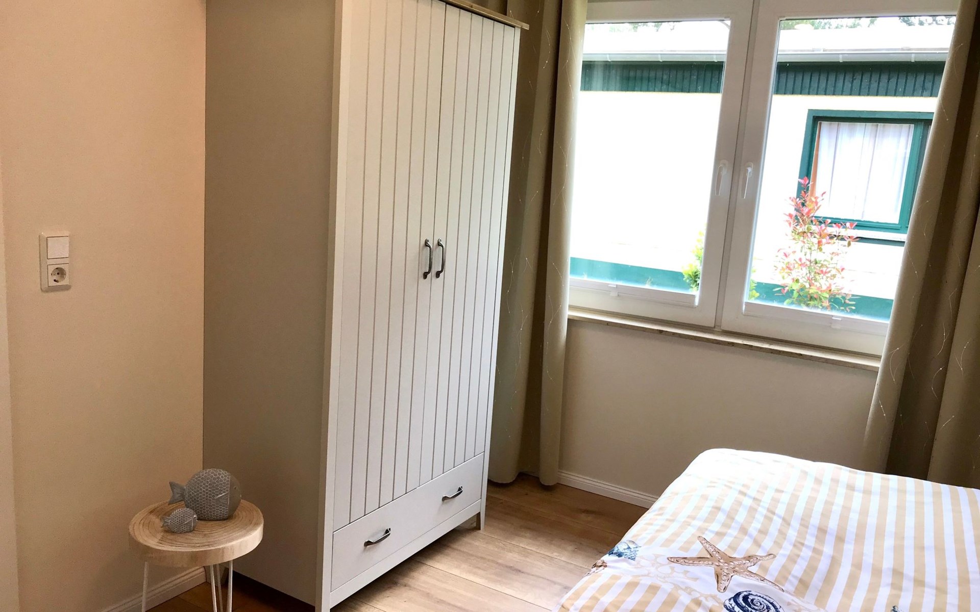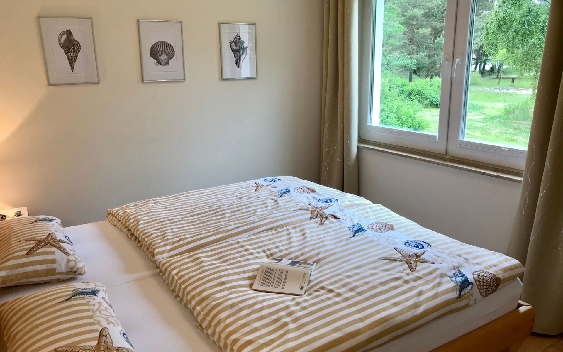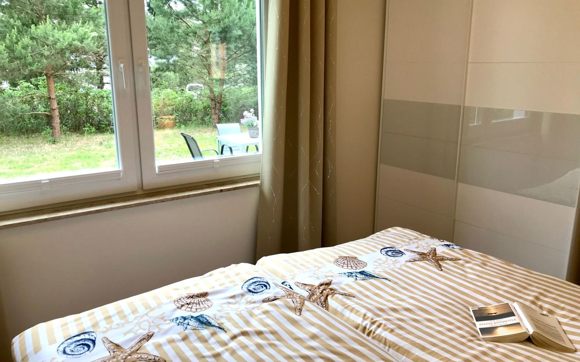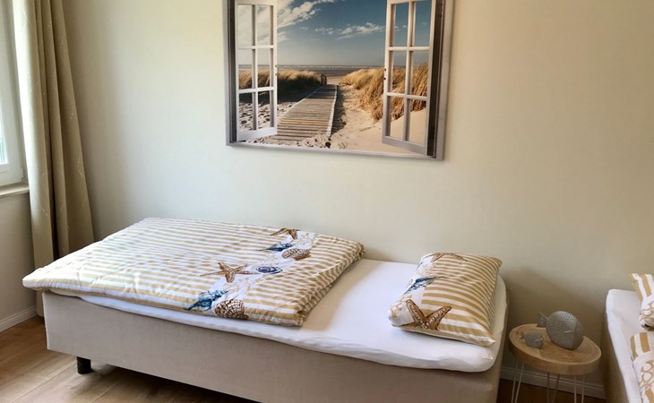 Very quiet and idyllically situated on the outskirts of Pruchten, the holiday home Wiesenblick 6 offers you an ideal holiday domicile on the large natural meadow property.The beautiful Baltic Sea beach, the Fischland-Darß peninsula with its unique natural landscape and the Vorpommersche Boddenlandschaft National Park are perfect for holidaymakers of all ages and are only a few minutes' drive away.Relax and unwind away from the hustle and bustle of the coastal resorts and still enjoy the proximity to beautiful Baltic Sea beaches and many sights.Our holiday home Wiesenblick 6 awaits you modern and comfortable with a wood-burning stove, infrared heating and free internet access (WLAN).On a living area of approx. 60 m², you will find a living and dining room with a wood-burning stove, infrared heating, couch & armchair, 50" flat-screen TV and a dining table for 4 people in this holiday home. The large windows offer a marvellous view of the surrounding natural garden.In the open and well-equipped kitchen with dishwasher, ceramic hob, oven, fridge with freezer compartment, etc., cooking with the whole family is great fun. For a restful night's sleep on the quiet property, there is a large double bed (180x200) and a spacious wardrobe in the first bedroom. In the second bedroom, you can choose between two single beds (90x200).The bright and friendly bathroom is equipped with a shower, WC and washbasin to ensure your well-being.We offer you a covered terrace and a seating area on the lawn with seating for 4 people, two sun loungers and a charcoal barbecue.Bicycles that you have brought or borrowed can be stored separately (the very well-developed cycle path network invites you to go on extended cycle tours).You can park your car right next to the holiday home.Please note that the holiday home is accessible via an unpaved path (approx. 250m).The bathing area at Bodstedter Bodden is only approx. 800m away. You can reach the fine sandy Baltic Sea beach via the cycle path, as well as by car or bus in approx. 9km.A small shopping centre is approx. 400m away and many supermarkets and shops can be found in the Vineta town of Barth (5.5km). In the resort of Pruchten there is also a bakery, a delicious ice cream stand on the village street, as well as a bicycle hire and a boat hire in the small harbour.For water sports enthusiasts, there are opportunities for kitesurfing and stand-up paddleboarding. The local kite club offers the appropriate equipment and courses.Historic Hanseatic cities such as Rostock (50km) and Stralsund (37km) are within easy reach. They offer numerous sights and a wide range of entertainment options.Or let yourself be whisked away on a journey through time and take a tour of the Bodden on an authentic Mississippi steamer.The Vineta town of Barth awaits your visit with its shops, small museums and beautiful harbour. There is also plenty for children to discover in the surrounding area.Karls Erlebnishof in Rövershagen or the bird park in Marlow will make every child's heart beat faster. In spring and autumn, you can experience a special kind of natural spectacle here when cranes fly to their resting places in the immediate vicinity.Watch the "bird of happiness" and enjoy the special beauty of our nature!