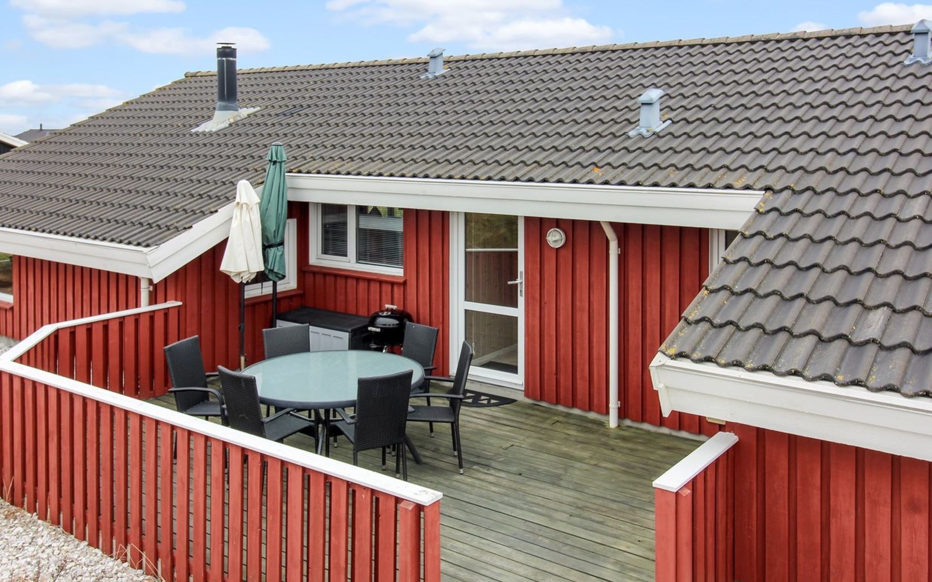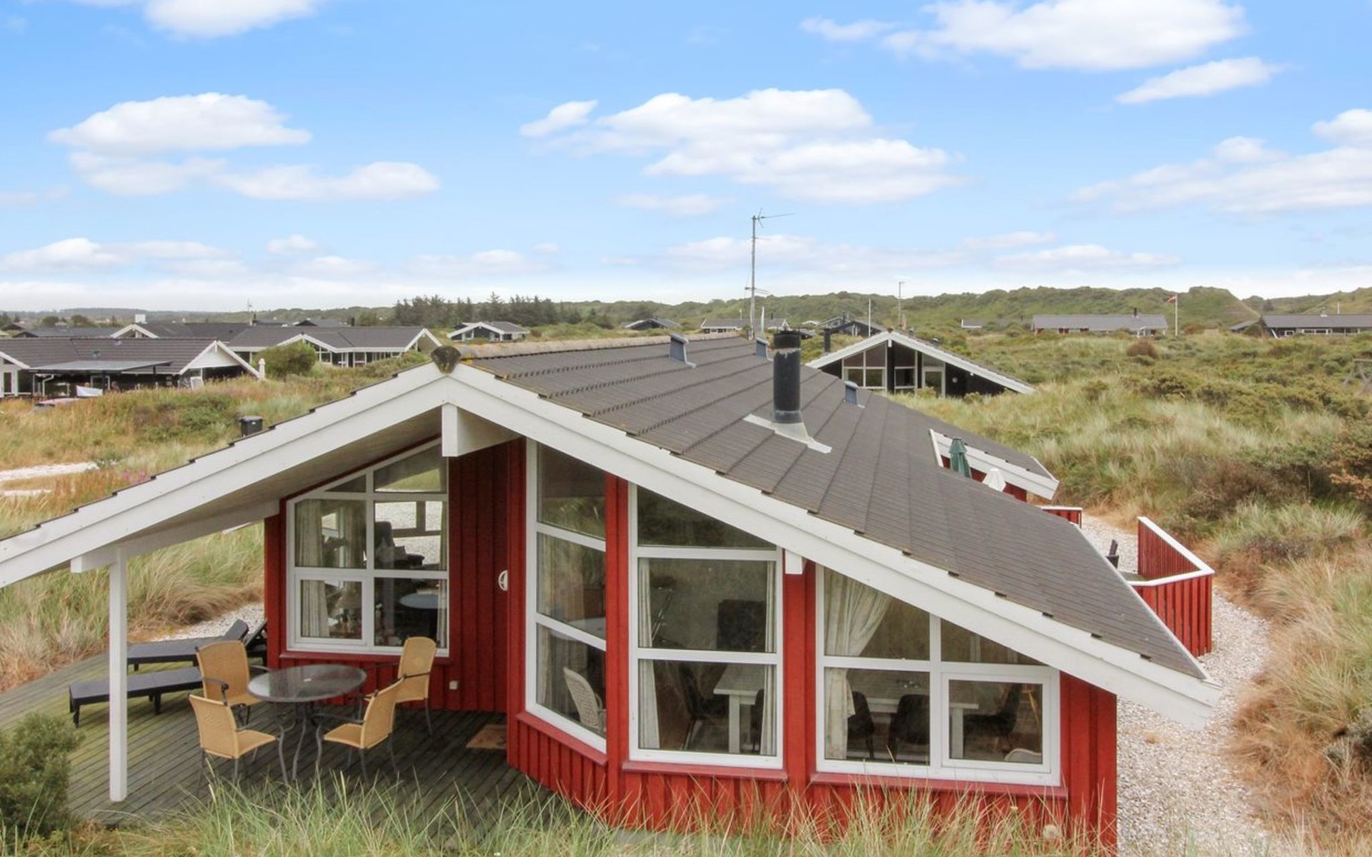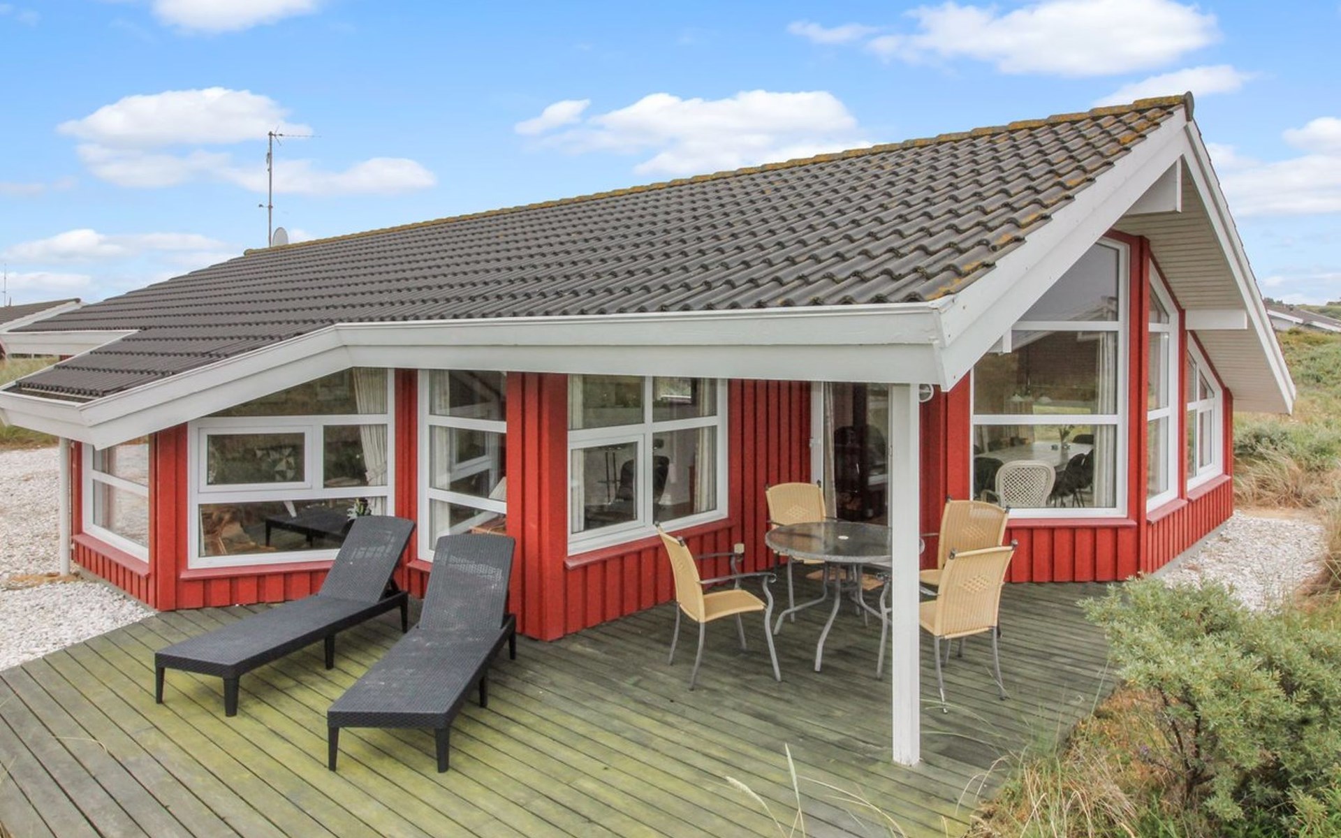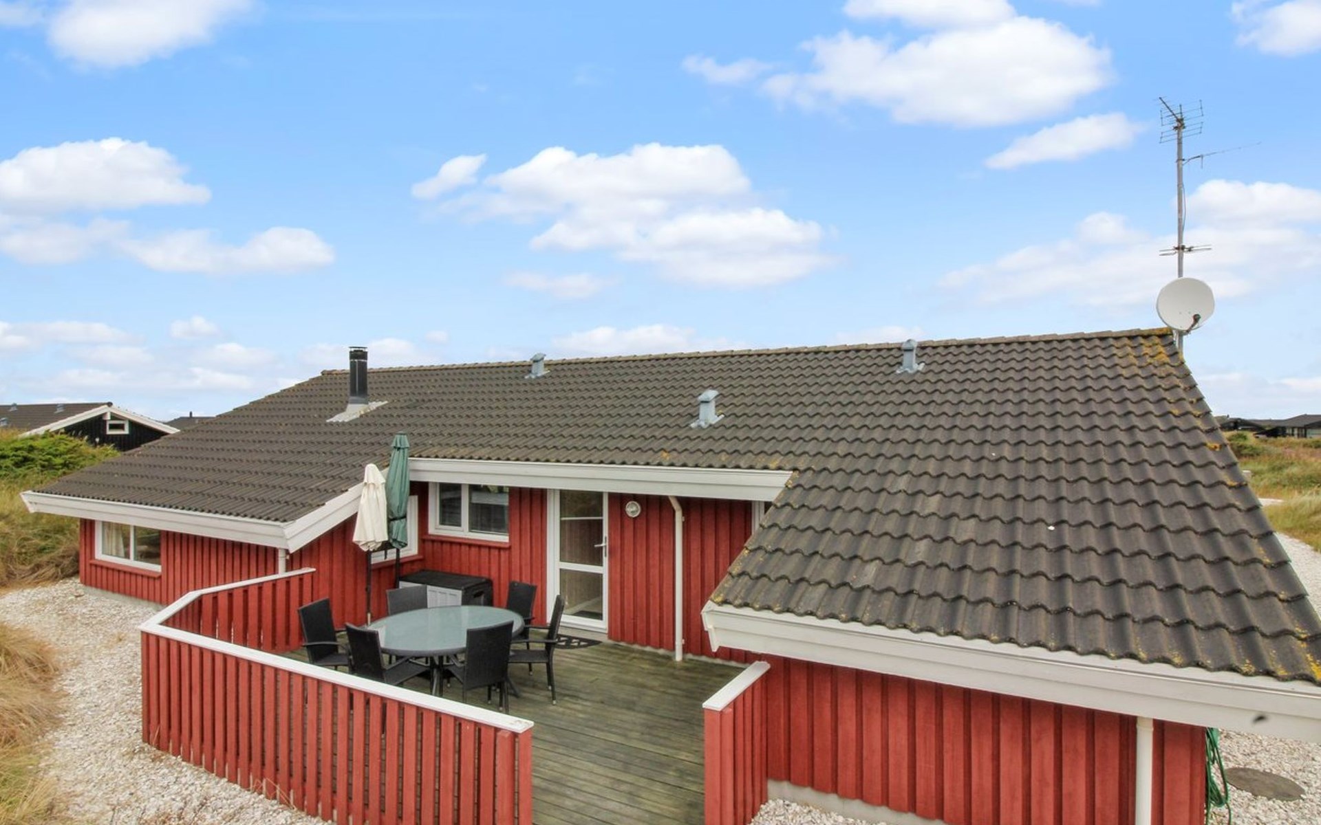 Eengezinswoning, bouwjaar 2001. 400 m van zee. Voor alleengebruik: terrein 1.450 m2. Terras (25 m2), barbecue, kinderspeelplaats (schommel). In het huis: sauna, wasmachine, droger. Parkeerplaats bij het huis. Levensmiddelenwinkel 1.5 km.