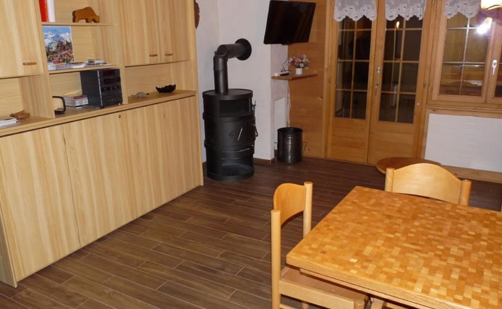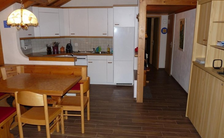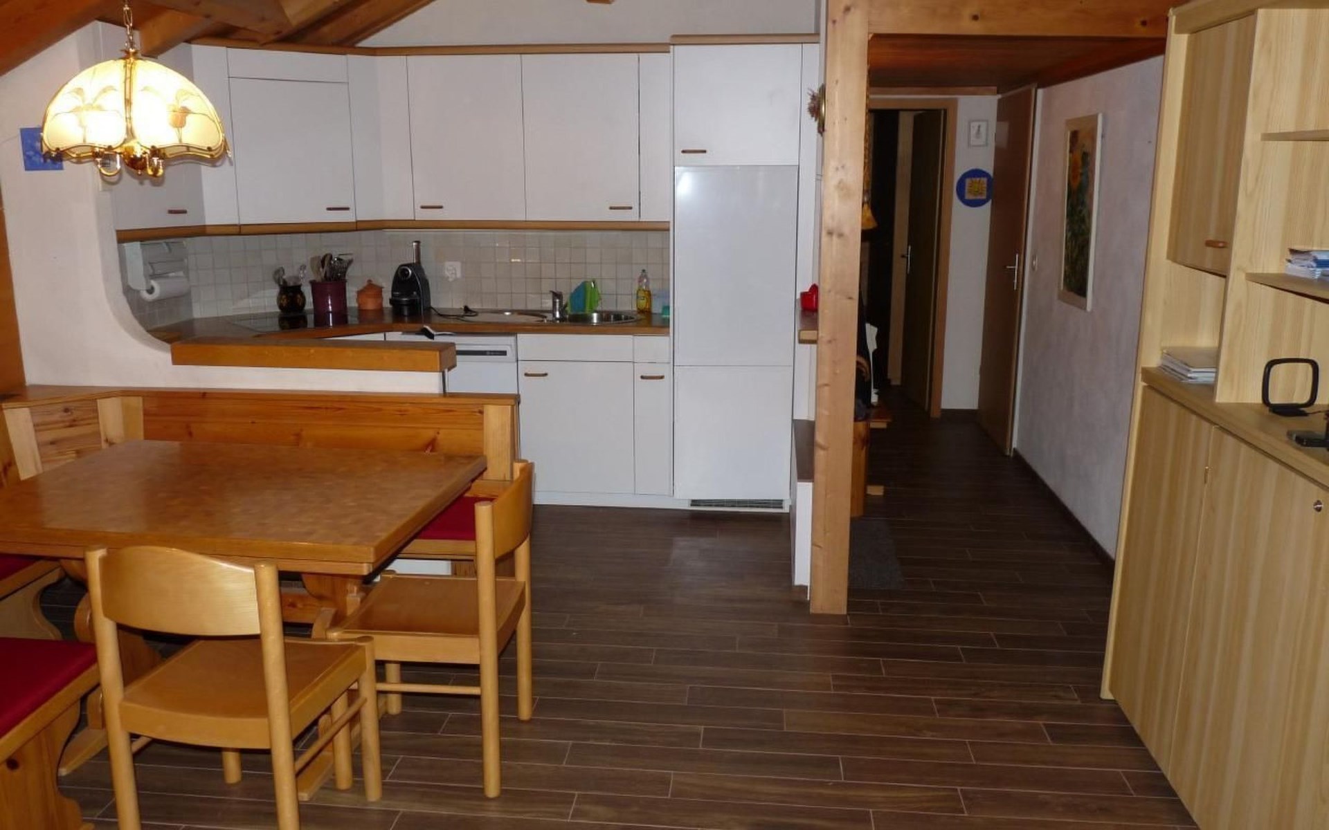 Interior: 2-room flat 55 m2 on 3rd floor, south facing position, cosy and wooden furniture furnishings: Living/dining room with 2 beds (90 cm, length 200 cm), Scandinavian wood stove, satellite TV and flat screen. 1 double bedroom with 2 beds (90 cm, length 200 cm). Open kitchen (oven, dishwasher, ceramic glass hob, electric coffee machine). Shower/WC. Balcony, south facing position. Balcony furniture. Marvellous view of the mountains. Garage no. 3. please note: Non-smoking accommodation. Offer incl. final cleaning and visitor's tax. House/Residence Beautiful apartment house "Chalet Kiefer". In the centre of the resort, in a sunny position, on a side street, south facing position. In the house: storage room for skis, central heating system, washing machine, tumble dryer (for shared use, extra). At your disposal: sledges. Change of linen once a week (extra). Communal garage no. 3. Shopping centre 200 m, restaurant, bar 50 m, bakery 300 m, bicycle rental 700 m, bus stop "50", railway station "Grindelwald Dorf" 800 m, outdoor swimming pool 3.5 km, indoor swimming pool 300 m. Golf course (6 holes) 2 km, tennis 1.5 km, minigolf 400 m, sports centre 600 m, cable car, ski hire 300 m, ski bus stop 50 m, children's playground 600 m. Well-known lakes can easily be reached: Lake Thun/Lake Brienz 18 km. Please note: no lift available. Free ski bus.Other kitchen equipment (Kitchen1): Dishwasher and Nesspresso machineSports facilities in the surrounding area: climbing, cycling tours, skiing (alpine)