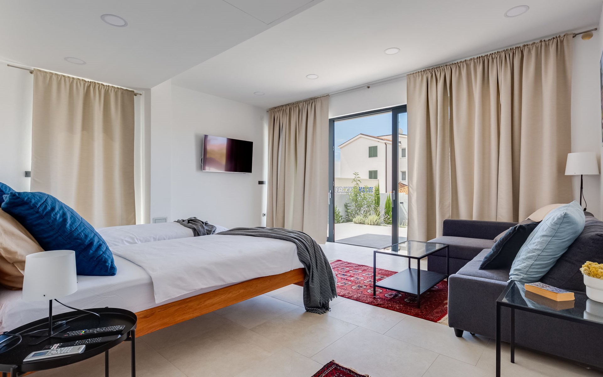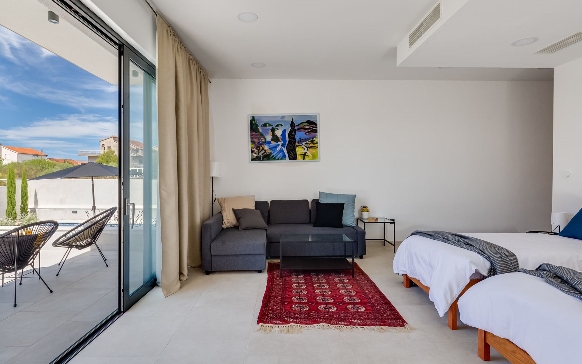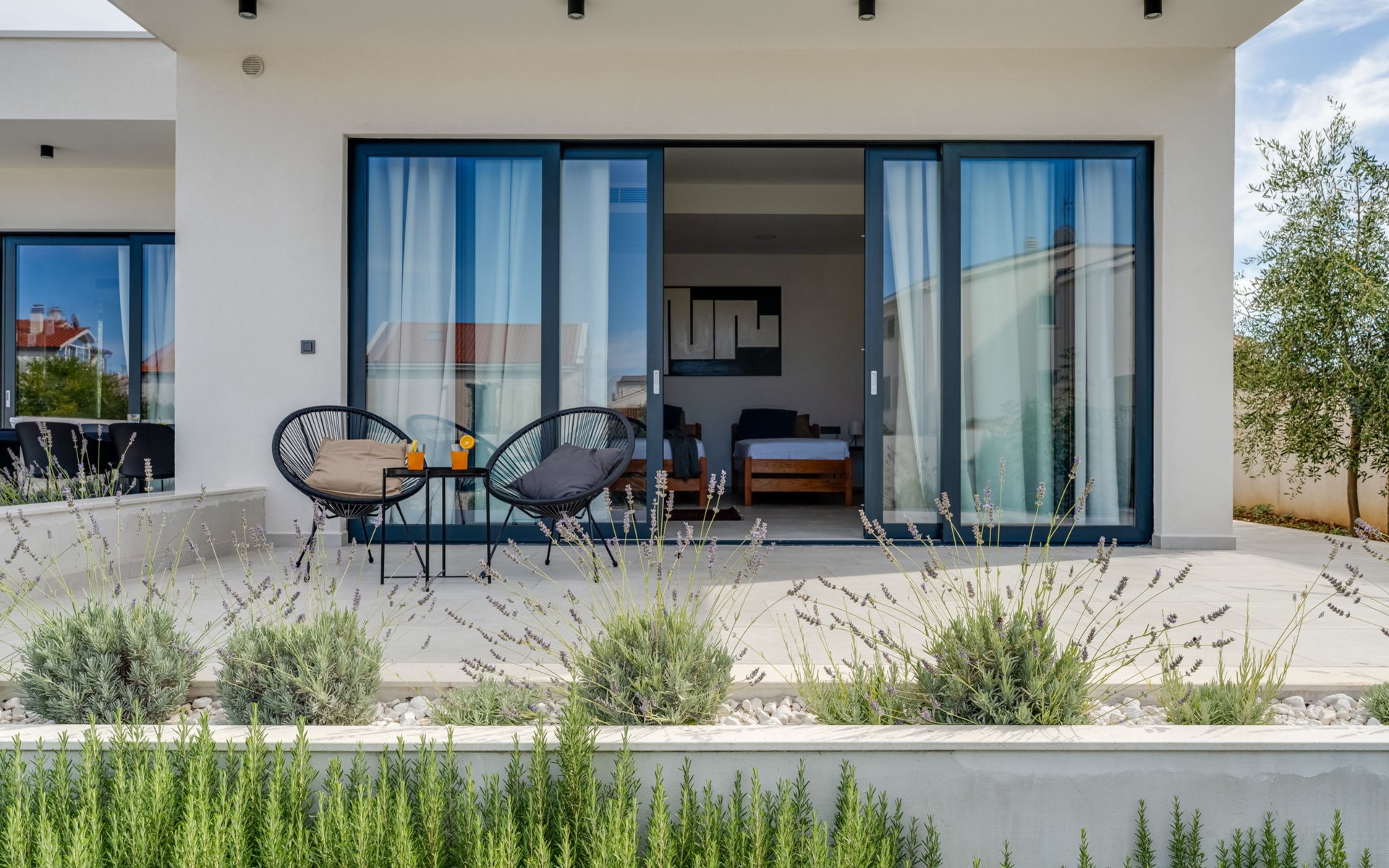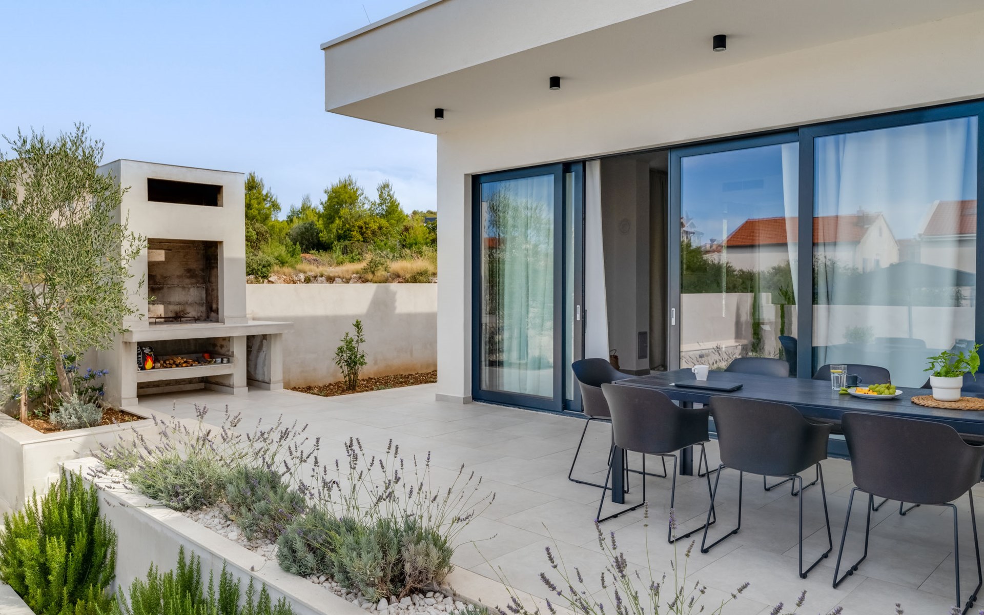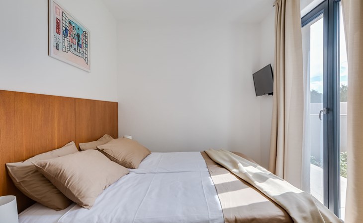 Moderne, mooi villa "Inizio". Zonnige ligging, 250 m van zee, 250 m van het strand. Voor alleengebruik: terrein 700 m2, openluchtzwembad hoekig (7 x 3 m, 27 m2, 150 cm diepte, seizoensgebonden beschikbaarheid: 15.Mei. - 15.Okt.) met trap. Buitendouche, barbecue. In het huis: internetaansluiting, wasmachine. Toegangsweg tot aan het huis (50 m onverharde weg). Parkeerplaats (voor 3 auto's) bij het huis op het terrein. Winkel 250 m, restaurant 260 m, bushalte 550 m, kiezelstrand 250 m, strandbad 900 m. Jachthaven 4 km. Attracties in de buurt: Aquapark 2 km, NP Krka 17 km.