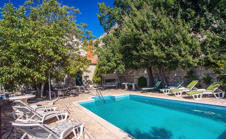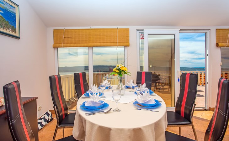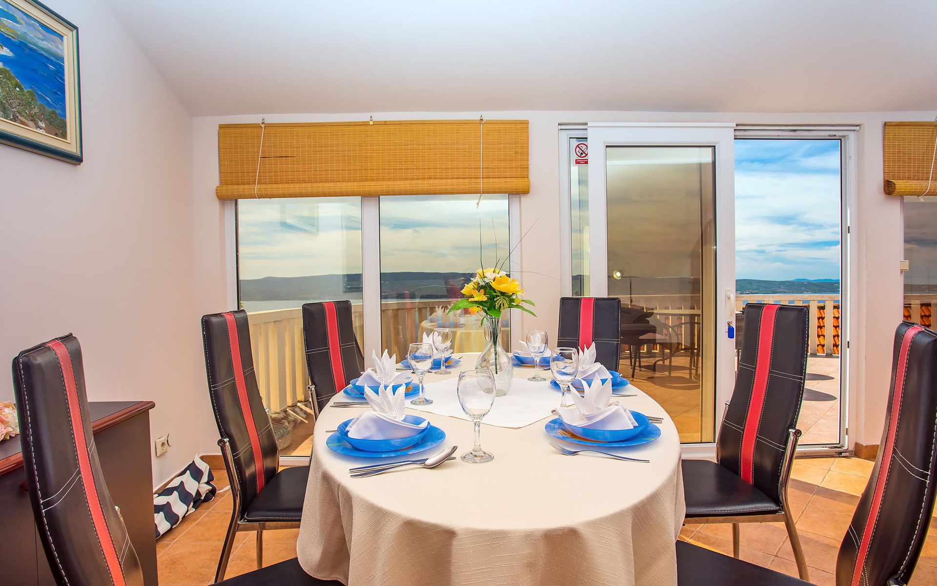 Eengezinswoning "Villa Jolie Amazing Stone", van 3 verdiepingen. In het gehucht Zeljovići, 1 km van het centrum van Jesenice, 9 km van het centrum van Omiš, rustige, zonnige, verhoogde ligging, gebied met weinig verkeer, 2.5 km van zee, 2.5 km van het strand, aan een doodlopende weg, op het zuiden. Voor alleengebruik: terrein 750 m2 (omheind) met bomen, openluchtzwembad hoekig (8 x 5 m, 150 cm diepte, seizoensgebonden beschikbaarheid: 15.Jun. - 15.Sep.) met trap. WC bij het zwembad, buitendouche, hot tub, tafeltennis, terras (350 m2), tuinmeubelen. In het huis: internetaansluiting, zonneterras, wasmachine. Parkeerplaats (voor 5 auto's) bij het huis op 50 m. Winkel 2.3 km, restaurant 1 km, bushalte 2.9 km, kiezelstrand 2.5 km, rotsstrand 2.5 km.
