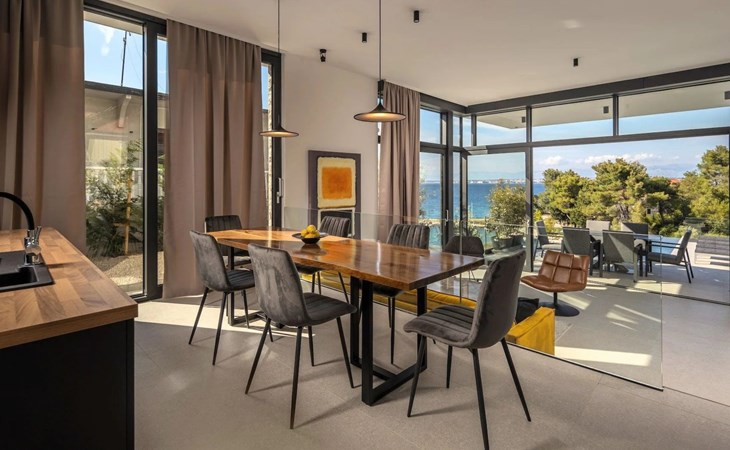Discover the serene beauty and unparalleled comfort of this stunning holiday house in Kali, Dalmatia, perfectly poised on the edge of the sea. Designed to accommodate 8 guests within its spacious interiors, this detached house is an idyllic retreat for families or groups seeking a memorable escape. With a prime location that blends the tranquility of the surrounding landscapes with the convenience of nearby amenities, this house offers an exceptional vacation experience.Inside, the house is equipped with all the comforts and conveniences necessary for a luxurious stay. Air conditioning and underfloor heating are available throughout, ensuring a comfortable environment regardless of the season. The three bedrooms are complemented by three bathrooms, each promising privacy and ease for all guests. Daily routines are effortlessly managed with the inclusion of a washing machine for exclusive use. The kitchen is a haven for culinary enthusiasts, fitted with a dishwasher, coffee machine, and electric kettle, alongside a cozy fireplace that adds warmth and ambiance.The exterior of the house is just as impressive as its interiors. The highlight is undoubtedly the private infinity pool, a haven for relaxation and enjoyment, flanked by sun loungers for basking in the sun. The terrace offers an al fresco dining area with a BBQ, perfect for enjoying meals under the shade. The garden, reserved solely for the guests' use, houses a children's playground, adding delight for younger visitors.Situated merely 20 meters from the beach, the house boasts an envious position that invites endless opportunities for water-based activities and leisure. The nearest town center and grocery store are both just a kilometer away, ensuring convenience for shopping and exploration. This location combines the best of peaceful retreat and accessibility, making every aspect of your stay comfortable and enjoyable.In sum, this holiday house in Kali, Dalmatia, offers a perfect blend of comfort, convenience, and luxury, making it an ideal choice for those looking to unwind and relish in the beauty of their surroundings. Whether you're soaking up the sun by the pool, exploring the scenic island, or simply enjoying the comfort of this exquisite house, your stay is sure to be an unforgettable one.