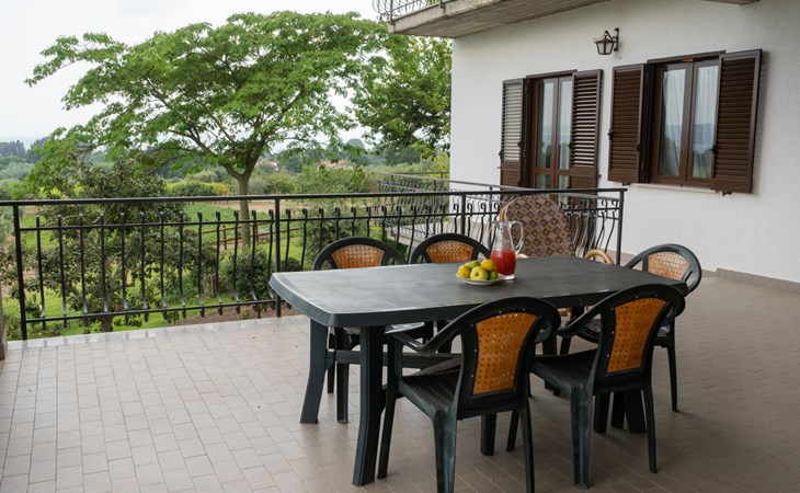 Landhuis "L'Orto e le Rose". 2 huizen in de woning. 3 appartementen in de woning. 3 km van het centrum van Bolsena, 25 km van het centrum van Orvieto, 100 km van het centrum van Roma, 900 m van het meer, te midden van groen. Voor medegebruik: terrein 2.000 m2 met gazon en bomen, boomgaard, ligweide, openluchtzwembad (16 x 8 m, 150 cm diepte, seizoensgebonden beschikbaarheid: 16.Mei. - 03.Okt.). Buitendouche, barbecue, kinderspeelplaats, overdekte parkeerplaats op het terrein. Winkel 3 km, supermarkt 4 km, bushalte 3.5 km, zandstrand "Lago di Bolsena" 900 m. Golfterrein (9 holes) 15 km. De eigenaar woont op hetzelfde terrein. Vergelijkbare accommodaties kunnen worden geboekt.