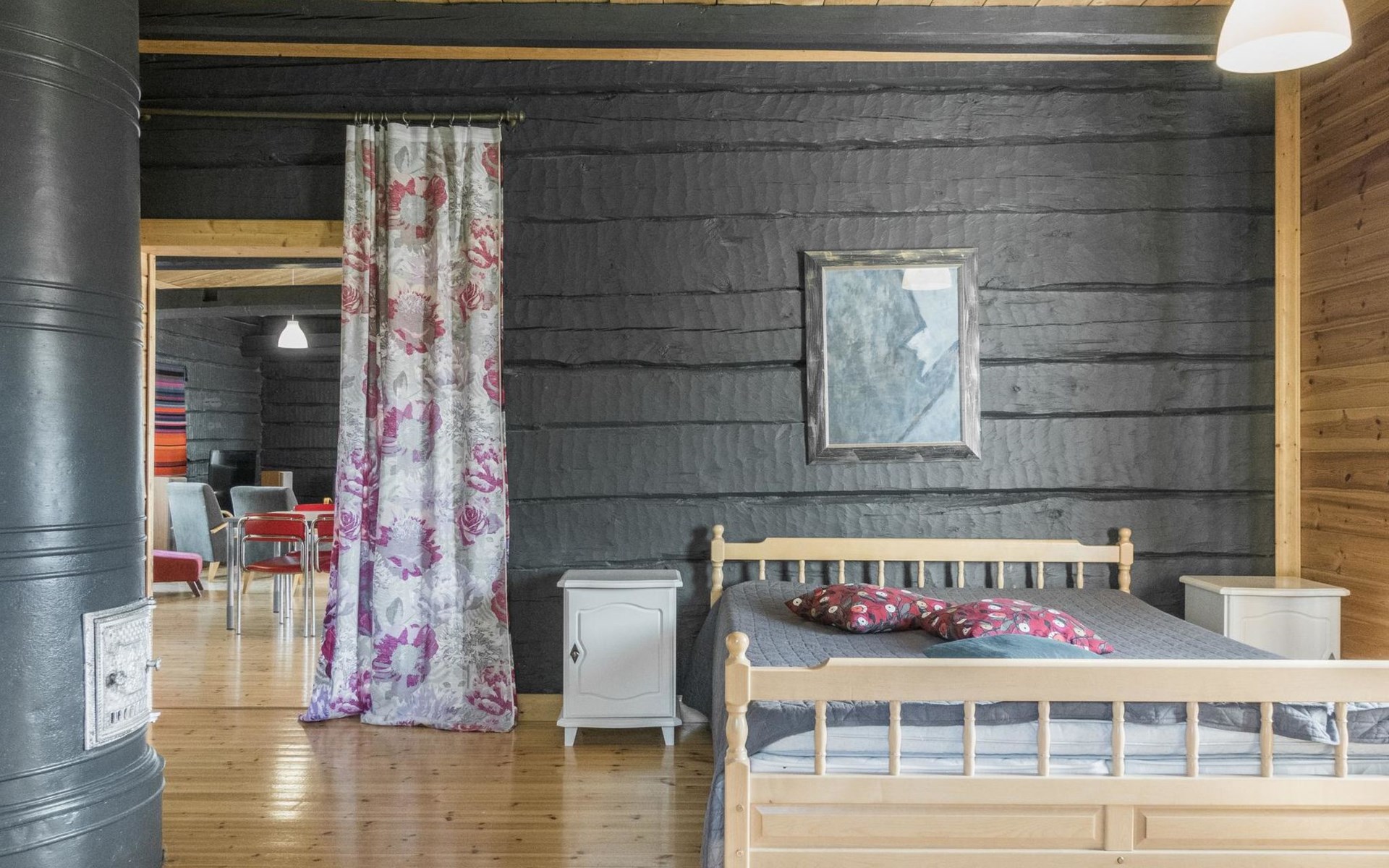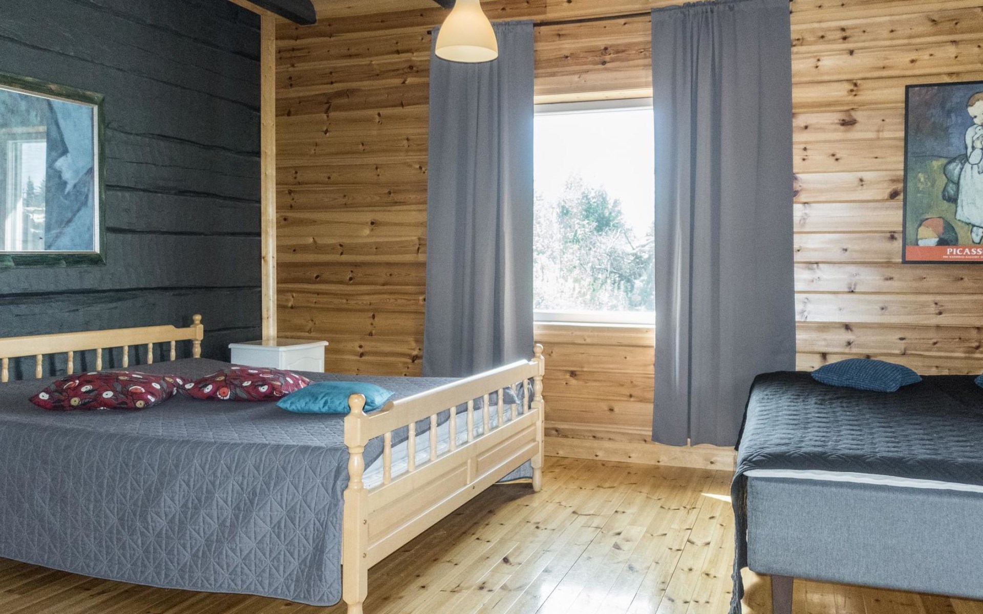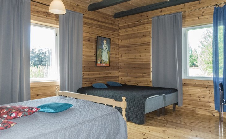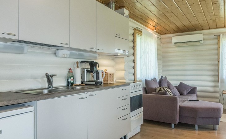 1800's originally built log house, renovated completely in 2012. Big kitchen-living room, bedroom with double bed and 2 separate beds, alcove with double bed (width 140 cm, entrance to alcove through bedroom), shower room/wc, infrared-steam sauna-shower cubicle. There isn't any traditional sauna in the house.