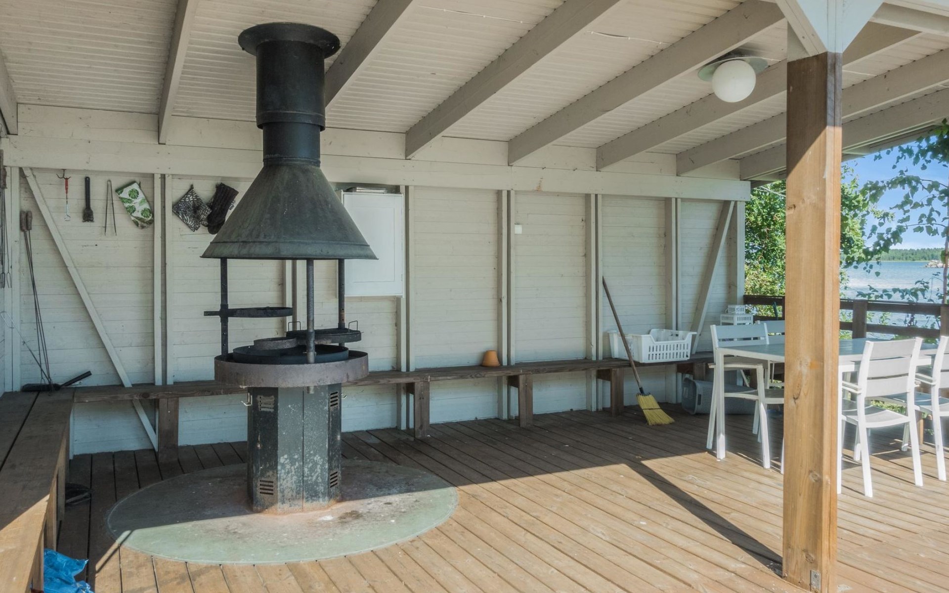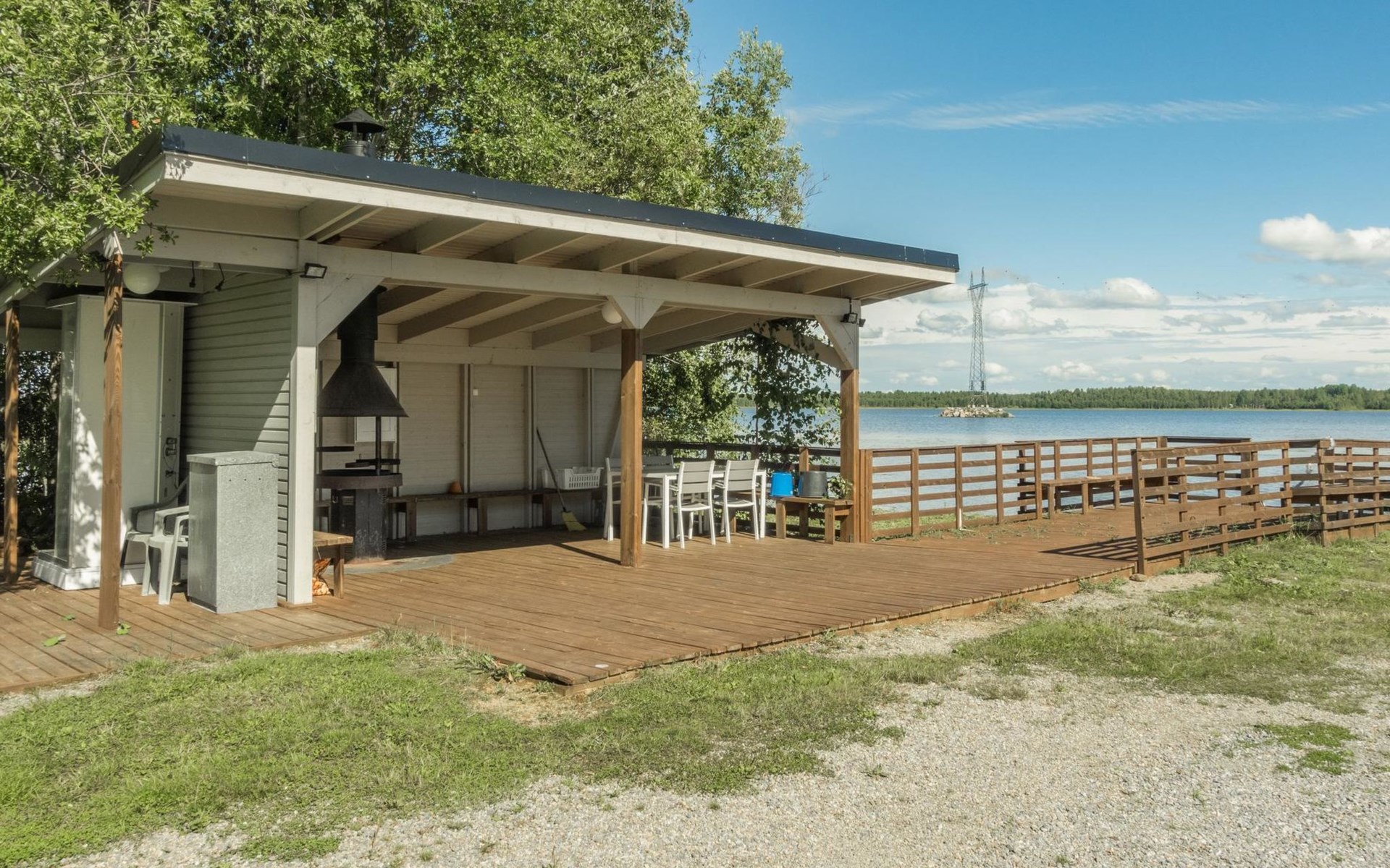In the term 1.6. - 31.8. also separate sauna building is included in the price (48m²) 100 m, built in 2014. In the building: sauna (electric stove), bathroom (shower and toilet), living room and a bedroom with 2 single beds. The living room has a fireplace with baking oven, electric light and heating and cooking possibility (hot plates, fridgerator, microwave oven and coffee maker). TV also in this building. From the sauna to the beach 50 m. On 1.6. - 31.8. the object can be reserved for a maximum of 8 people; in this case, mark 5 people on the reservation, but enter the actual number of guests in the additional information, e.g. "staying 4 adults and 4 children").