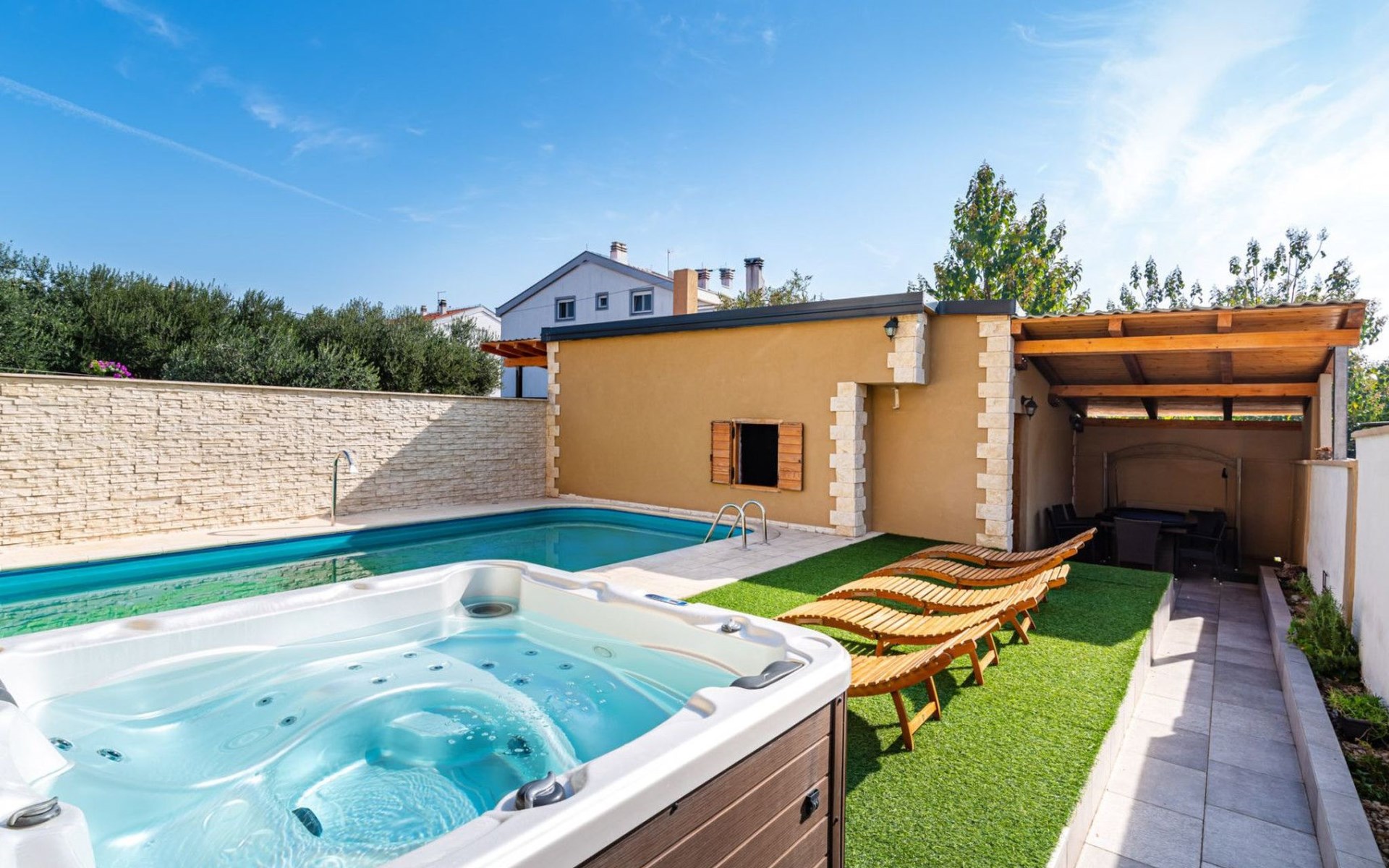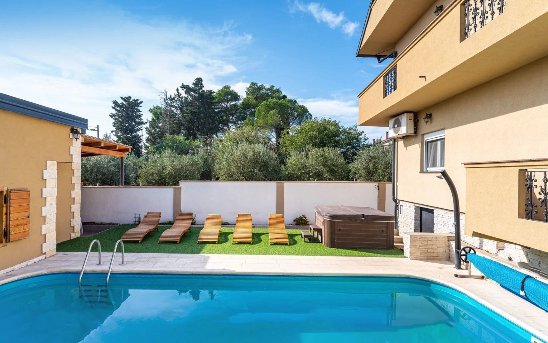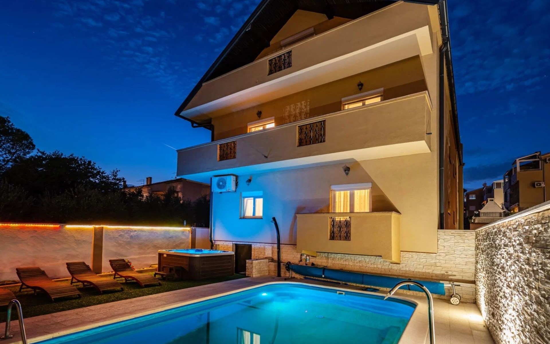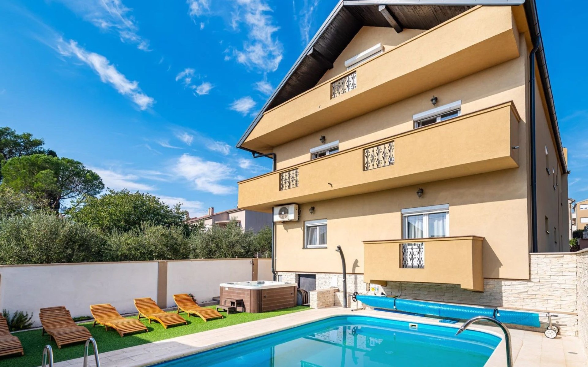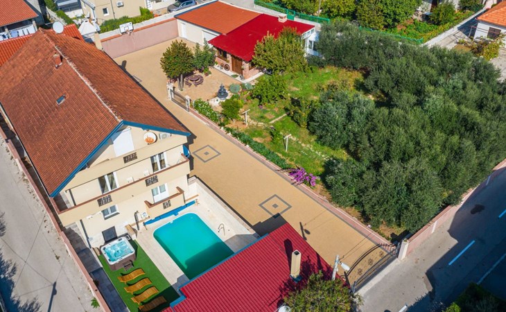 Discover the charm of Zadar at Villa YesPeaced, a spacious holiday house perfectly designed to accommodate up to 22 guests. Situated just 1.6 km from the vibrant center of Zadar, this villa is an ideal retreat for both relaxation and adventure. Whether it’s a large family gathering, a group of friends, or a special celebration, Villa YesPeaced promises a memorable stay with a blend of comfort and serenity.Inside, the villa boasts a total of 6 elegantly furnished bedrooms alongside 5 well-appointed bathrooms, ensuring ample space and privacy for all guests. The villa features a children's playroom, providing entertainment for the little ones, while adults can indulge in the luxury of their own private sauna and jacuzzi. Essential amenities such as a coffee machine, dishwasher, electric kettle, and a fireplace are provided to enhance your stay, making it a home away from home.Step outside to discover the villa's exquisite exterior, where a private heated pool awaits for your exclusive use. The generously sized garden offers a serene backdrop for relaxation or playful family fun. Gather on the terrace for al fresco meals or unwind on the balcony as you embrace the gentle Dalmatian breeze. The outdoor areas of Villa YesPeaced are designed with your utmost comfort in mind, ensuring a perfect balance between leisure and nature.The villa's prime location allows for easy exploration of Zadar's historical and cultural sights. Located merely 1,600 meters from the town center, guests can enjoy a short walk or drive to immerse themselves in the local lifestyle. The beach, just 1,600 meters away, invites you to bask in the sun and dip into the crystal-clear Adriatic Sea, while the proximity to a grocery store, 200 meters away, adds to the convenience of your stay.Villa YesPeaced is not just a holiday house; it’s a gateway to experiencing the authentic charm of Zadar while enjoying the comfort and luxury of a private residence. With its comprehensive amenities, elegant decor, and prime location, this villa stands as a prime choice for those looking to create unforgettable memories in the heart of Dalmatia.