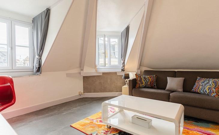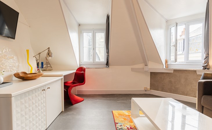 Trouville sur Mer: Appartementencomplex "Rossini", van 3 verdiepingen. Perfecte locatie: in het centrum en toch rustig gelegen, in het centrum van de stad, 260 m van zee, 260 m van het strand. (5 treden). Winkel, levensmiddelenwinkel 150 m, supermarkt 300 m, restaurant 150 m, bushalte "Casino de Trouville" 350 m, station "Deauville-Trouville" 2.3 km, zandstrand "Planches de Trouville" 300 m, overdekt zwembad 500 m, thermaalbad "Trouville sur Mer" 500 m. Golfterrein (18 holes) 4.9 km, zeilschool 1 km, tennis 300 m. Attracties in de buurt: Hippodrome Deauville-La Touques 2.8 km, Honfleur 15 km, Mémorial de Caen 50 km, Plage du débarquement d'Arromanches 86 km. De sleuteloverdracht vindt plaats bij het agentschap Interhome in Deauville.