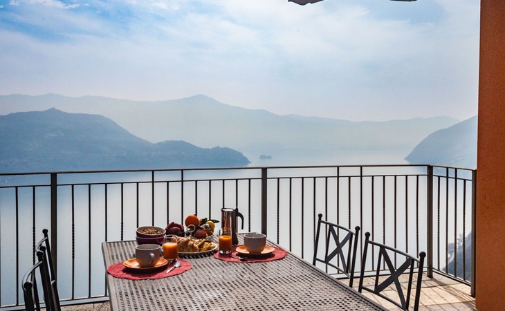 Exceptional lake view! From the large terrace equipped with table, chairs and sunshade, the view embraces a natural amphitheatre formed by water and sky, the surrounding mountains and Montisola, celebrated tourist resort and largest lake island in Central and Southern Europe. The swimming pool in the common areas overlooks the lake, with a solarium offering a view that stretches for miles; it can be reached by lift from the garage area.Situated on a mezzanine floor and covering 45 square metres with exposed beams, the two-room apartment features original, quality furnishings, which combine the pastel tones of the window frames, curtains, wall units and kitchen hood with the vibrant red of the chairs, table and sofa bed. The living room with a large French window overlooking the lake is complemented by a kitchen with induction hob, fridge and freezer, dishwasher, microwave, oven, coffee maker, kettle and hanging flat-screen TV. The cosy double bedroom with a large lake-view window includes a full-wall wardrobe, and the bathroom has a shower cubicle and wall-hung bathroom fittings. There is a large private garage and unlimited Wi-Fi. Pure poetry.Approximately a couple of kilometres away is the centre of Parzanica, a pretty historic village with the Romanesque Church of the Holy Trinity, and the hamlet of Acquaiolo with numerous rustic-style houses. A little further away is Tavernola Bergamasca, a charming lakefront town with a beautiful medieval old town centre and all amenities.Please advise your arrival time.An identity document must be shown at check-inThe swimming pool is open from 1 May to 15 October from 9 a.m. to 1.30 p.m. and from 3.30 p.m. to 11 p.m.Just over an hour from Milan, Bergamo and their respective international airports, Tavernola Bergamasca is distinguished by its characteristic lakefront with medieval views and settings, above all the Fenaroli Tower that dominates the town. Opposite is Montisola, towards the south the road skirts the lake shore for several kilometres, making the area an oasis surrounded by water; heading north towards Lovere, one of the most beautiful villages in Italy, the road that skirts the Bogn gorge, with its natural arches, is a must. Within a short distance are the Franciacorta wine cellars, the Presolana massif for high-altitude hiking, Valcamonica for archaeological tourism with its 300,000 rock engravings, the slopes of Colere and Monte Pora for hiking and skiing, and Boario for thermal baths. IT016159B4T54QHHA7