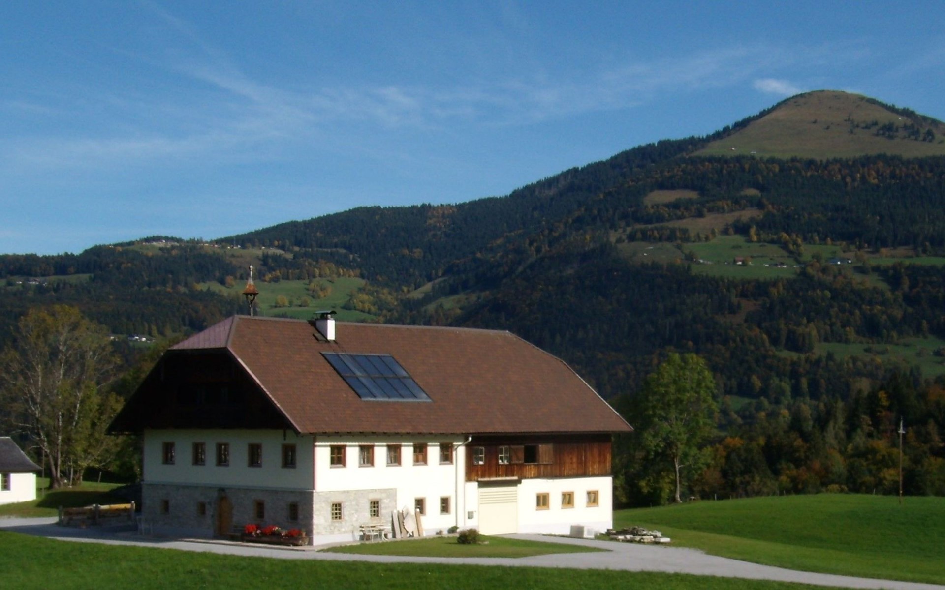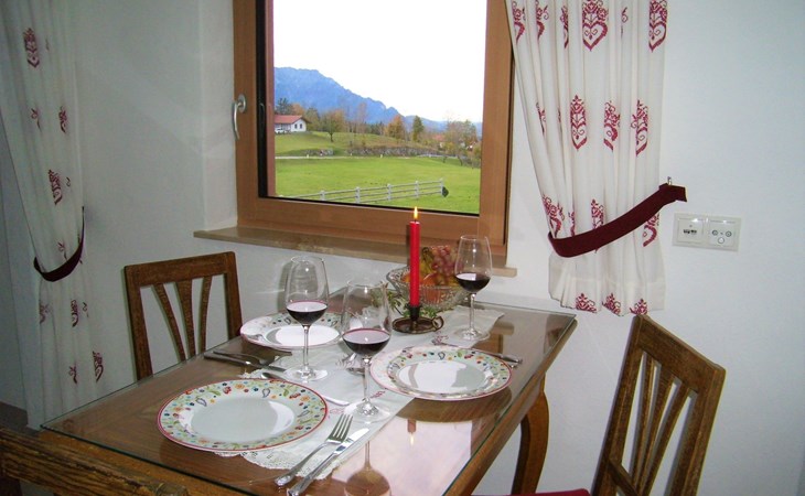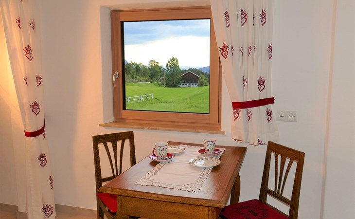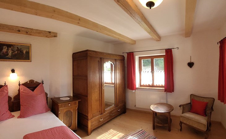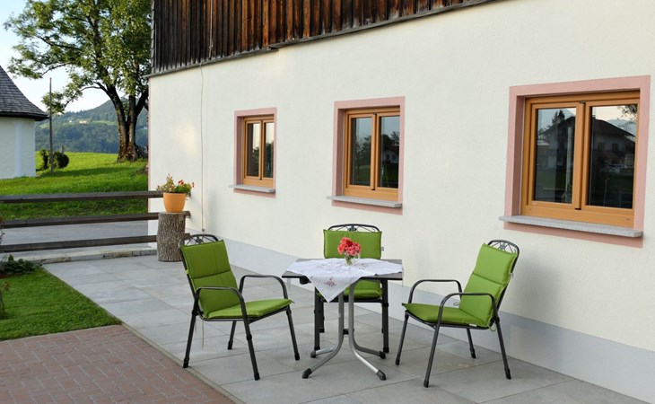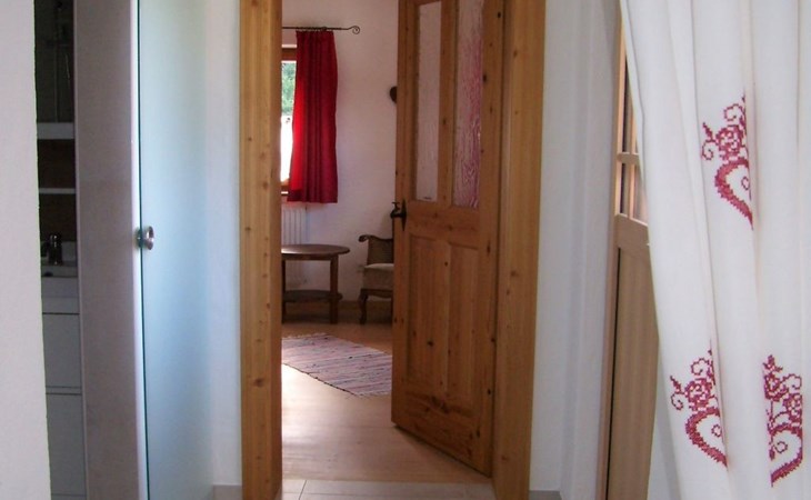 Secluded location, landlord lives in the main building.The small village of St. Koloman is 2 km away and lies approx. 800 m above sea level.Large outdoor area, secluded location, mountain view! Large terrace with garden and 2 parking spaces for your exclusive use. The terrace is equipped with garden furniture, sun loungers, parasol and seating for two to three people as required.Private access to the holiday flat (32sqm) on the first floor.The bedroom with double bed (1.60m x 2m) is heated with an infrared radiator.The bathroom with shower and WC, the hallway and the eat-in kitchen are equipped with underfloor heating.equipped with underfloor heating.There is also a wood-burning stove in the eat-in kitchen. A fridge with freezer compartment, a 2-burner hob and a dishwasher are available. The fold-out couch can be used comfortably for a third person. A TV, radio and free WLAN are available.Rural scattered settlement in a picturesque landscape with many beautiful excursion destinations, hiking trails, farmed alpine pastures, friendly people, an ideal place for your relaxation.Favourite excursion destinations: Salzburg, Berchtesgaden with NT Park Königsee, Fuschlsee, Eisriesenwelt and Werfen Castle, Hallein, Hallstadt, the Untersberg railway in Grödig, Lammer and Almbachklamm gorges, Römerbrücke bridge with Taugl torrent, nearby bathing lakes, Seewaldsee nature reserve...Good shopping facilities for groceries in Bad Vigaun, 6 km away. There is also a beautiful thermal bath there. The nearest bathing lake in Kuchl is approx. 8 km away.In Hallein, 10 km away, there are many shopping facilities and restaurants. The nearest restaurant with an impressive panoramic view of the mountains and good cuisine is 2 km away.Energy costs are charged at the current price according to consumption for the duration of your stay.For dog owners: only small dogs are allowed. Hunting or hunting dogs and fighting dogs are not allowed.For the duration of your stay, you can use your guest card (Tennengau Card) to travel daily on buses and local trains to Salzburg andvarious destinations in the surrounding area FREE OF CHARGE.In this over 300 year old, completely renovated farmhouse in a rural setting with lots of nature, you can still enjoy a piece of original Austria.Rented since 2020, everything new, large sun terrace and outdoor area, 2 parking spaces, small garden with lawn are at your sole disposal.Enjoy the beautiful landscape with a view of the mountains, flower meadows and fragrant fresh hay.On request we are happy to open the house chapel for you for a quiet retreat.This holiday flat has been biologically tested and rated as good to very good. It is also suitable for e-sensitives, as WLAN can be switched off!