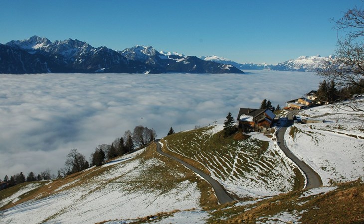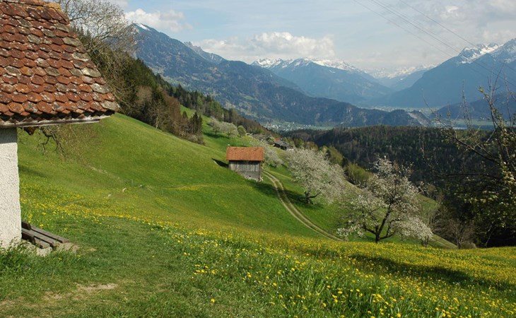On the sunny side of the Walgau at 900 metres above sea level lies our holiday home, a two-family farmhouse that is over 300 years old, which has been adapted to modern comforts and lovingly restored on an ongoing basis. It is equipped for self-catering and offers space for up to 9 people. The area is ideal for hiking, mountaineering, mountain biking or paragliding, as well as for excursions to the Biosphere Park, Großes Walsertal, the Lake Constance region, Liechtenstein and Switzerland.