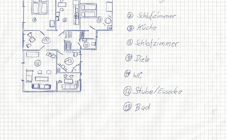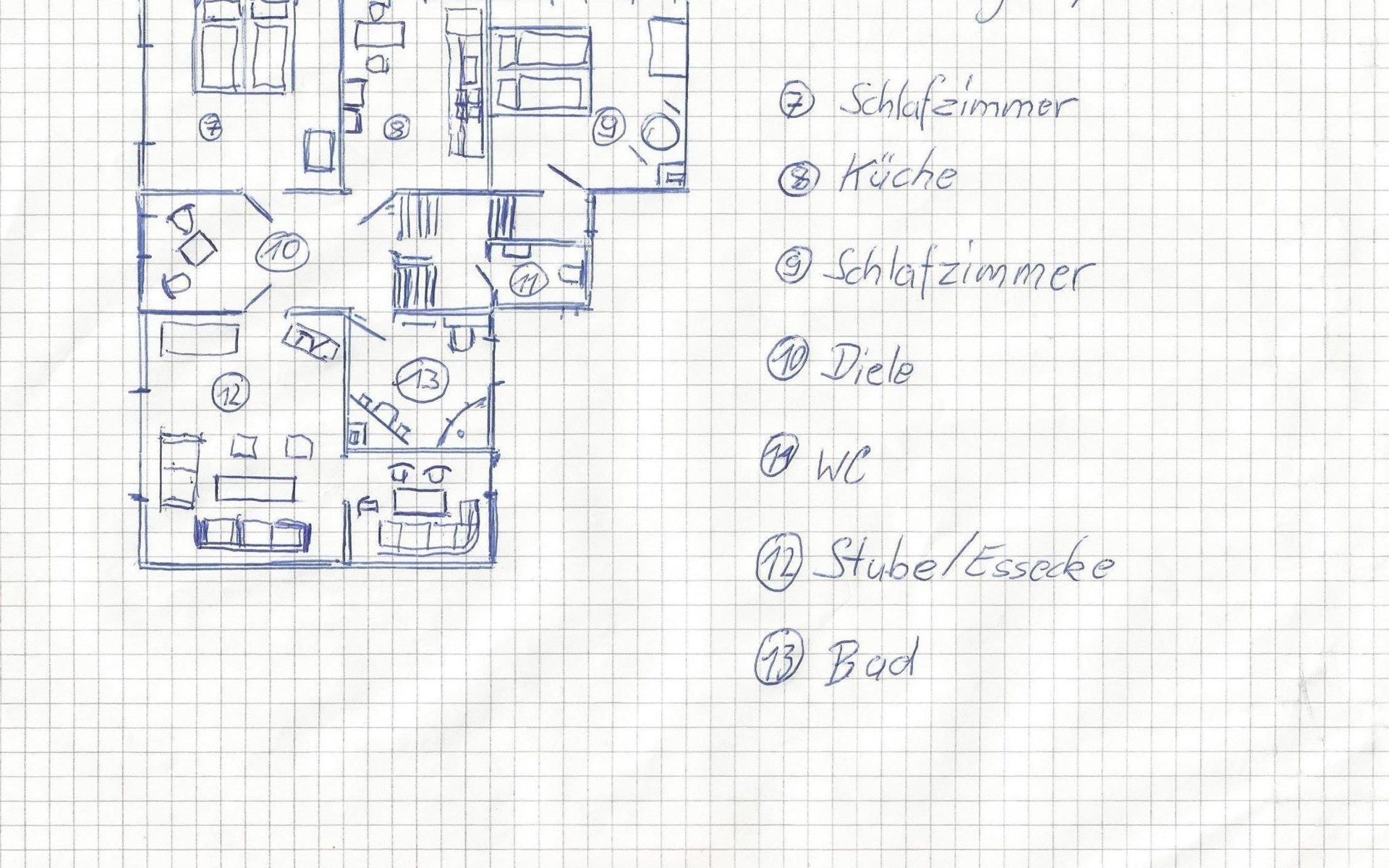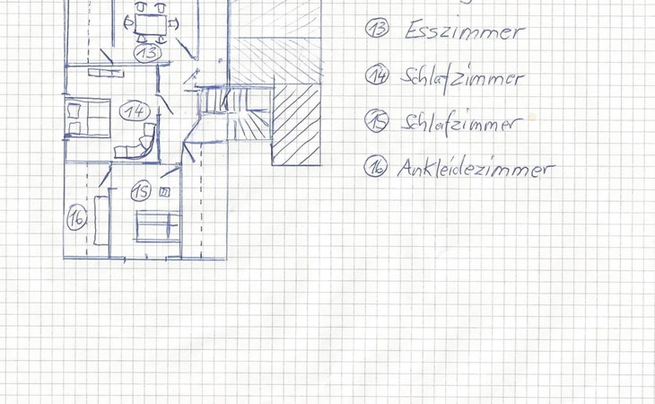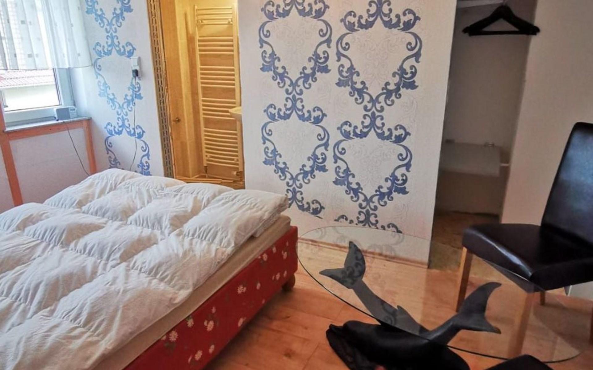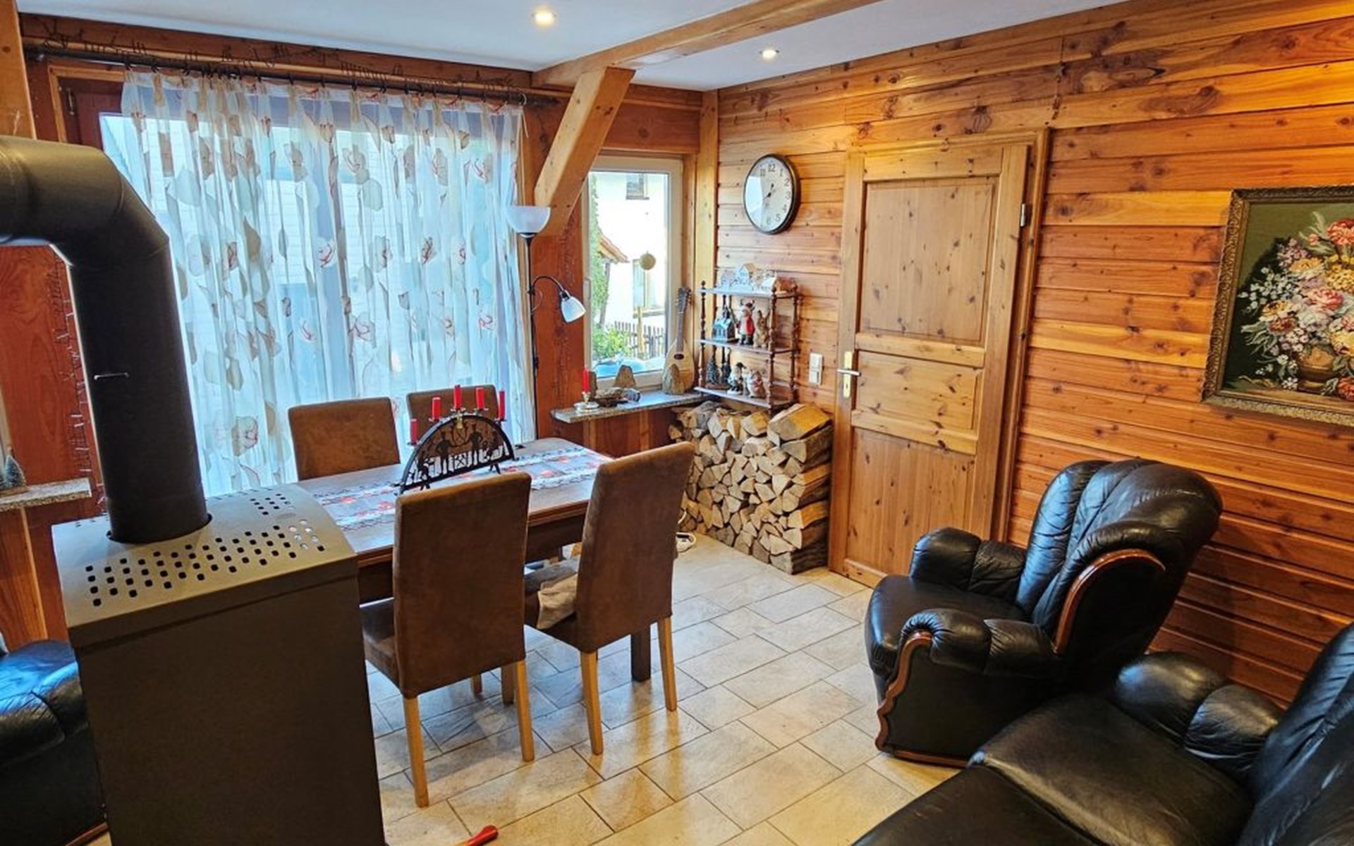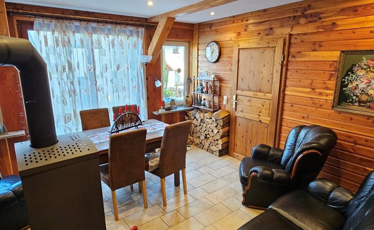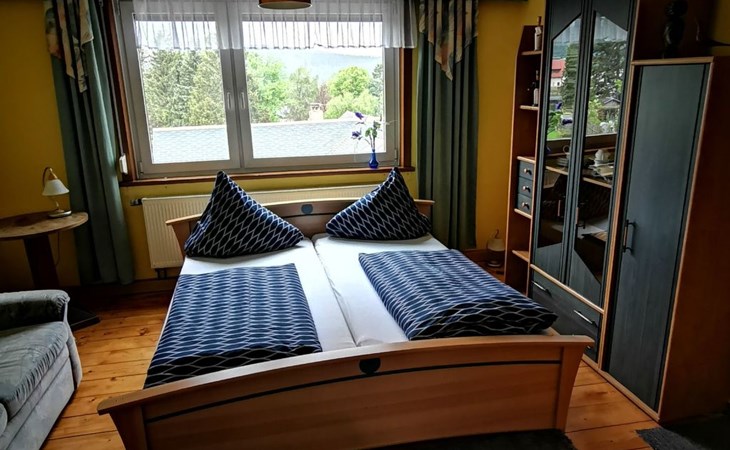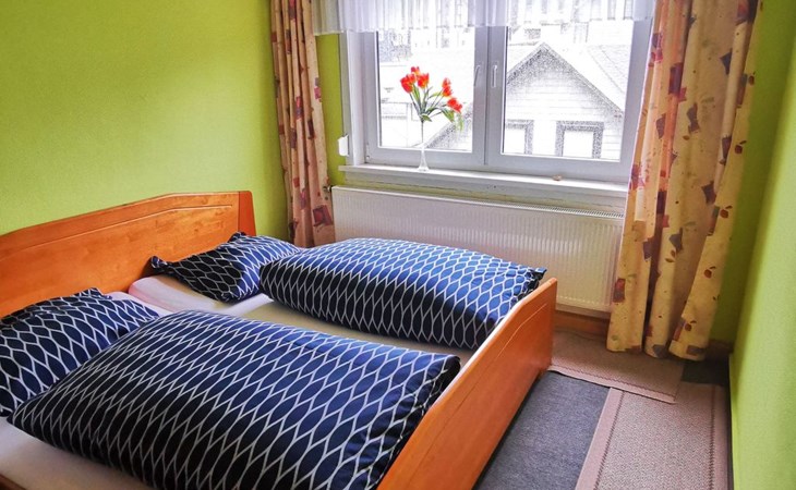 The flat on the upper floor is romantically furnished and offers you every comfort for a relaxing stay. A cosy living room with cable TV and stereo system is at your disposal. The well-equipped eat-in kitchen with cooker, microwave, coffee machine, kettle and fridge invites you to enjoy meals together. The bathroom is equipped with a separate shower, WC and a large washbasin and offers cosy warmth at all times thanks to the central heating. For ultimate relaxation, the house also features a private Finnish sauna. The comfortable bedrooms with one double bed measuring 2m x 2m and two double beds measuring 1.8m x 2m ensure a good night's sleep.