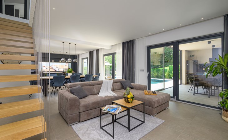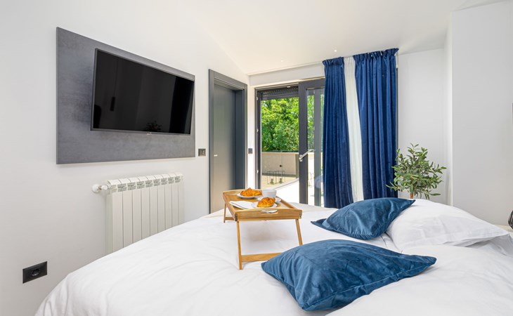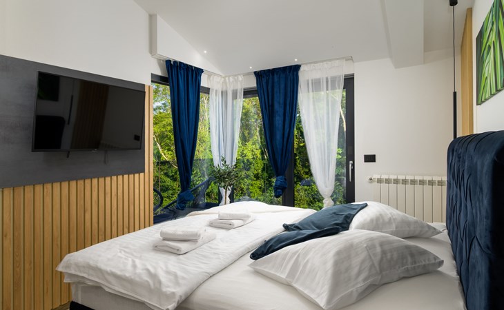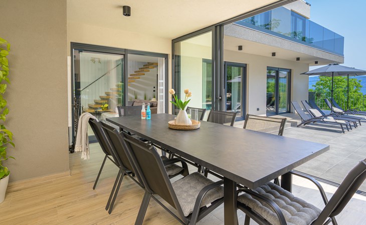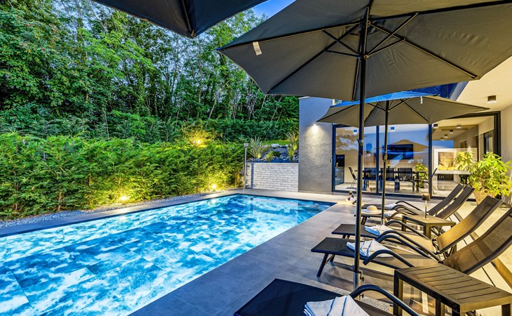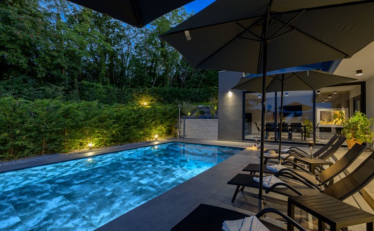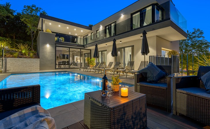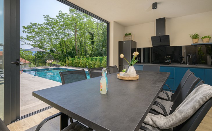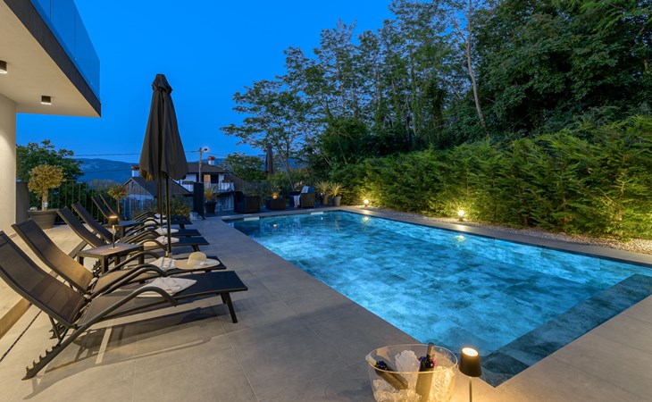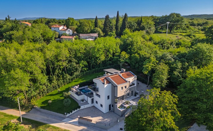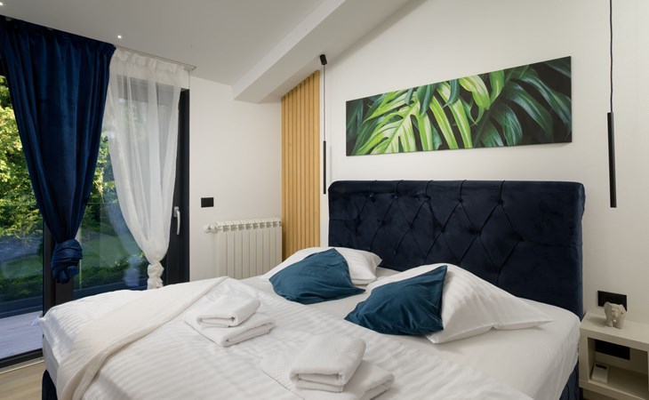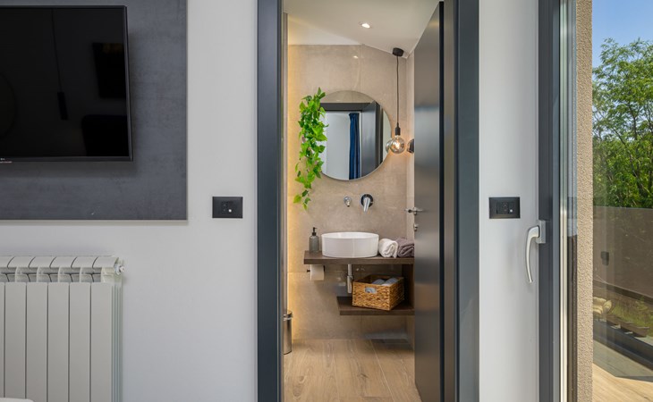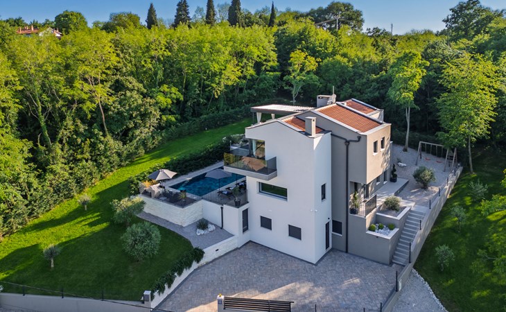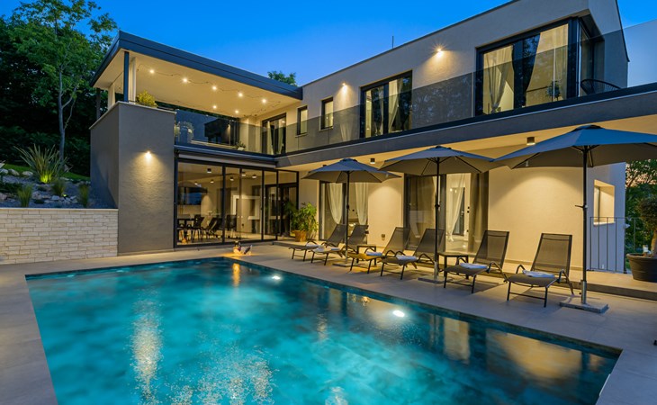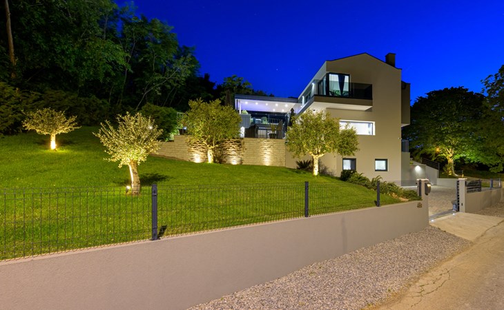 Zeer mooi, luxueuze villa "Ollea", van 3 verdiepingen. In het gehucht Radovići, 10 km van het centrum van Labin, 15 km van het centrum van Rabac, 15 km van zee. Voor alleengebruik: terrein 900 m2 (omheind) met planten en bomen, openluchtzwembad hoekig (8 x 4 m, 150 cm diepte, seizoensgebonden beschikbaarheid: 01.Apr. - 30.Okt.) met trap. Buitendouche, hot tub, tafeltennis, barbecue (glijbaan, schommel), onderhoud zwembad door de eigenaar/tuinman. In het huis: internetaansluiting, sauna, tafelvoetbal, wasmachine, droger. Overdekte parkeerplaats (voor 4 auto's) bij het huis op het terrein. Winkel 4 km, supermarkt 10 km, restaurant 4 km, bushalte "Labin" 10 km, kiezelstrand 15 km. De eigenaar accepteert geen jeugdgroepen. Vliegveld 53 km van het huis. Videobewaking bij de oprit en parkeerplaats.