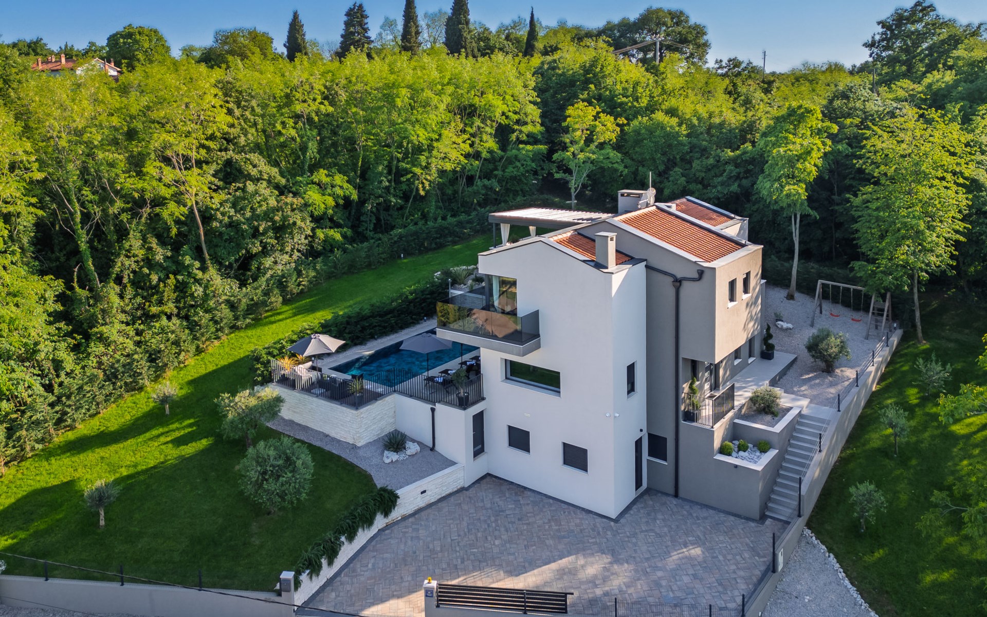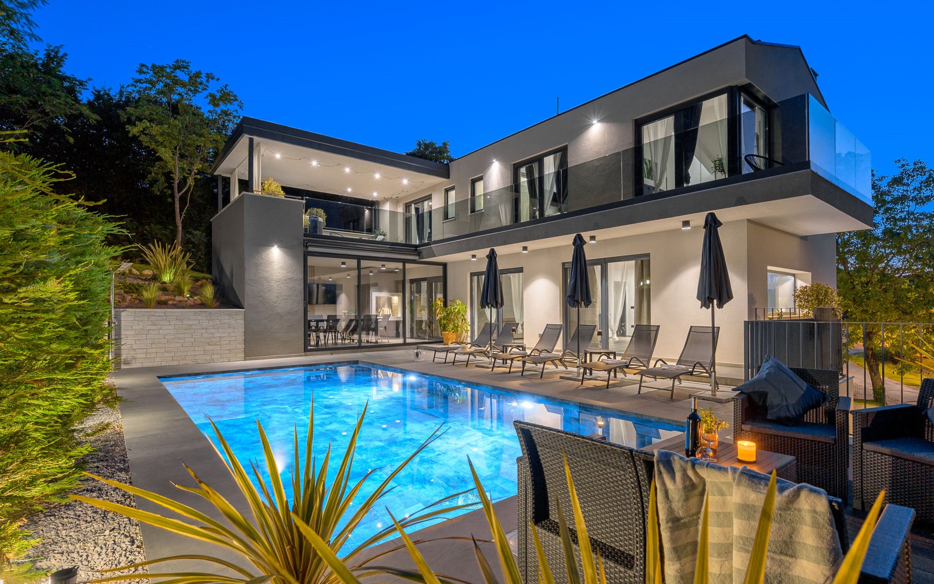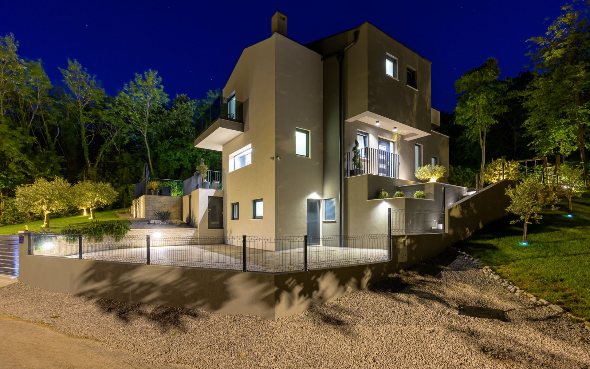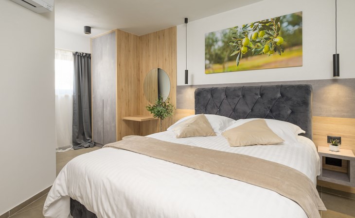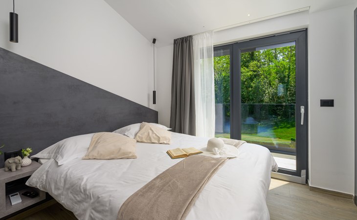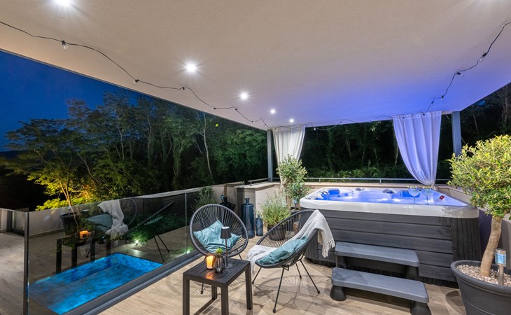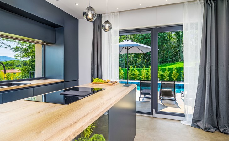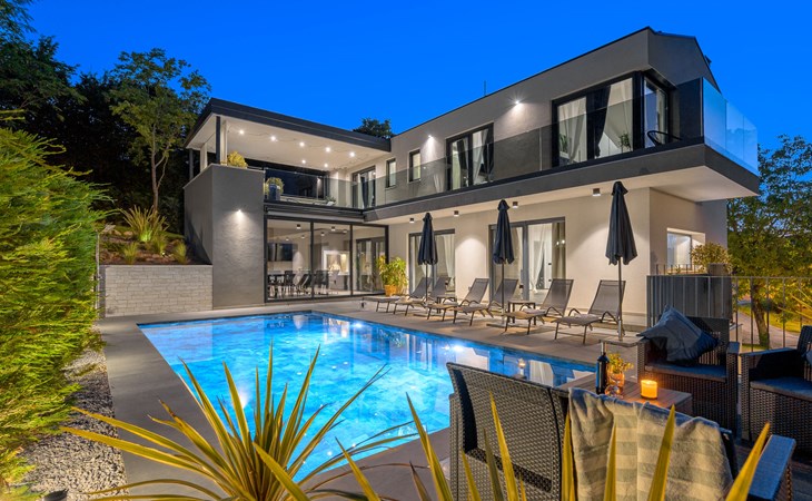 Zeer mooi, luxueuze villa "Ollea", van 3 verdiepingen. In het gehucht Radovići, 10 km van het centrum van Labin, 15 km van het centrum van Rabac, 15 km van zee. Voor alleengebruik: terrein 900 m2 (omheind) met planten en bomen, openluchtzwembad hoekig (8 x 4 m, 150 cm diepte, seizoensgebonden beschikbaarheid: 01.Apr. - 30.Okt.) met trap. Buitendouche, hot tub, tafeltennis, barbecue (glijbaan, schommel), onderhoud zwembad door de eigenaar/tuinman. In het huis: internetaansluiting, sauna, tafelvoetbal, wasmachine, droger. Overdekte parkeerplaats (voor 4 auto's) bij het huis op het terrein. Winkel 4 km, supermarkt 10 km, restaurant 4 km, bushalte "Labin" 10 km, kiezelstrand 15 km. De eigenaar accepteert geen jeugdgroepen. Vliegveld 53 km van het huis. Videobewaking bij de oprit en parkeerplaats.