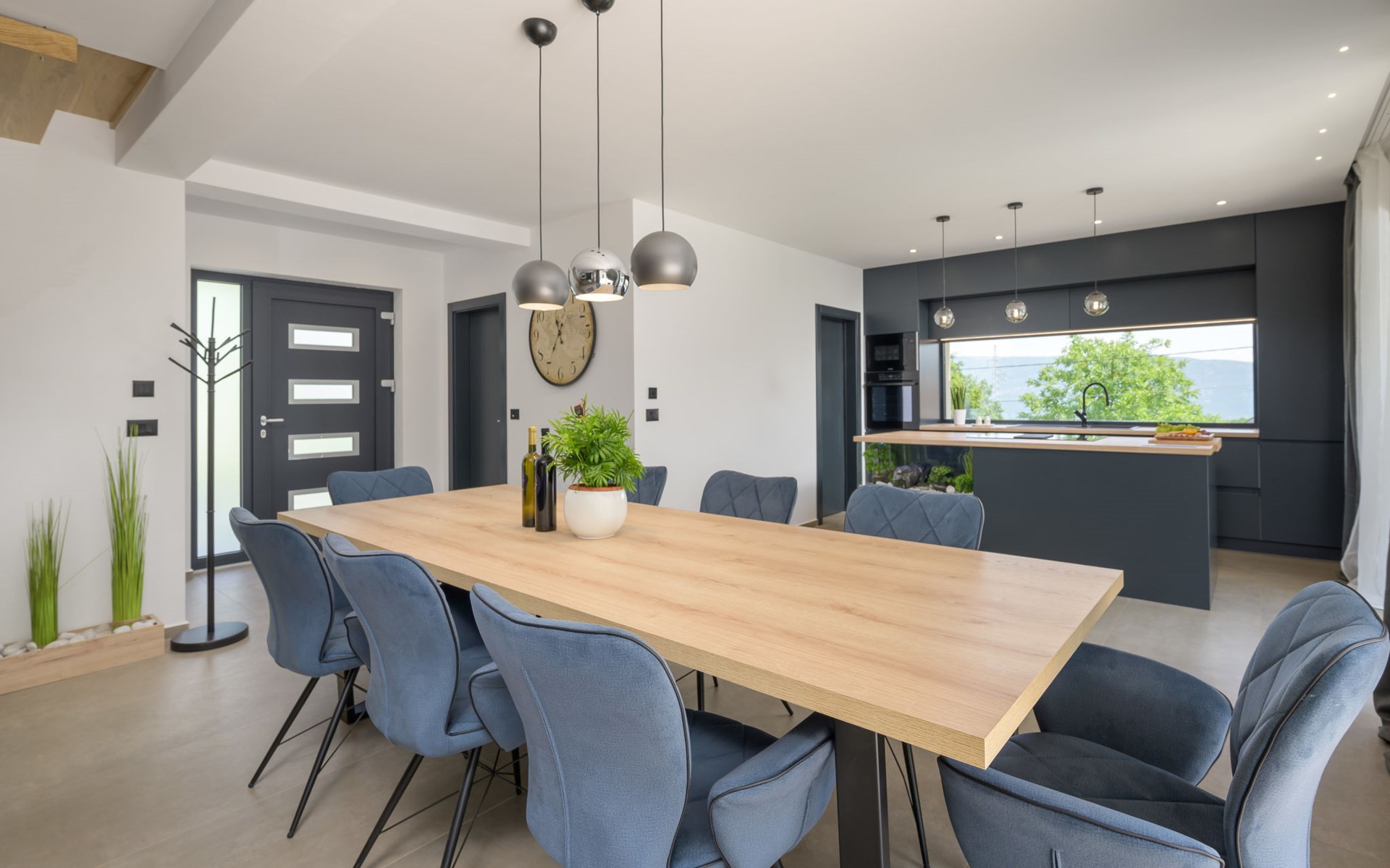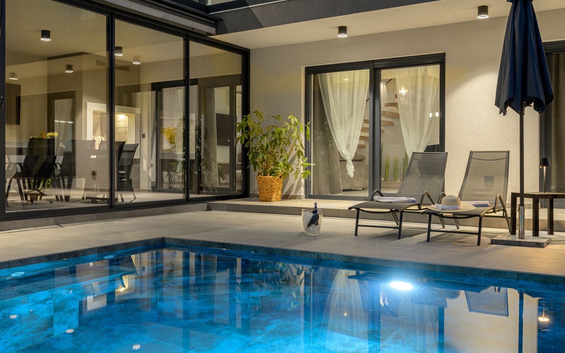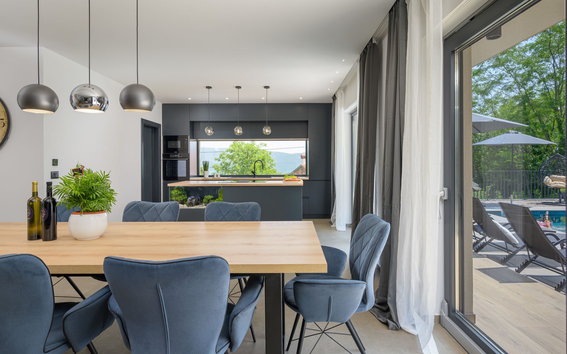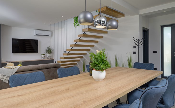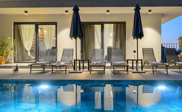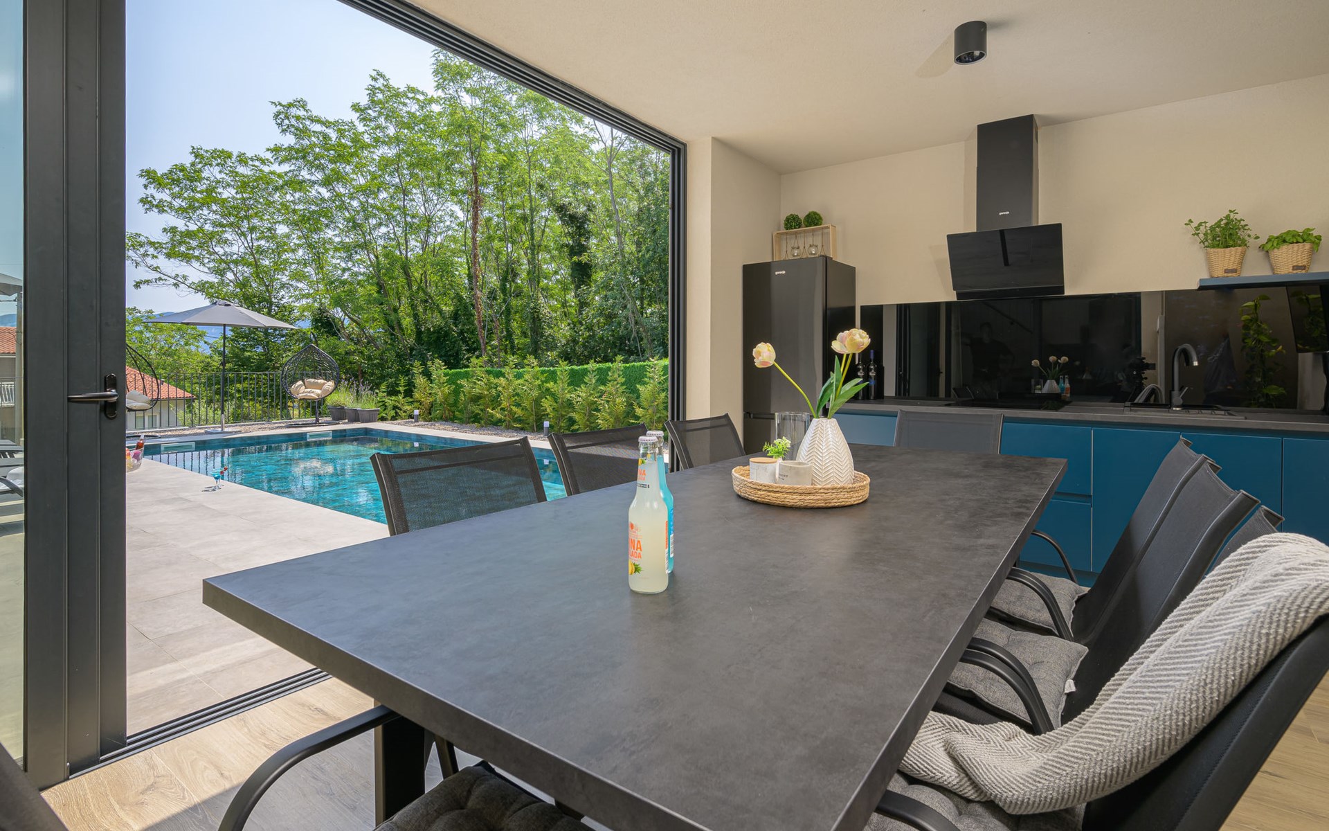 Zeer mooi, luxueuze villa "Ollea", van 3 verdiepingen. In het gehucht Radovići, 10 km van het centrum van Labin, 15 km van het centrum van Rabac, 15 km van zee. Voor alleengebruik: terrein 900 m2 (omheind) met planten en bomen, openluchtzwembad hoekig (8 x 4 m, 150 cm diepte, seizoensgebonden beschikbaarheid: 01.Apr. - 30.Okt.) met trap. Buitendouche, hot tub, tafeltennis, barbecue (glijbaan, schommel), onderhoud zwembad door de eigenaar/tuinman. In het huis: internetaansluiting, sauna, tafelvoetbal, wasmachine, droger. Overdekte parkeerplaats (voor 4 auto's) bij het huis op het terrein. Winkel 4 km, supermarkt 10 km, restaurant 4 km, bushalte "Labin" 10 km, kiezelstrand 15 km. De eigenaar accepteert geen jeugdgroepen. Vliegveld 53 km van het huis. Videobewaking bij de oprit en parkeerplaats.