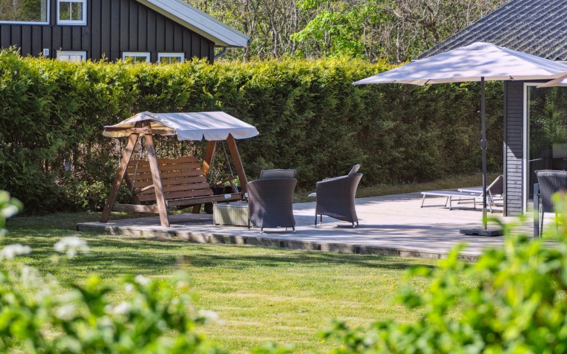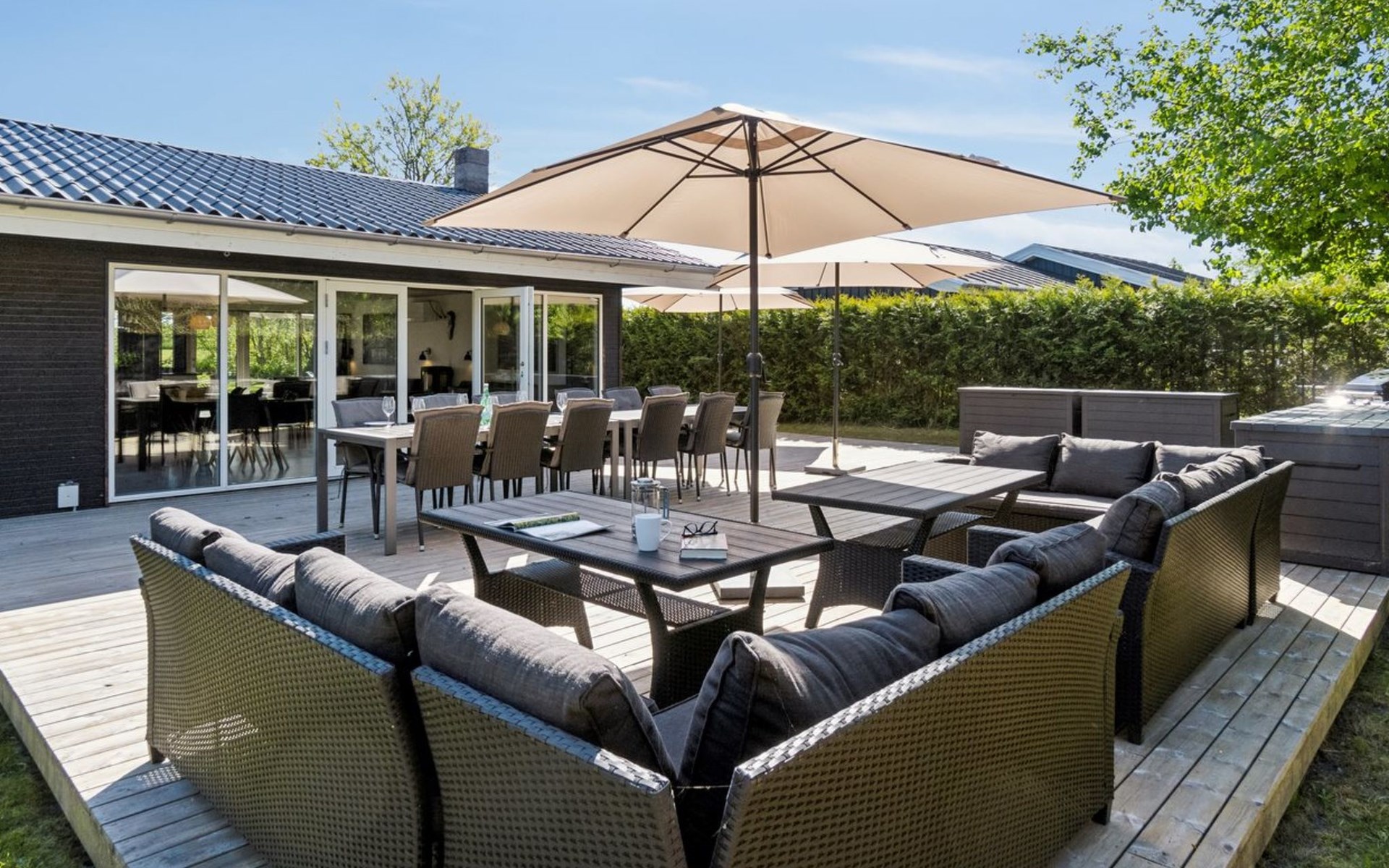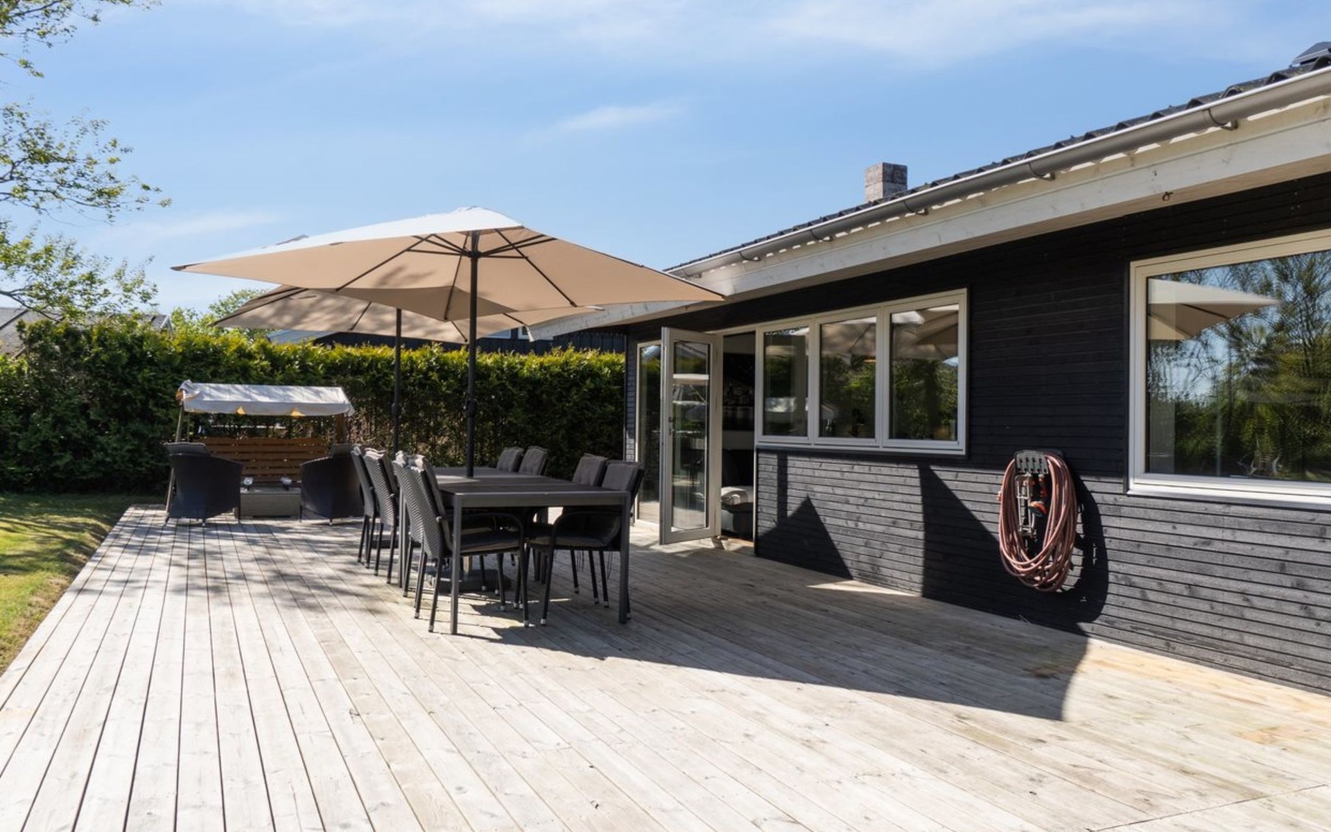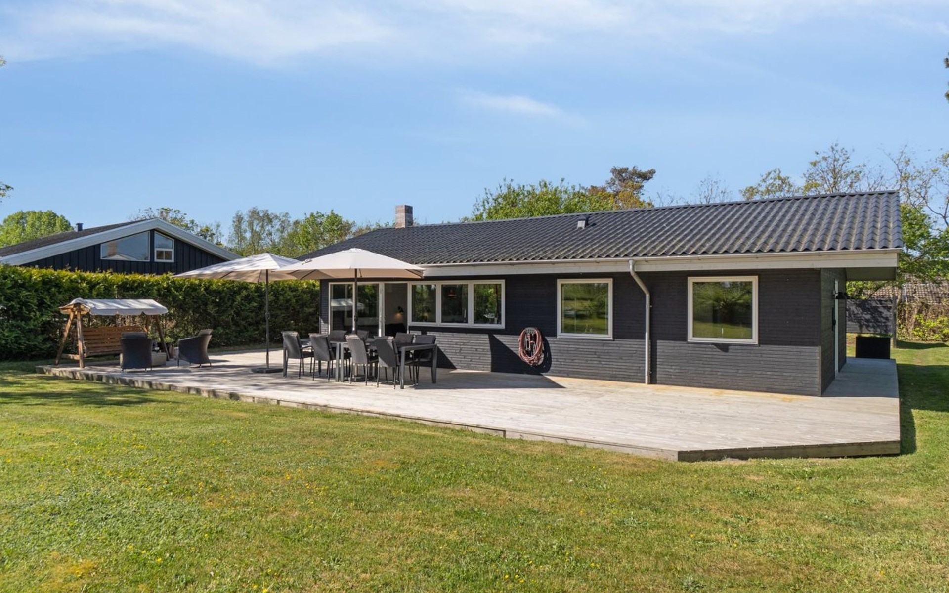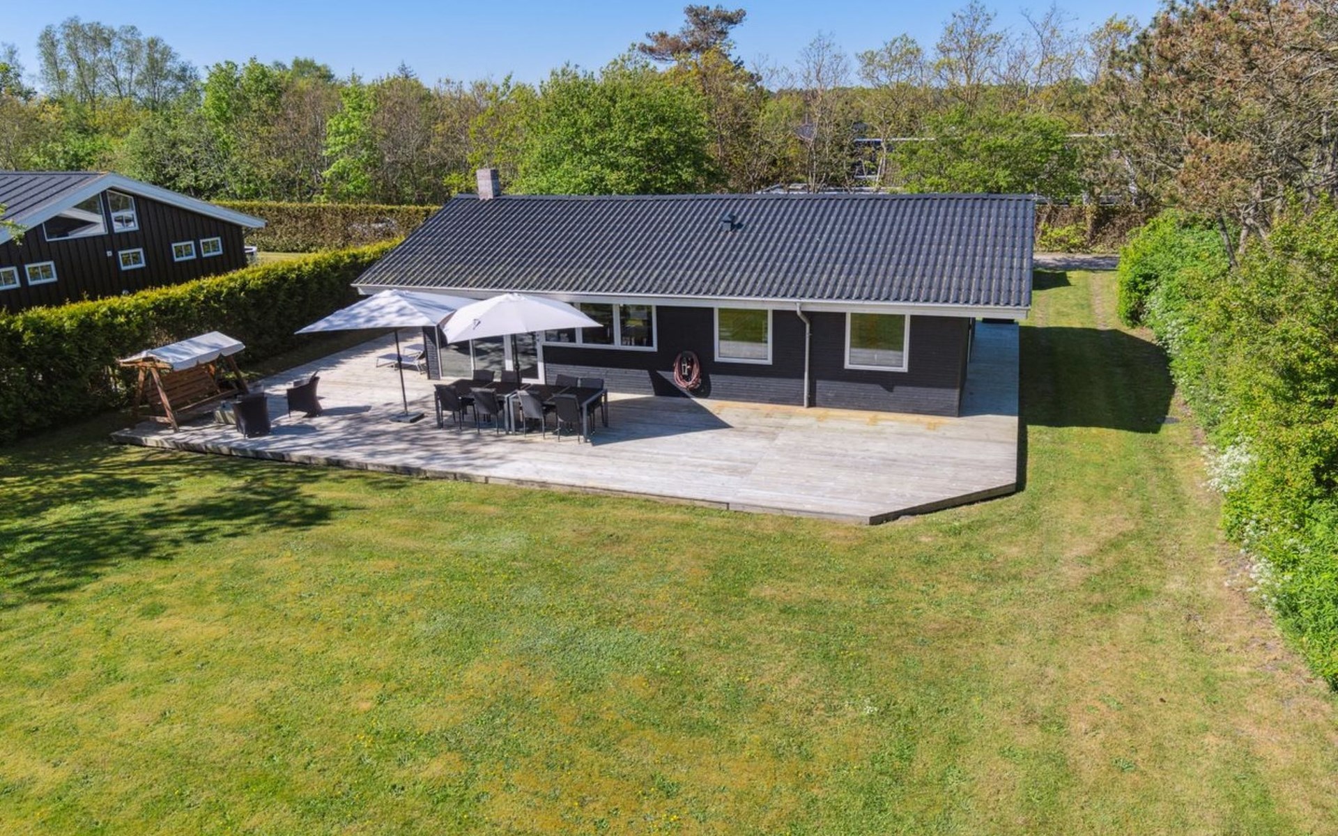 Eengezinswoning, bouwjaar 1972. 50 m van zee. Voor alleengebruik: terrein 853 m2, verzorgde tuin. Terras (330 m2), barbecue, parkeerplaats bij het huis. Levensmiddelenwinkel 2.5 km. De eigenaar accepteert geen jeugdgroepen.
