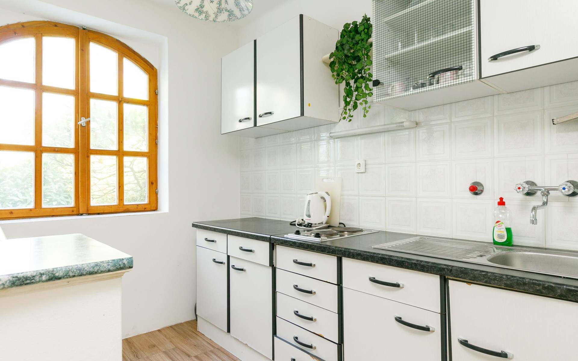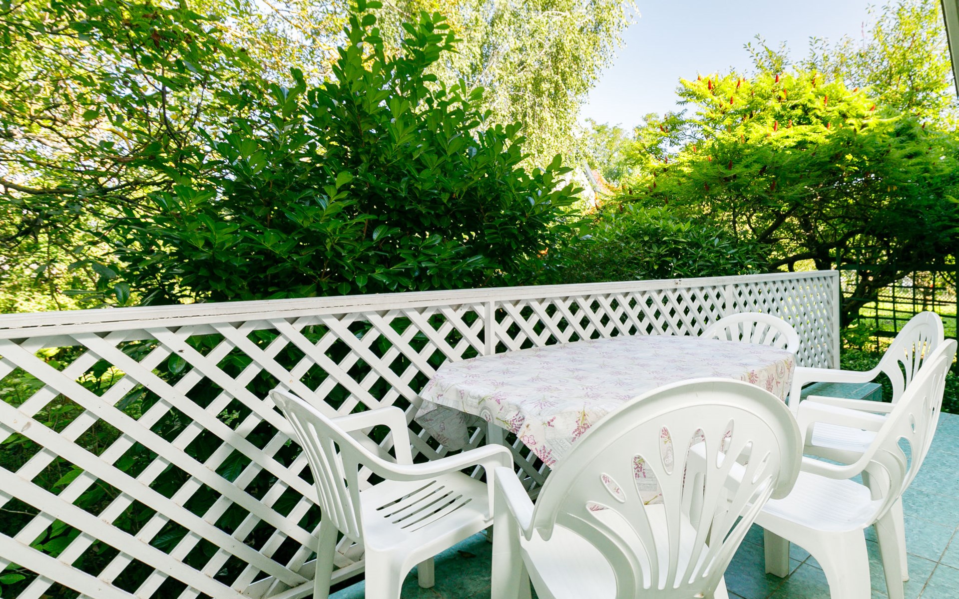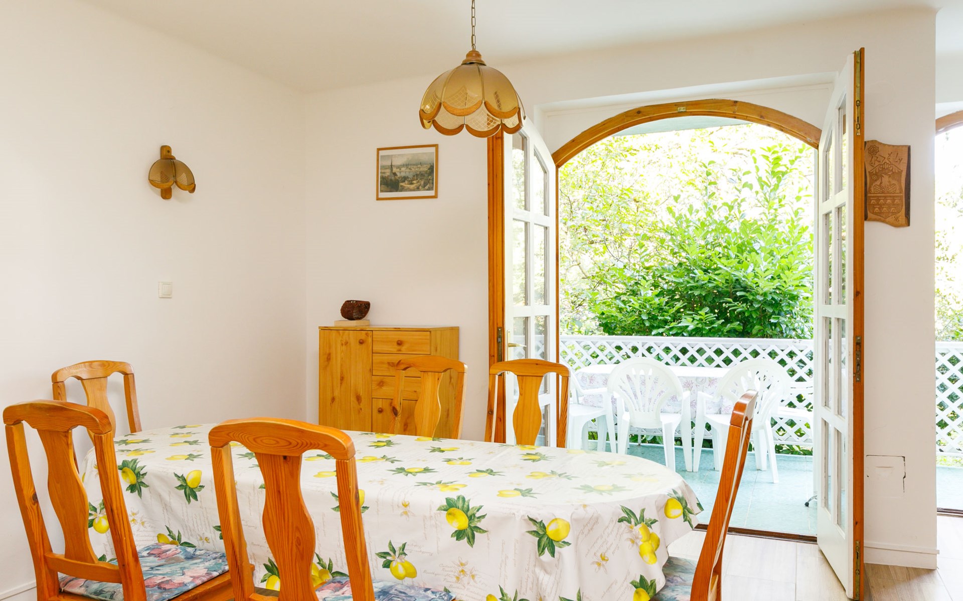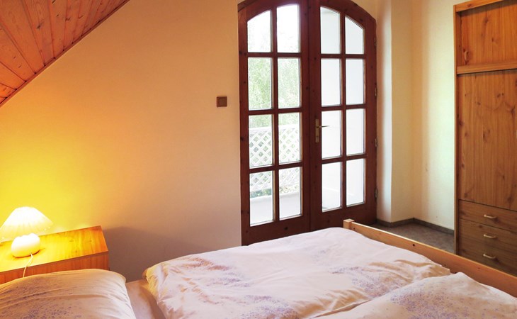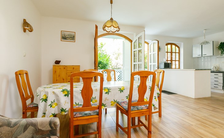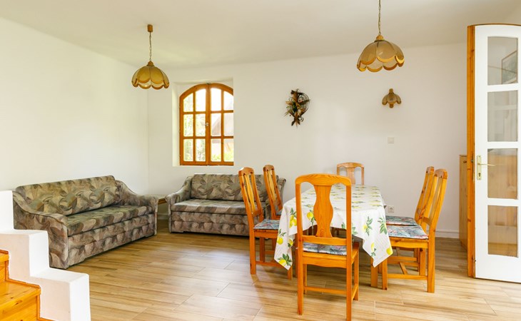 Siófok: Twee onder één kap woning "Elisabeth". 400 m van het centrum van Sosto, 6 km van het centrum van Siofok, in een woonwijk, 500 m van het meer, 650 m van het strand. Voor alleengebruik: terrein 200 m2 (omheind) met bomen, weide, parkeerplaats (voor 2 auto's) op het terrein. Winkel, restaurant 400 m, grasstrand 500 m. Eigenaar woont in apart huisgedeelte.