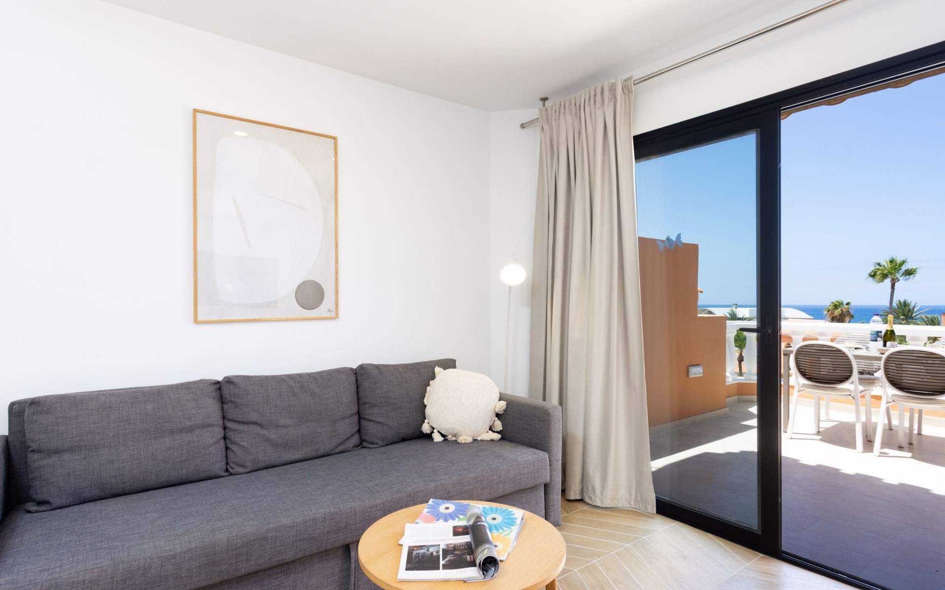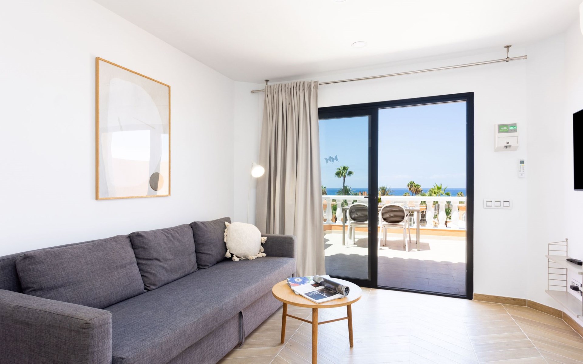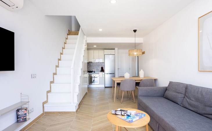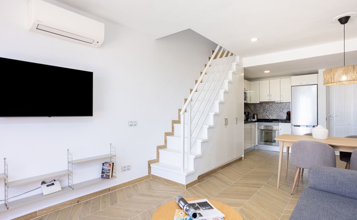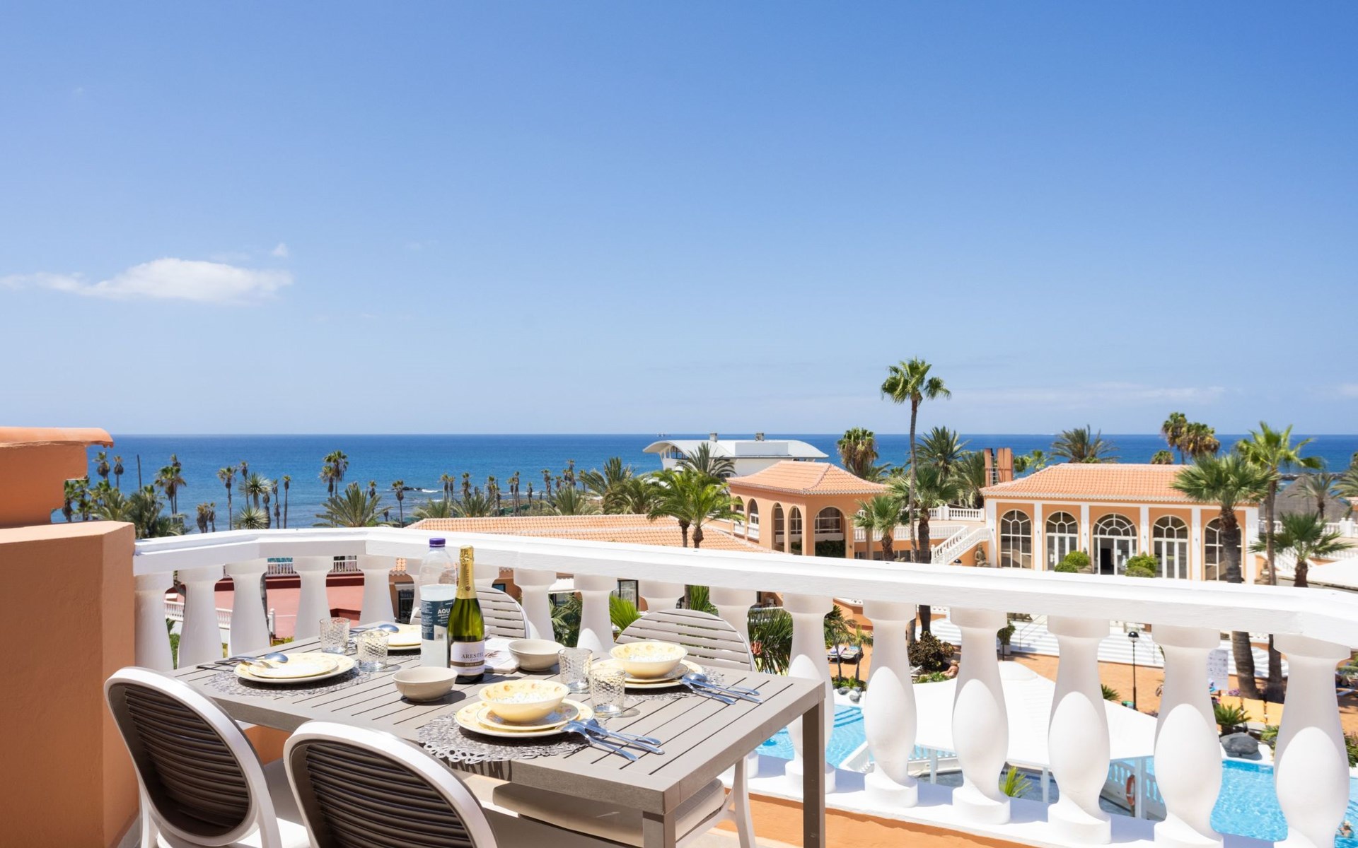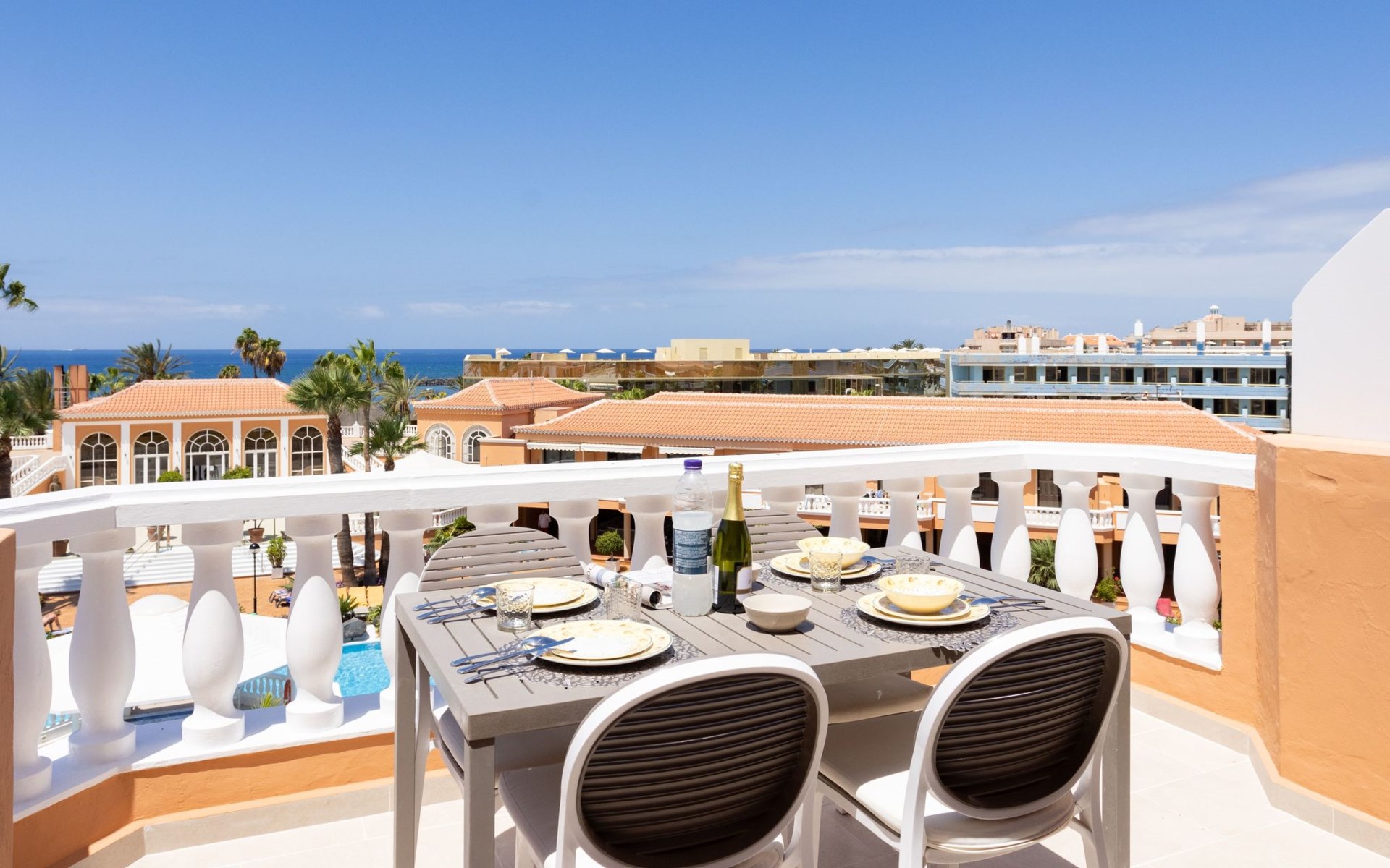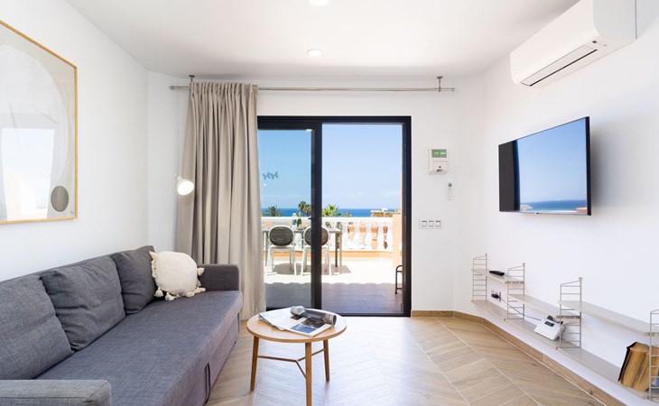 De flat is bereikbaar met een lift. Het terras biedt een adembenemend uitzicht op zee en op het zwembad. Je kunt er 's avonds met een glas wijn genieten van de zonsondergang.