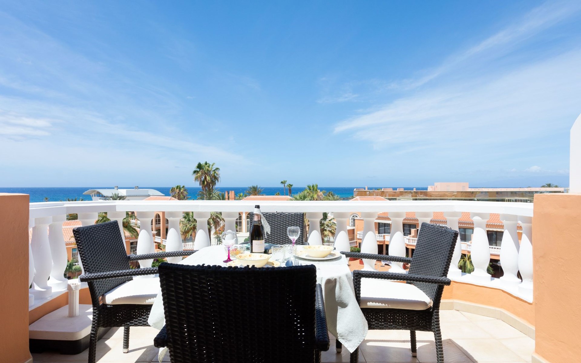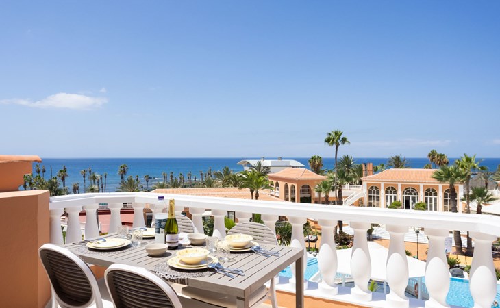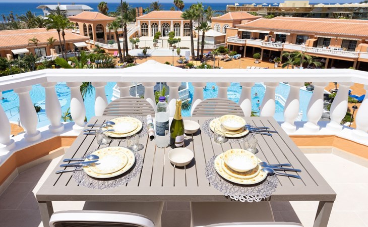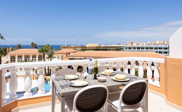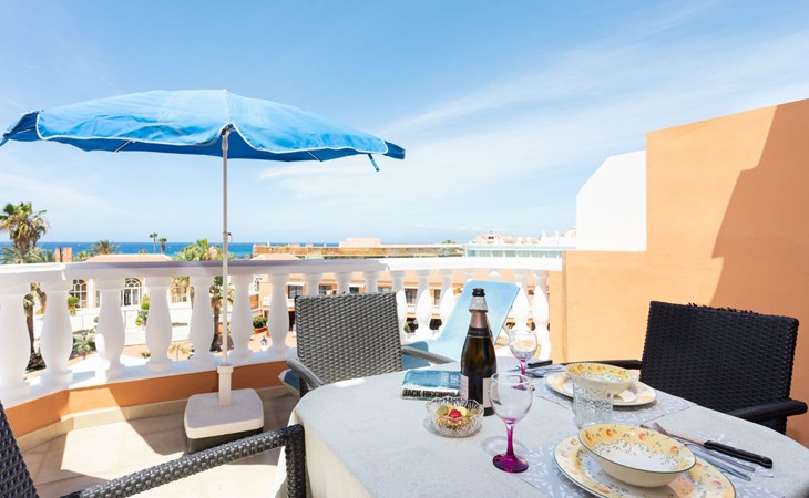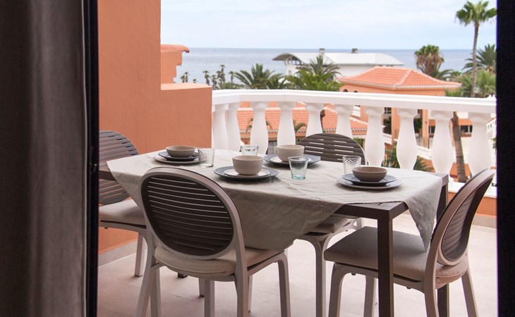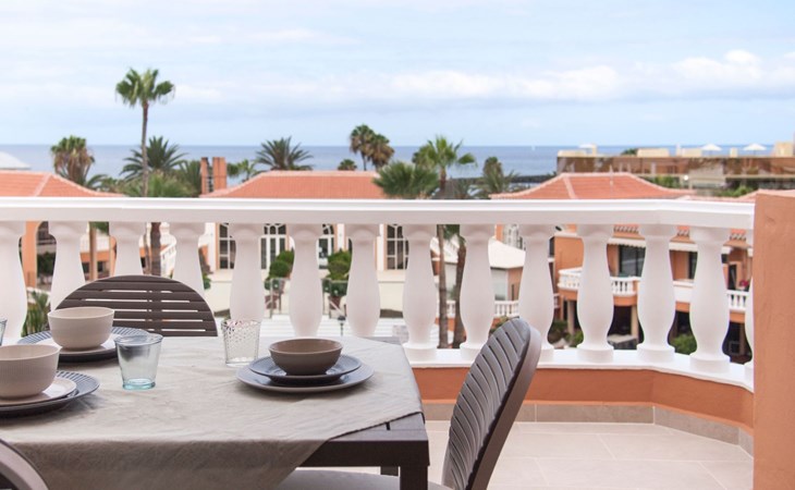 De flat Playa Las Vistas 2 ligt direct aan zee in het goed onderhouden complex Tenerife Royal Gardens en behoort tot de hogere klasse op Tenerife. De locatie is perfect voor een ontspannen strandvakantie, het is slechts 100 meter naar de zee en een paar stappen naar het strand Playa Las Vistas.