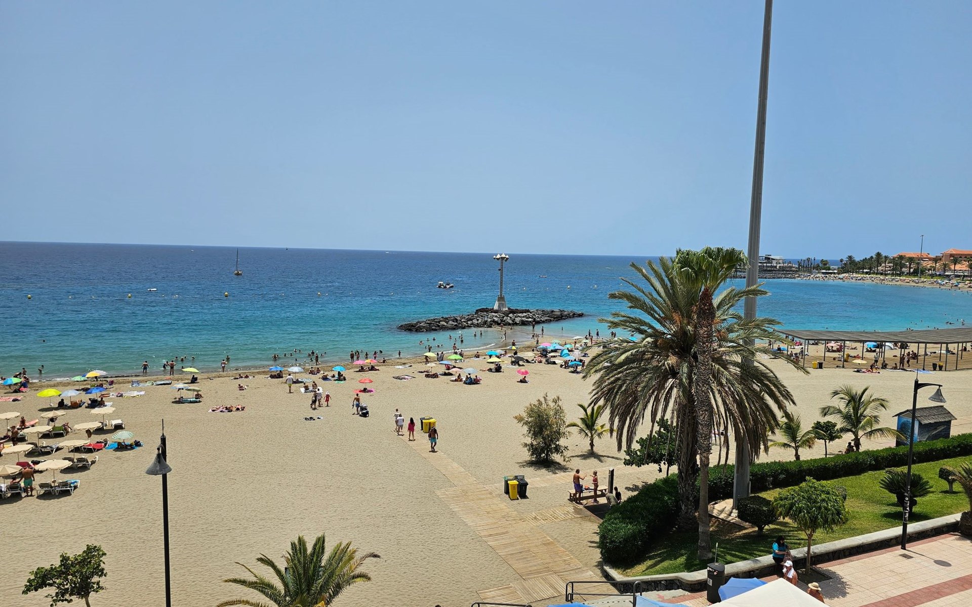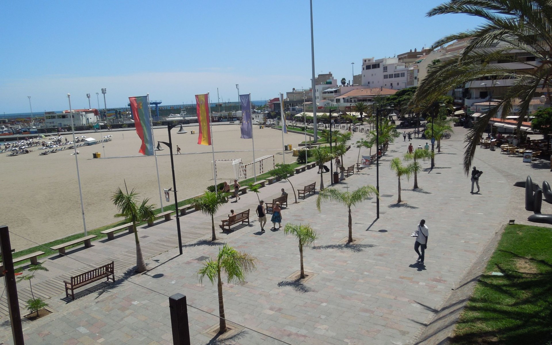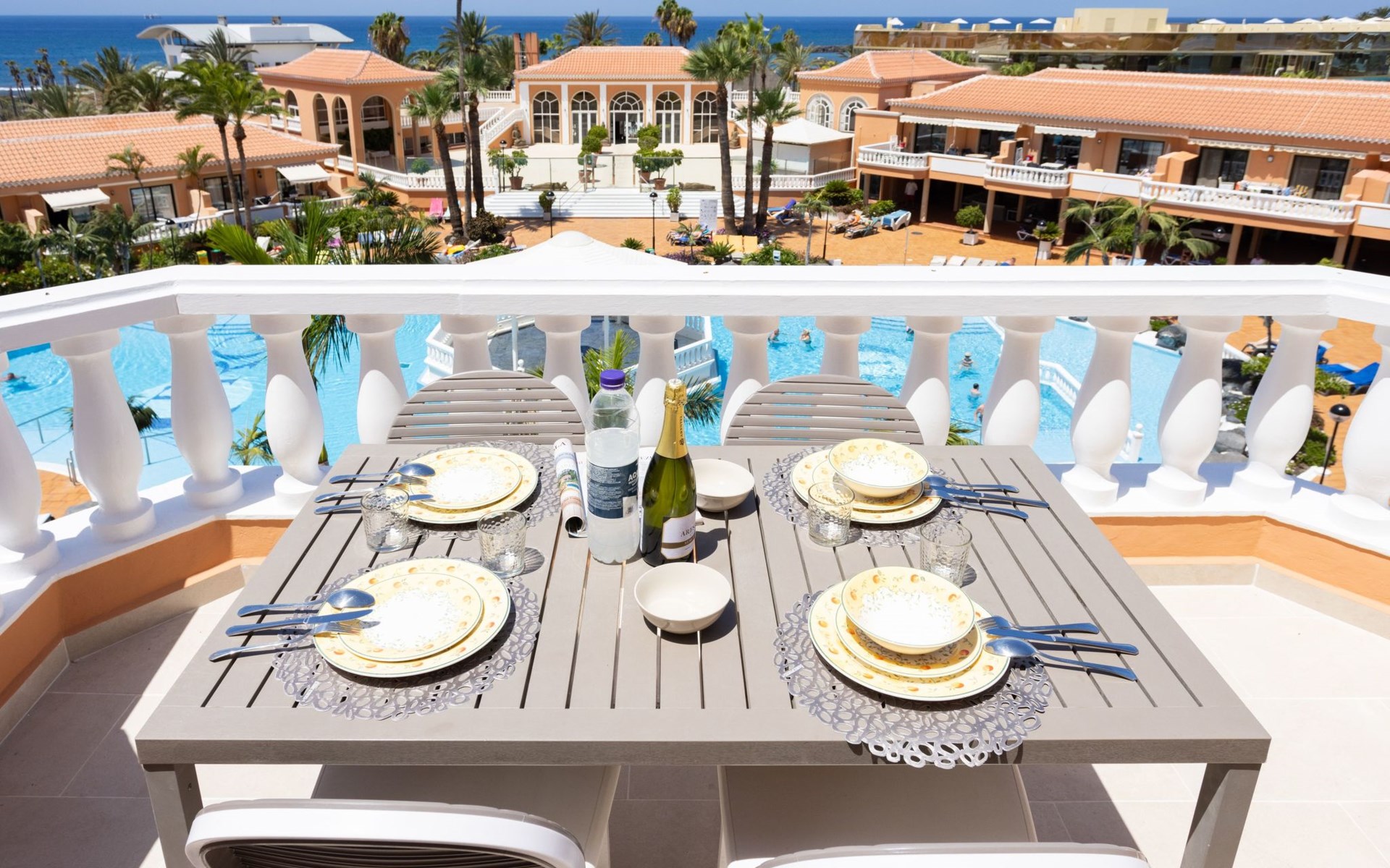 De flat Playa Las Vistas 2 ligt direct aan zee in het goed onderhouden complex Tenerife Royal Gardens en behoort tot de hogere klasse op Tenerife. De locatie is perfect voor een ontspannen strandvakantie, het is slechts 100 meter naar de zee en een paar stappen naar het strand Playa Las Vistas.