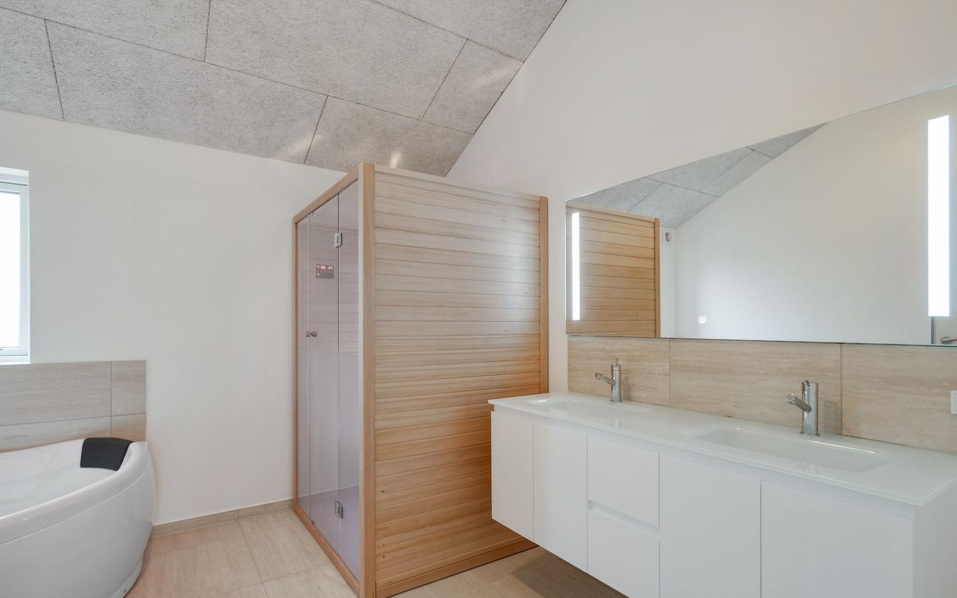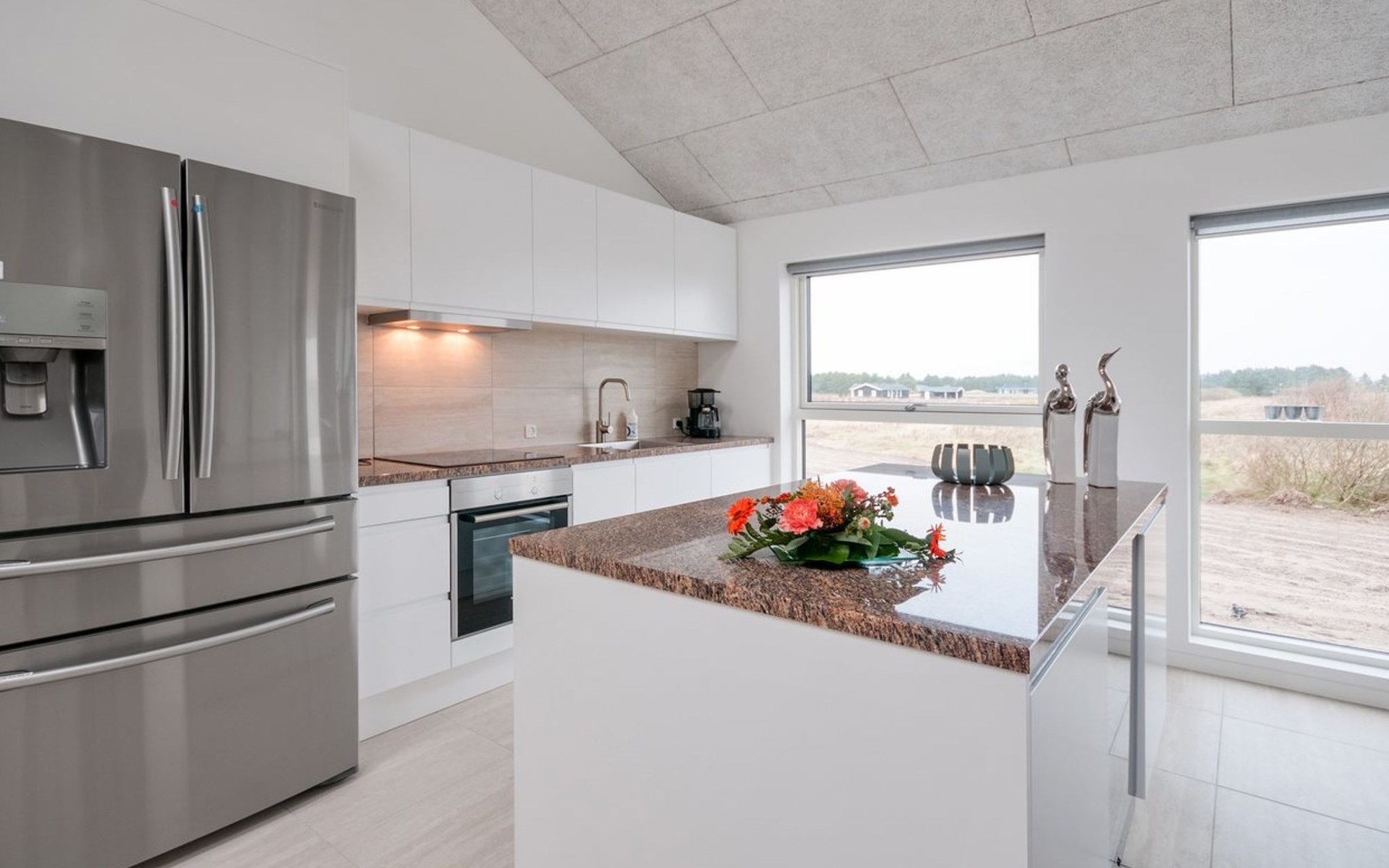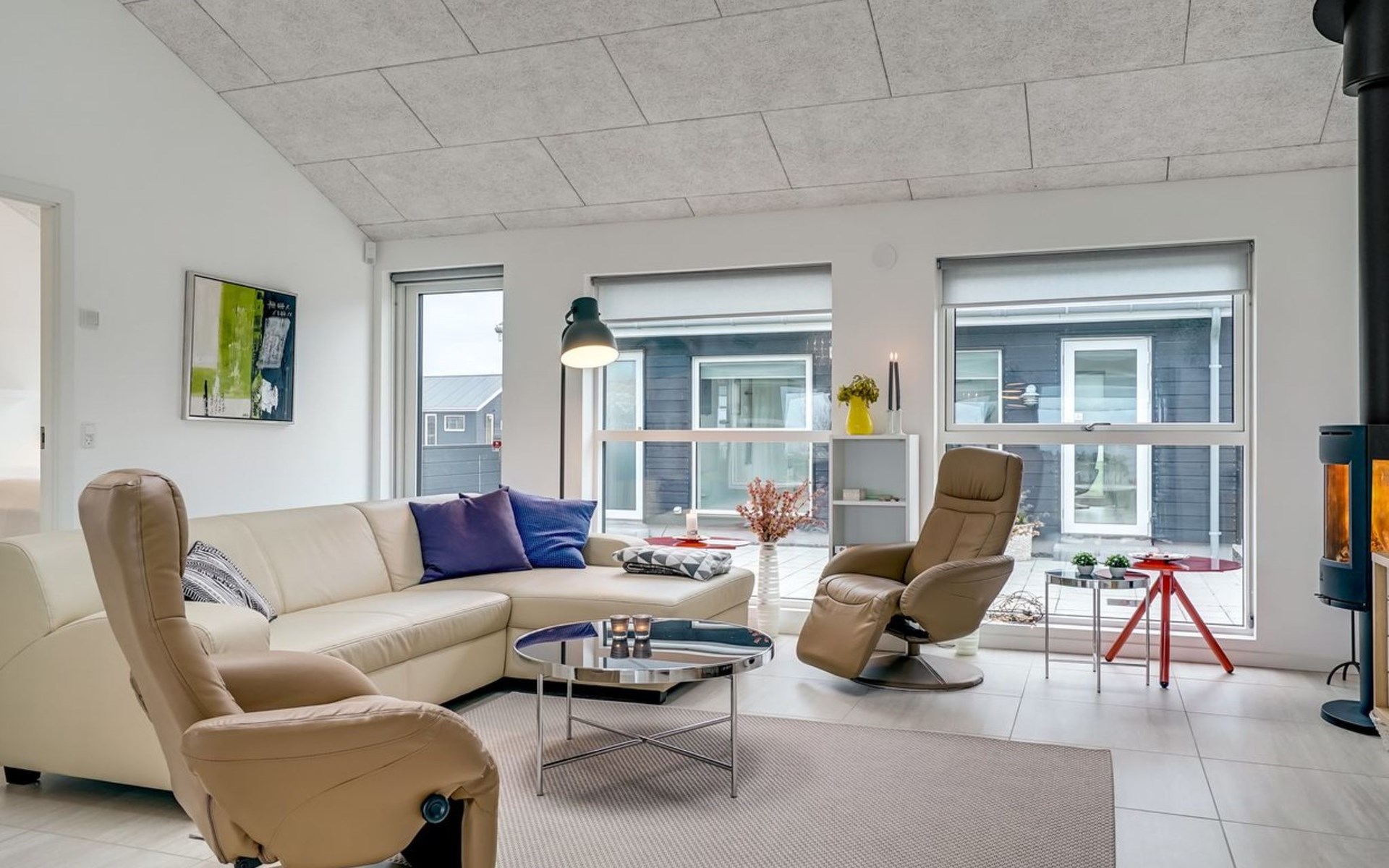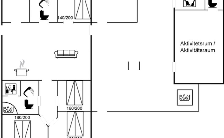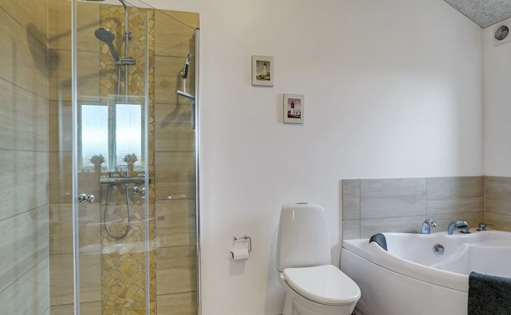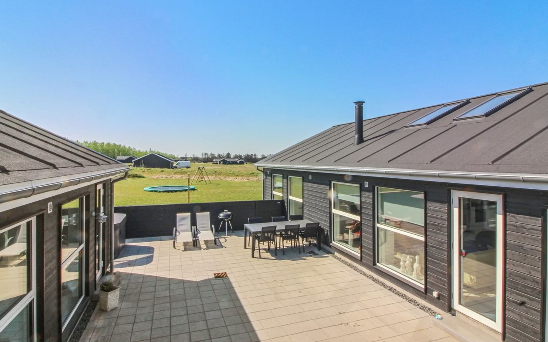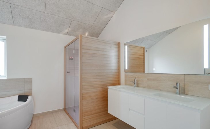 Eengezinswoning, bouwjaar 2017. 1.5 km van zee. Voor alleengebruik: wild terrein 2.128 m2. Terras (70 m2), kinderspeelplaats (schommel). In het huis: sauna, tafelvoetbal, trampoline, wasmachine, droger. Parkeerplaats bij het huis. Oplaadstation. Levensmiddelenwinkel 1.2 km. Golfterrein 5.5 km. De eigenaar accepteert geen jeugdgroepen.