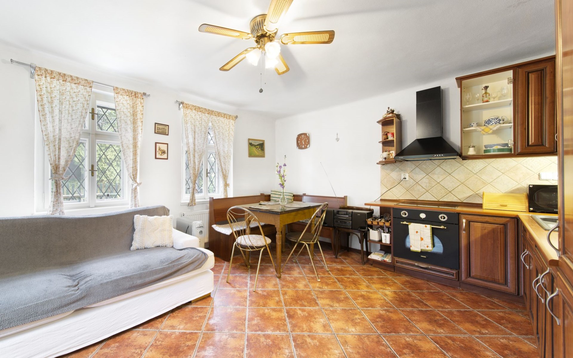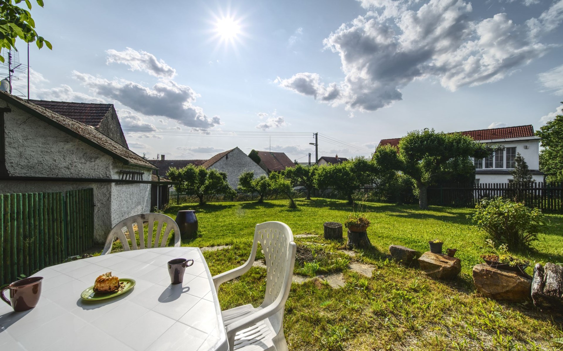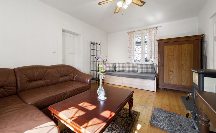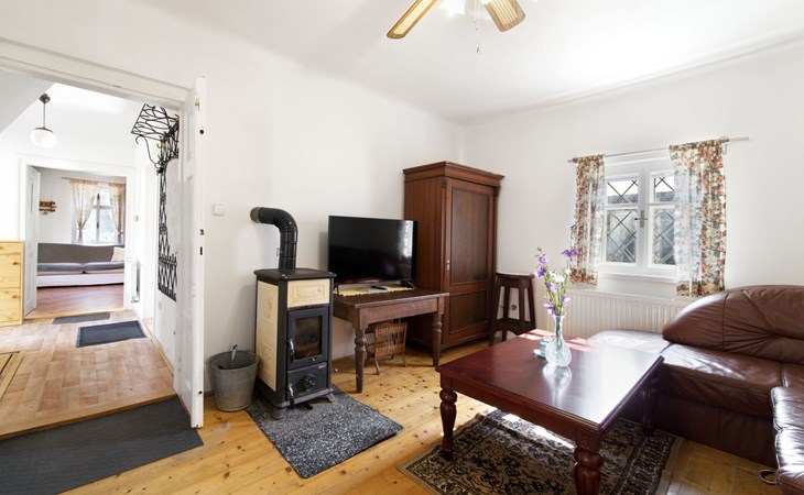 Praskolesy 12 km van Beroun: Kindvriendelijke, gezellige, rustieke eengezinswoning "Praskolesy", bouwjaar 1900. Rustige, zonnige ligging. Voor alleengebruik: tuin 726 m2 (omheind) met gazon en bomen. Barbecue. In het huis: centrale verwarming, wasmachine. Parkeerplaats (voor 2 auto's) bij het huis. Winkel 500 m, restaurant 1 km, bushalte "Praskolesy" 200 m, station 800 m, openluchtzwembad 4 km, overdekt zwembad 4 km. Tennis 1 km, tennishal 1 km. Attracties in de buurt: Zámek Hořovice 6 km, Hrad Žebrák-Točník 7 km, Zámek Zbiroh, Koněpruské jeskyně 17 km, Hrad Křivoklát, Hrad Karlštejn 29 km, Zámek Dobříš 23 km, Slapská přehrada 45 km. Het huis ligt op 20 minuten rijden van Praag. De witte gevel van de woning reflecteert de warmte goed. Er zijn grote plafondventilatoren in de belangrijkste kamers die voor frisse lucht zorgen.