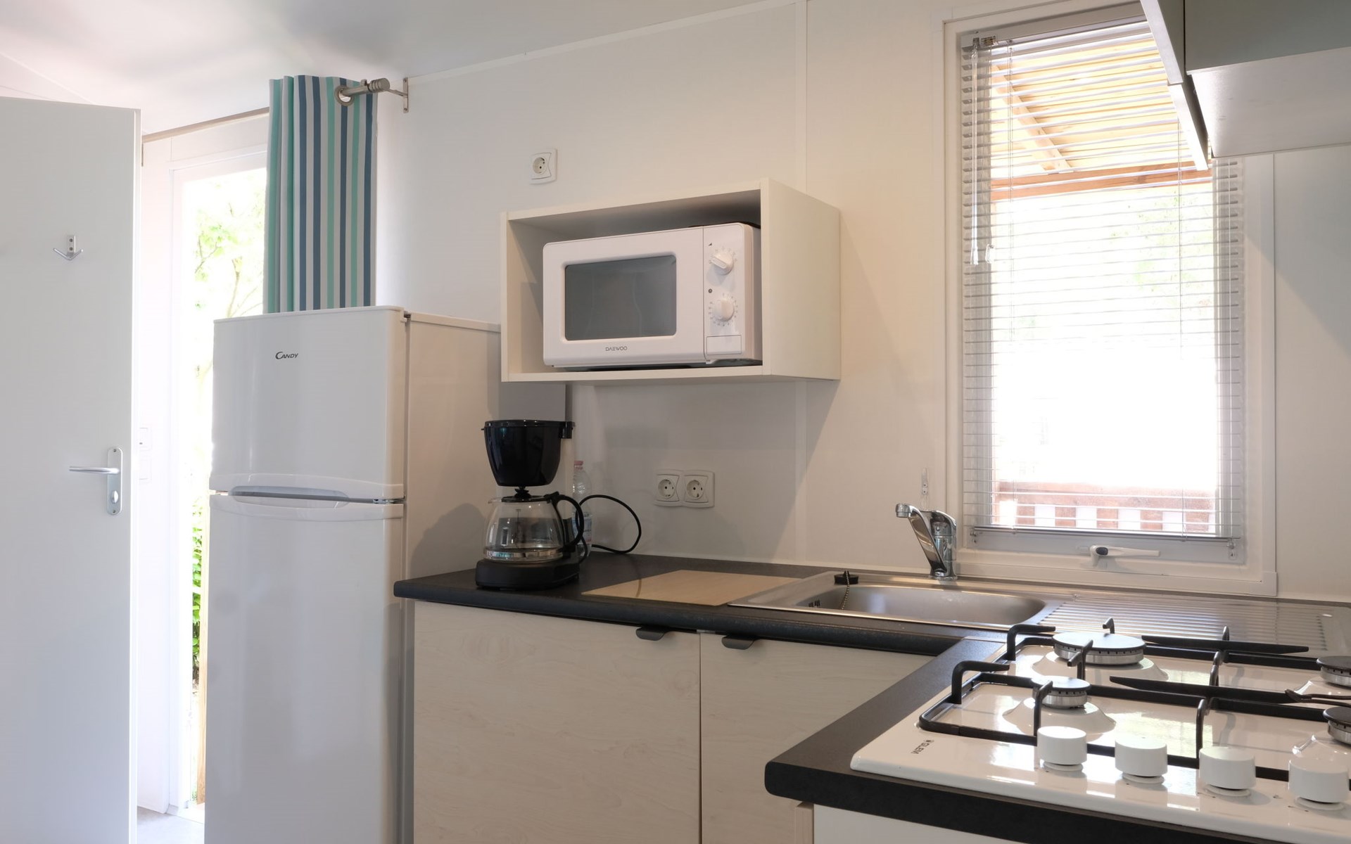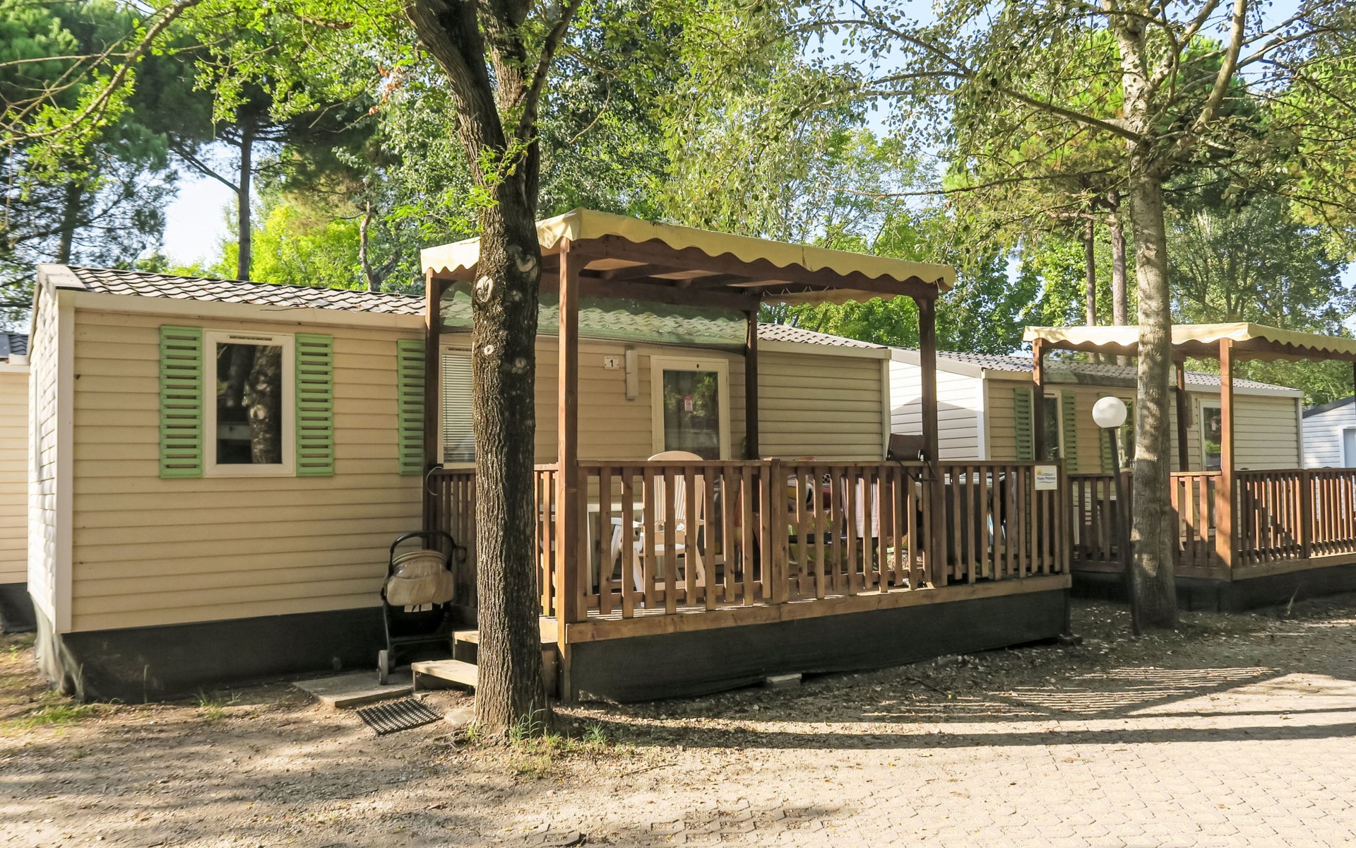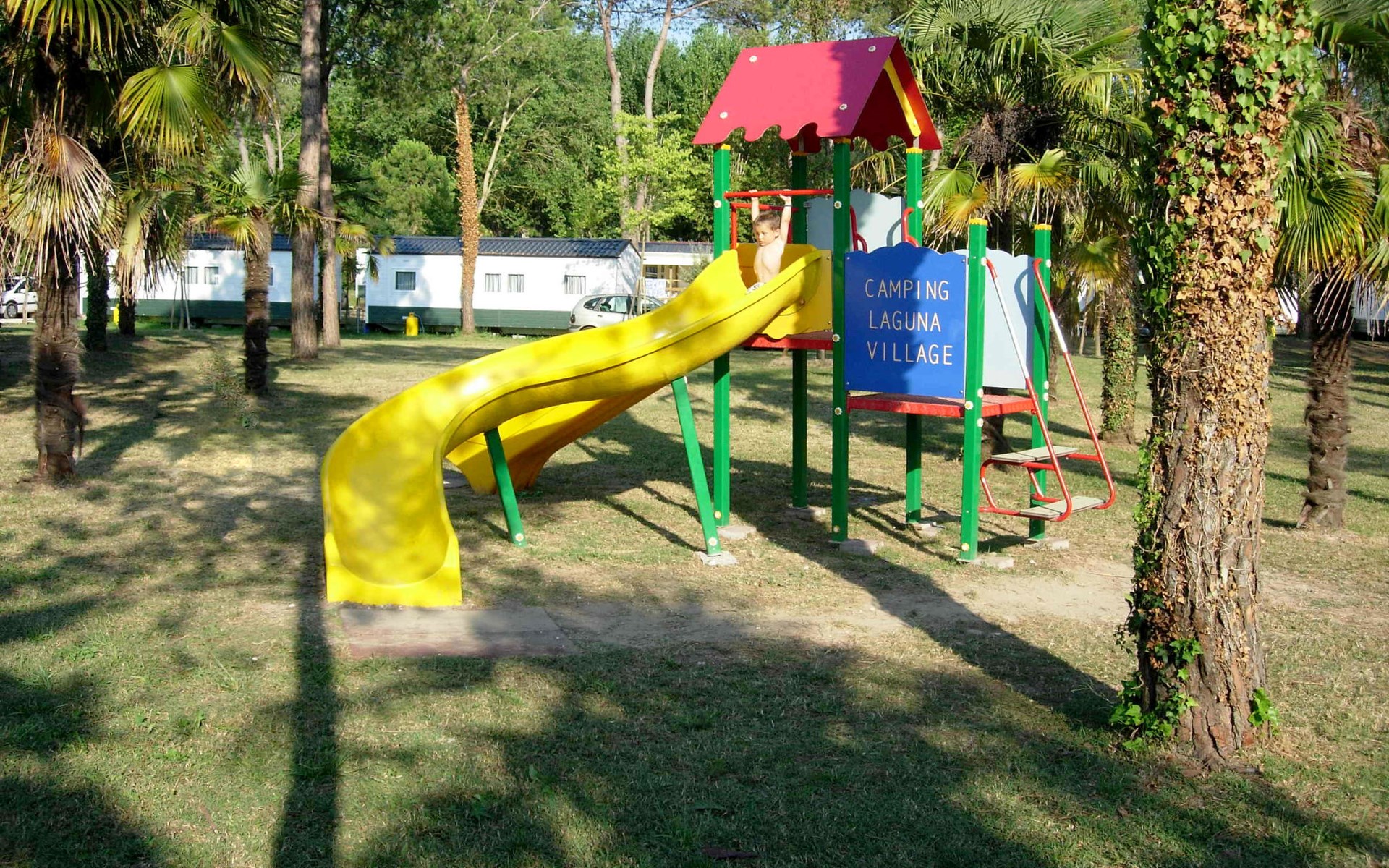 Groot, kindvriendelijk vakantiedorp "Camping Laguna Village". 2.5 km van het centrum van Caorle, 400 m van zee, directe toegang tot het strand. Voor medegebruik: terrein 10 ha (omheind), gazon en bomen, openluchtzwembad niervormig (seizoensgebonden beschikbaarheid: 17.Mei. - 21.Sep.). Kinderzwembad, glijbaan, tafeltennis, volleybal, beachvolleybal, kinderspeelplaats. In het complex: receptie, restaurant, Internet (WiFi) (extra). Winkel, wasmachine (voor medegebruik, extra), fietsverhuur. Parkeerplaats. Winkel 4.5 km, bushalte 300 m, treinstation "San Donà di Piave" 28 km, zandstrand 400 m. Attracties in de buurt: Venezia 75 km. Animatie in het hoogseizoen. De eigenaar accepteert geen jeugdgroepen.