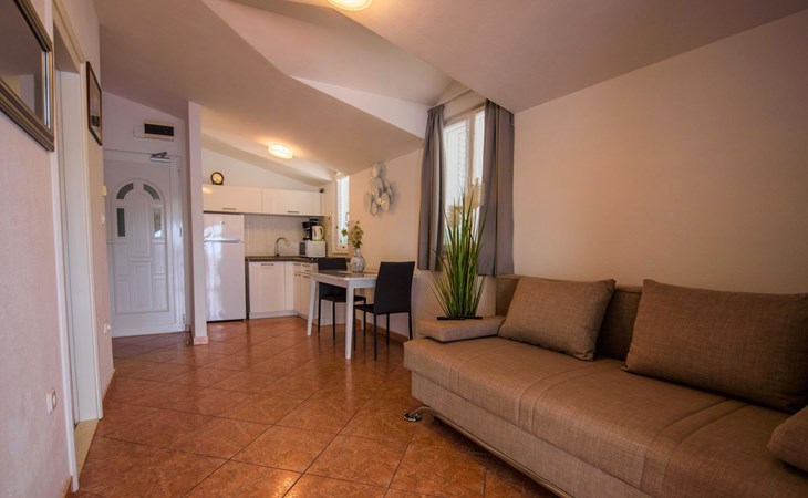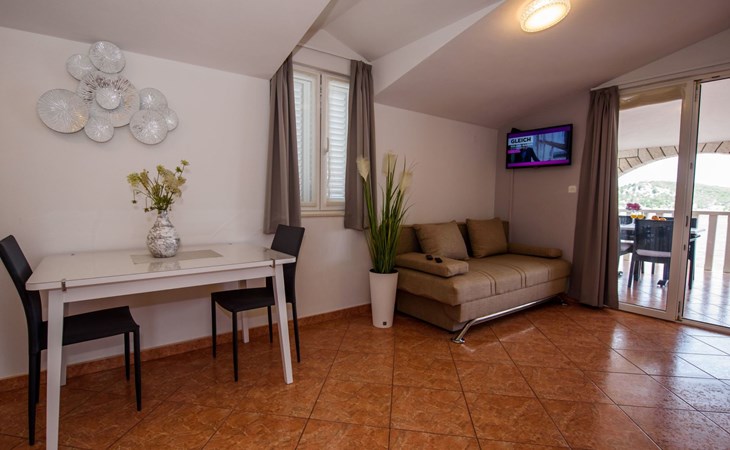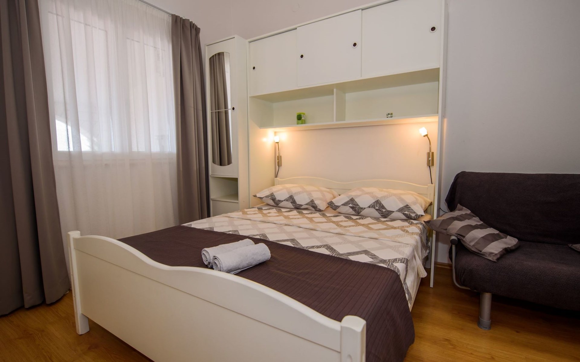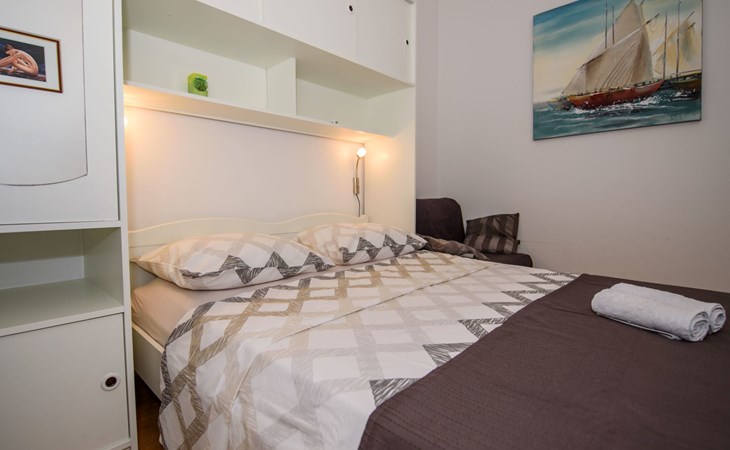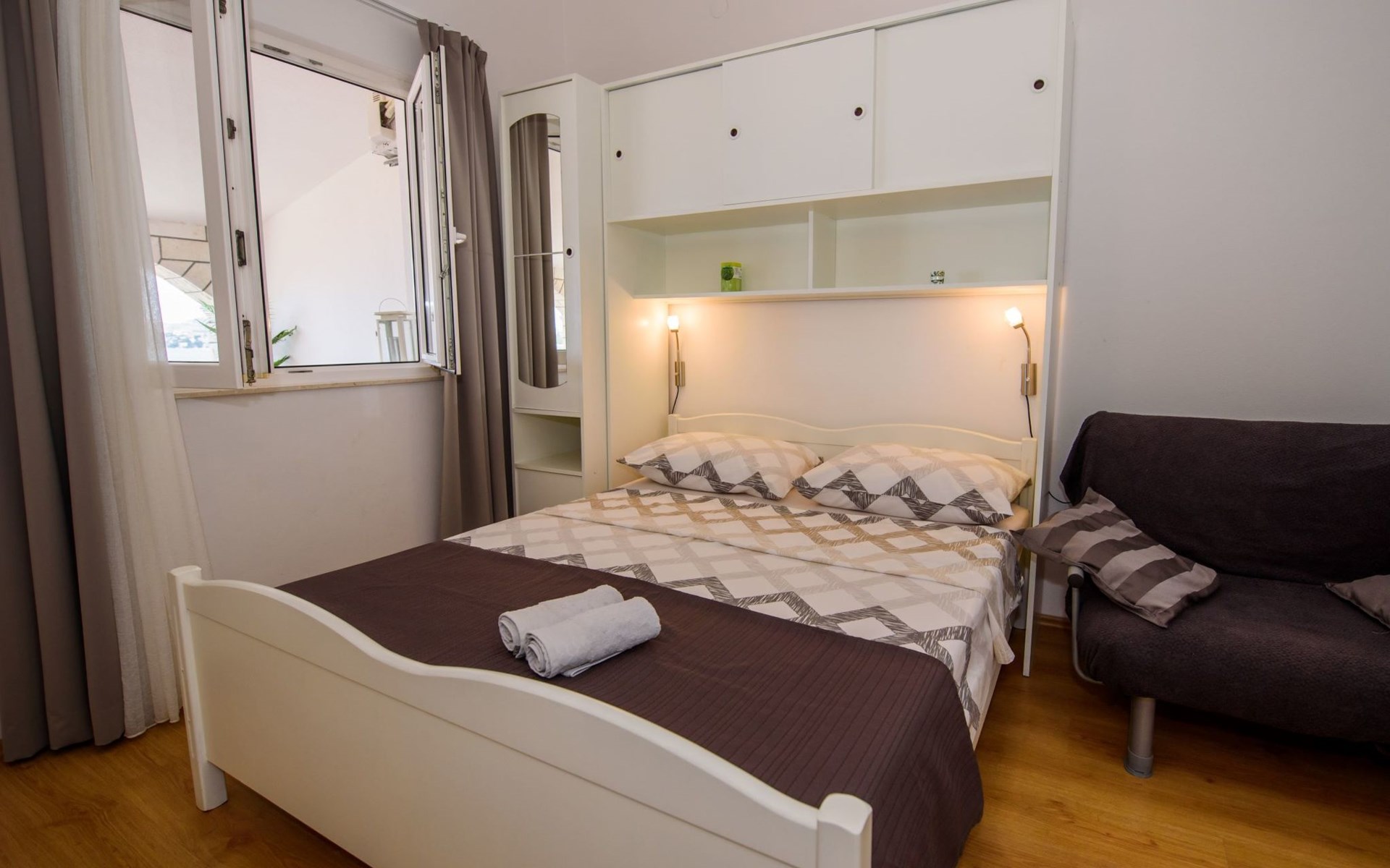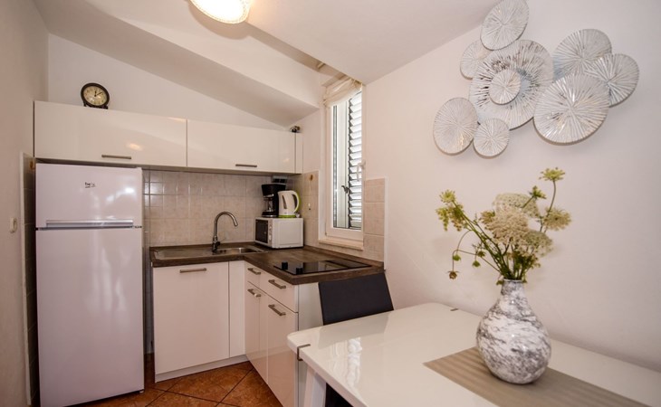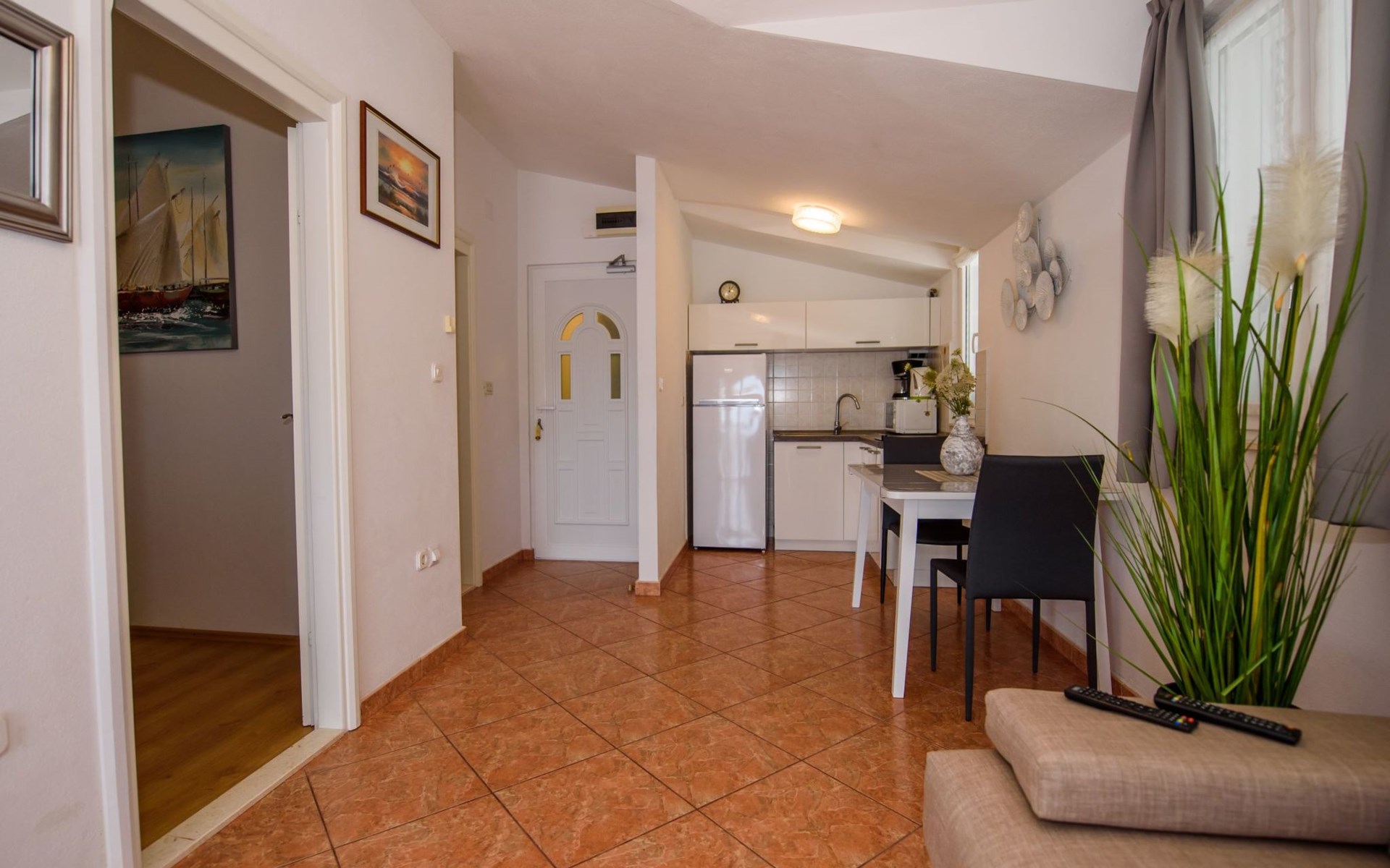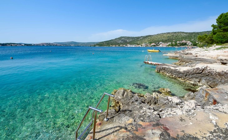 Razanj 10 km van Rogoznica: Mooi flatgebouw "Marina". In de wijk Ljoljinica, rustige, verhoogde ligging, 40 m van zee. Voor medegebruik: buitendouche, terras, tuinmeubelen, barbecue. In het huis: internetaansluiting. Overdekte parkeerplaats bij het huis op het terrein, gemeenschappelijke garage. Winkel, restaurant 200 m, bushalte 5.1 km, rotsstrand 40 m. Vergelijkbare accommodaties kunnen worden geboekt.