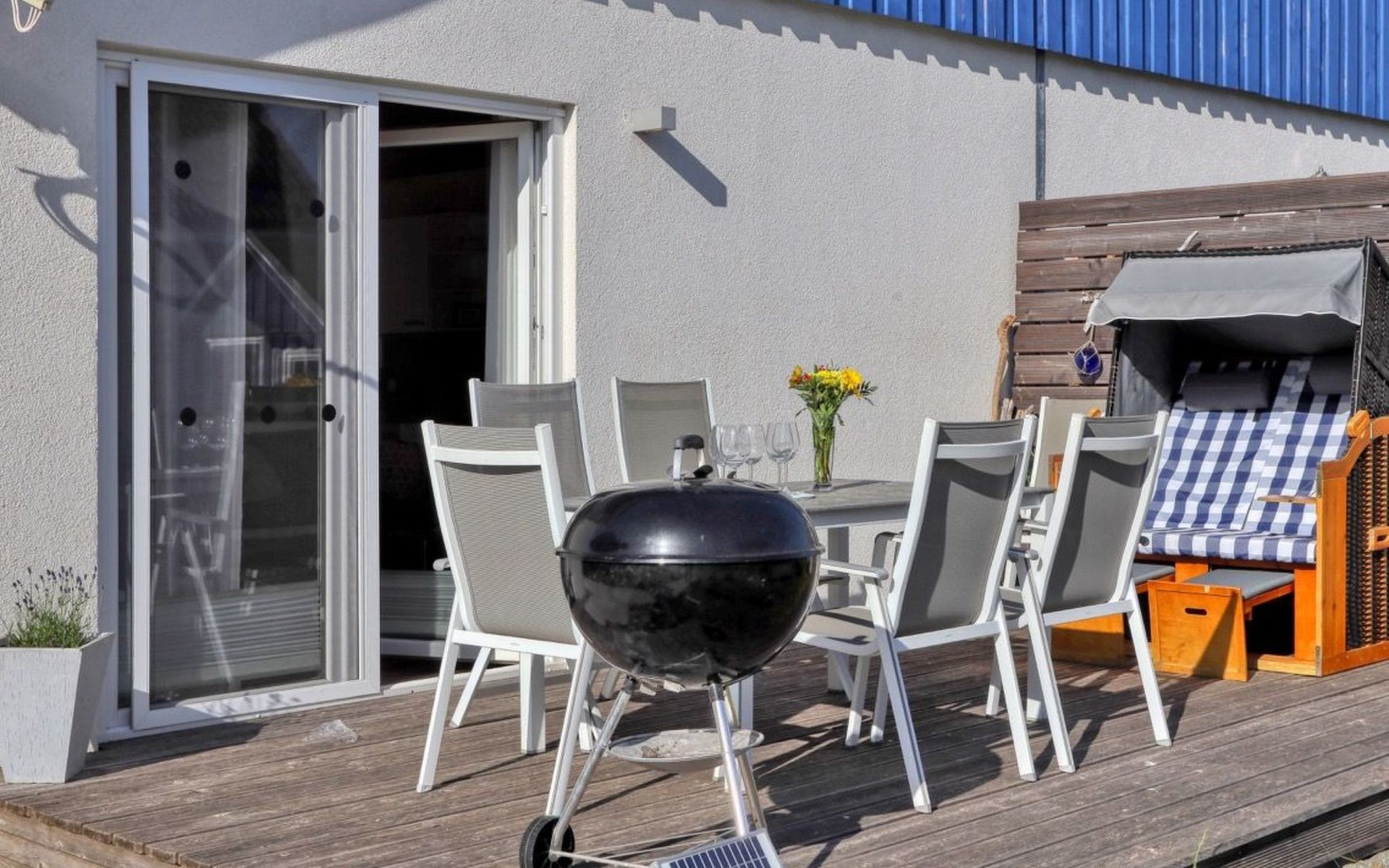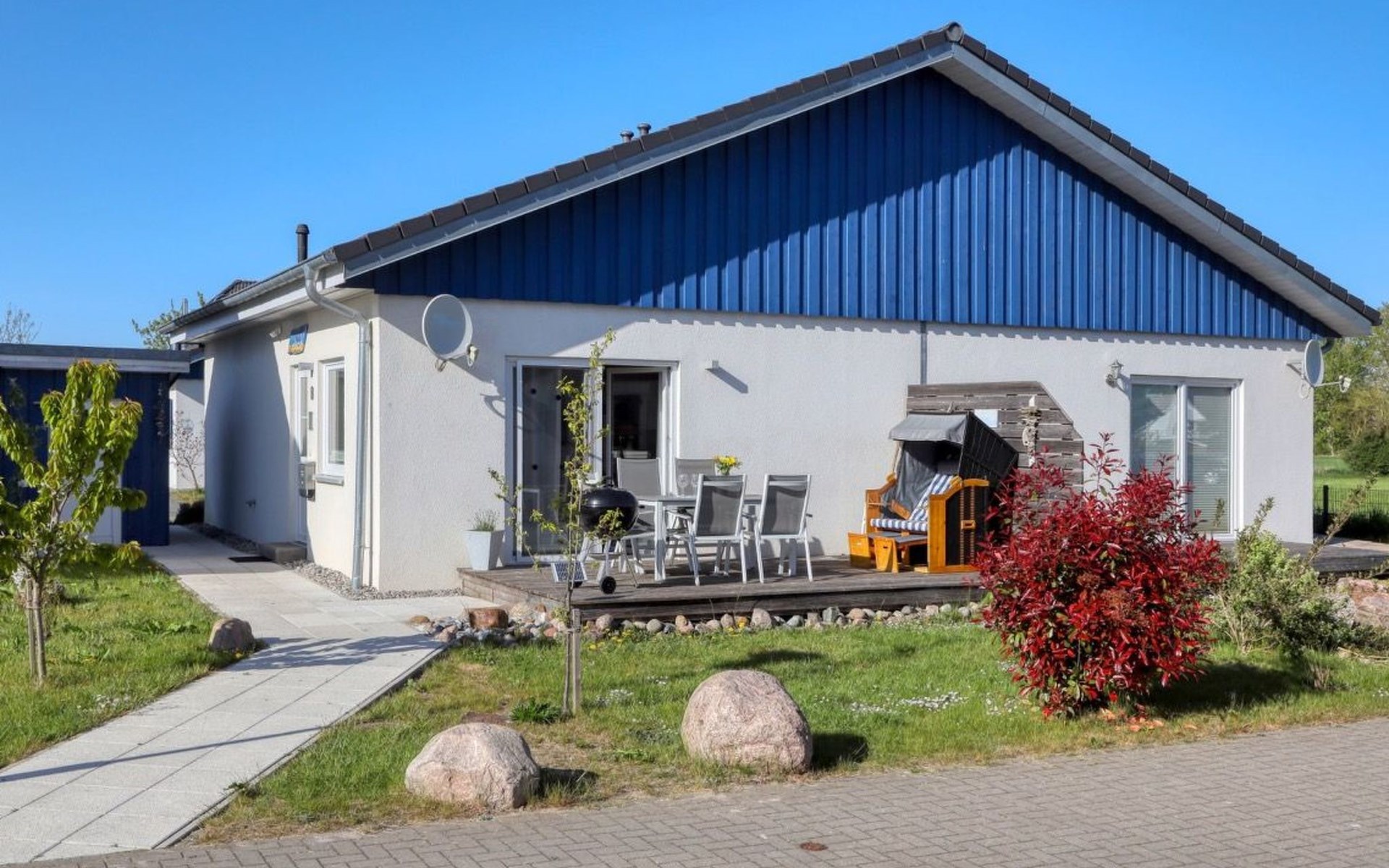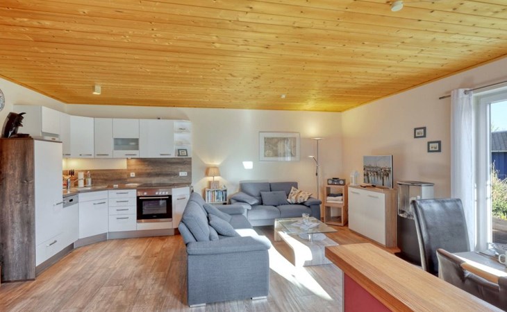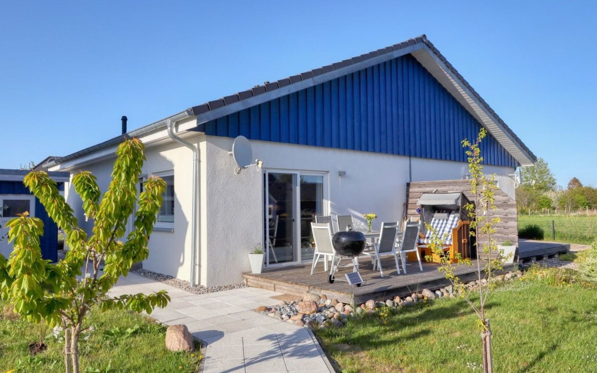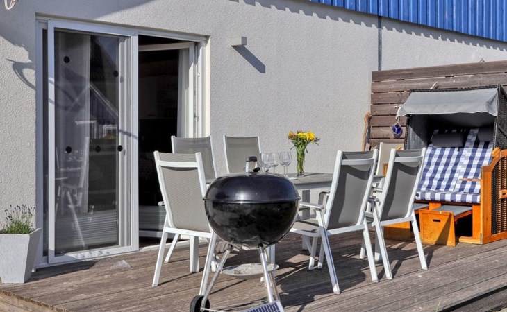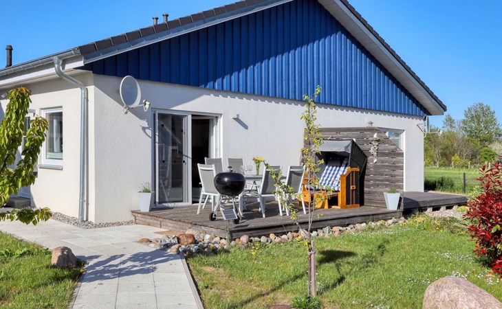Holiday home LA MERAltefähr on the sunny island of RügenOur holiday home LA MER, built in 2016, offers you the ideal place for an active and/or passive holiday. LA MER is part of the Sonnengarten holiday home park and our semi-detached house is 72 square metres in size and can accommodate six people. The house has a large living and dining area, two separate bedrooms, as well as a bedroom in the attic, bathroom with shower, sun terrace and is modern-functional and furnished with great attention to detail.Altefähr has always been the gateway to the island of Rügen and is located on the Strelasund opposite the time-honoured Hanseatic city of Stralsund. The panoramic view from Altefähr to Stralsund alone is worth the trip.Altefähr is a small, quiet, idyllic and tranquil place that invites you to relax.The child-friendly bathing beach with playground and plenty of space for digging is just a five-minute walk from the holiday home.You can watch boats at the harbour or set sail yourself. Anglers can pursue their hobby all year round, but other major sporting events (e.g. the Sundschwimmen, Rügenbrückenlauf, etc.) also invite you to take part or watch.Altefähr is the ideal starting point for swimming, fishing, surfing, hiking, cycling (the holiday home is located directly on the Rügen circular route / Baltic Sea coast cycle path), boating or boat trips.three bicycles are available to guests free of charge. You can store your bikes safely in the lockable shed. For smaller repairs there is a tool / repair kit and an air pump available.Various offers such as the forest climbing ropes course a few minutes walk from the house, or the Ozeanum and the maritime museum in Stralsund, etc. offer plenty of variety for your stay.We wish you a nice and relaxing stay.short descriptionOther : Non-smoking houseShort description 1Number of kitchens : 1Other rooms : lockable shed (for bicycles or similar)Living room 1Other : kitchen 1Living room 1Other living room equipment : Stove is heated with bioethanolSurroundingsLeisure facilities : Boat rental, bicycle rentalSports facilities in the area : Fishing, canoeing, climbing, cycling, riding, sailing, surfingSurroundings 1Excursion possibilities : By ferry to Stralsund, Hiddensee, Ozeaneum StralsundLocation description : Small quiet, tranquil place in the countryside on the Strelasund opposite Stralsund. Bathing beach, boat hire, surf school at the harbour. Everything within walking distanceGarden and outdoor facilitiesGarden equipment : Garden furniture available, barbecue, gazeboServicesServices (possibly chargeable) : Bread roll service