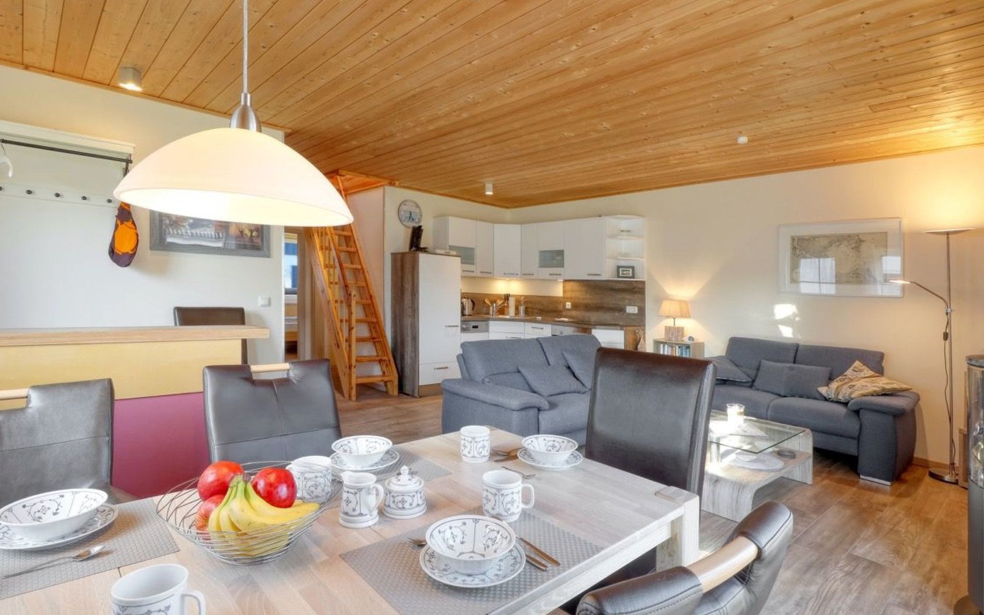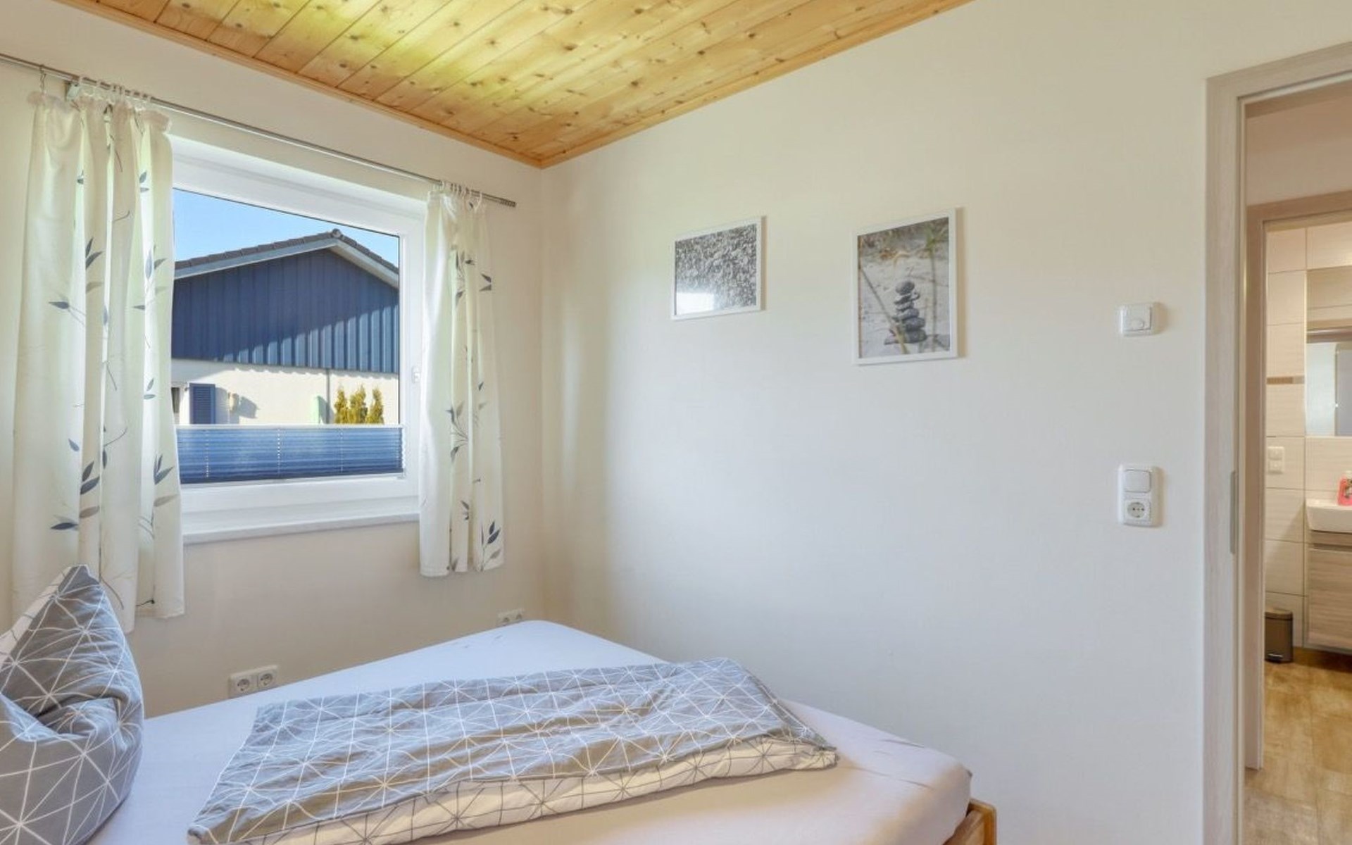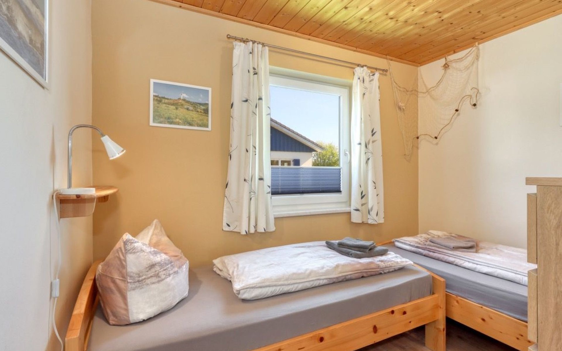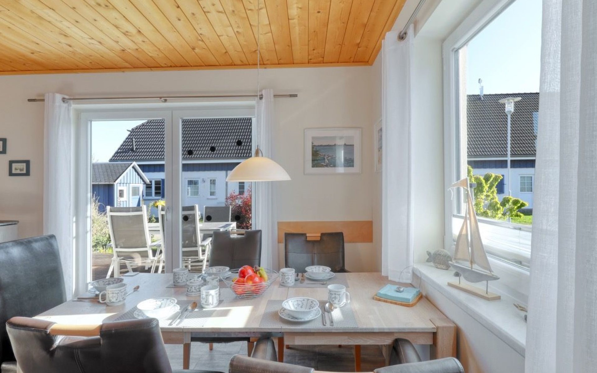 Holiday home LA MERAltefähr on the sunny island of RügenOur holiday home LA MER, built in 2016, offers you the ideal place for an active and/or passive holiday. LA MER is part of the Sonnengarten holiday home park and our semi-detached house is 72 square metres in size and can accommodate six people. The house has a large living and dining area, two separate bedrooms, as well as a bedroom in the attic, bathroom with shower, sun terrace and is modern-functional and furnished with great attention to detail.Altefähr has always been the gateway to the island of Rügen and is located on the Strelasund opposite the time-honoured Hanseatic city of Stralsund. The panoramic view from Altefähr to Stralsund alone is worth the trip.Altefähr is a small, quiet, idyllic and tranquil place that invites you to relax.The child-friendly bathing beach with playground and plenty of space for digging is just a five-minute walk from the holiday home.You can watch boats at the harbour or set sail yourself. Anglers can pursue their hobby all year round, but other major sporting events (e.g. the Sundschwimmen, Rügenbrückenlauf, etc.) also invite you to take part or watch.Altefähr is the ideal starting point for swimming, fishing, surfing, hiking, cycling (the holiday home is located directly on the Rügen circular route / Baltic Sea coast cycle path), boating or boat trips.three bicycles are available to guests free of charge. You can store your bikes safely in the lockable shed. For smaller repairs there is a tool / repair kit and an air pump available.Various offers such as the forest climbing ropes course a few minutes walk from the house, or the Ozeanum and the maritime museum in Stralsund, etc. offer plenty of variety for your stay.We wish you a nice and relaxing stay.short descriptionOther : Non-smoking houseShort description 1Number of kitchens : 1Other rooms : lockable shed (for bicycles or similar)Living room 1Other : kitchen 1Living room 1Other living room equipment : Stove is heated with bioethanolSurroundingsLeisure facilities : Boat rental, bicycle rentalSports facilities in the area : Fishing, canoeing, climbing, cycling, riding, sailing, surfingSurroundings 1Excursion possibilities : By ferry to Stralsund, Hiddensee, Ozeaneum StralsundLocation description : Small quiet, tranquil place in the countryside on the Strelasund opposite Stralsund. Bathing beach, boat hire, surf school at the harbour. Everything within walking distanceGarden and outdoor facilitiesGarden equipment : Garden furniture available, barbecue, gazeboServicesServices (possibly chargeable) : Bread roll service