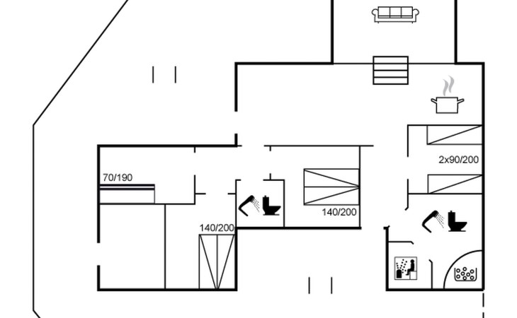 Eengezinswoning, bouwjaar 1995. 100 m van zee. Voor alleengebruik: wild terrein 1.250 m2. Terras (80 m2), barbecue. In het huis: sauna, wasmachine, droger. Parkeerplaats bij het huis. Oplaadstation. Levensmiddelenwinkel 50 m. De eigenaar accepteert geen jeugdgroepen.
