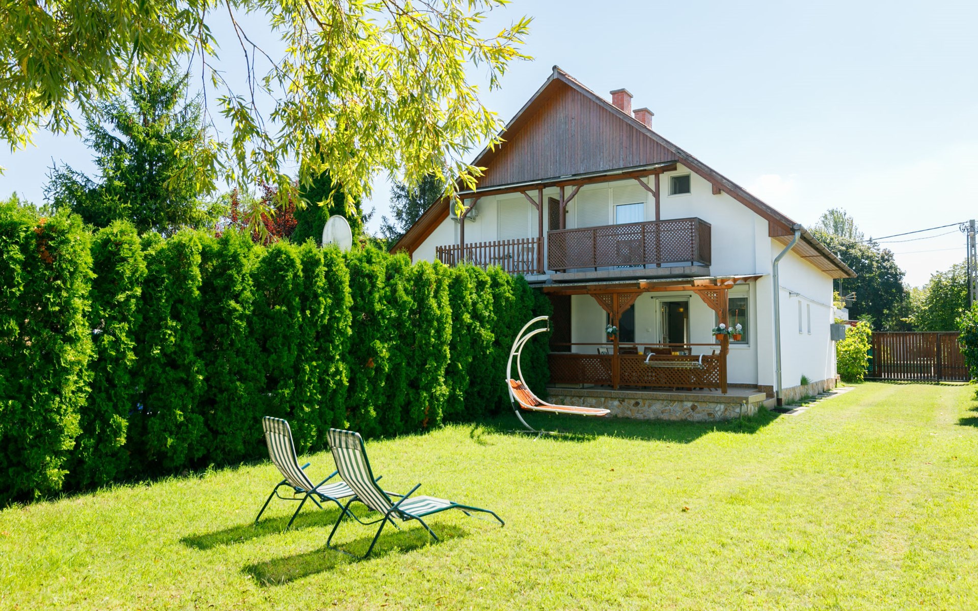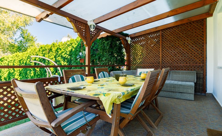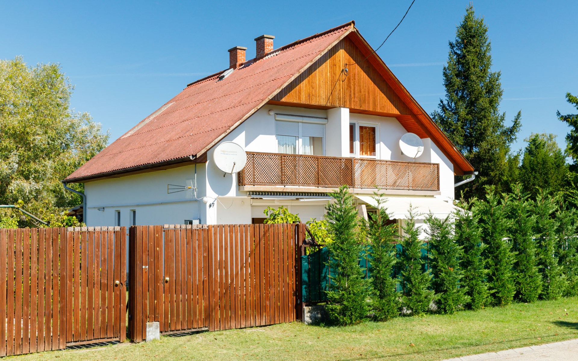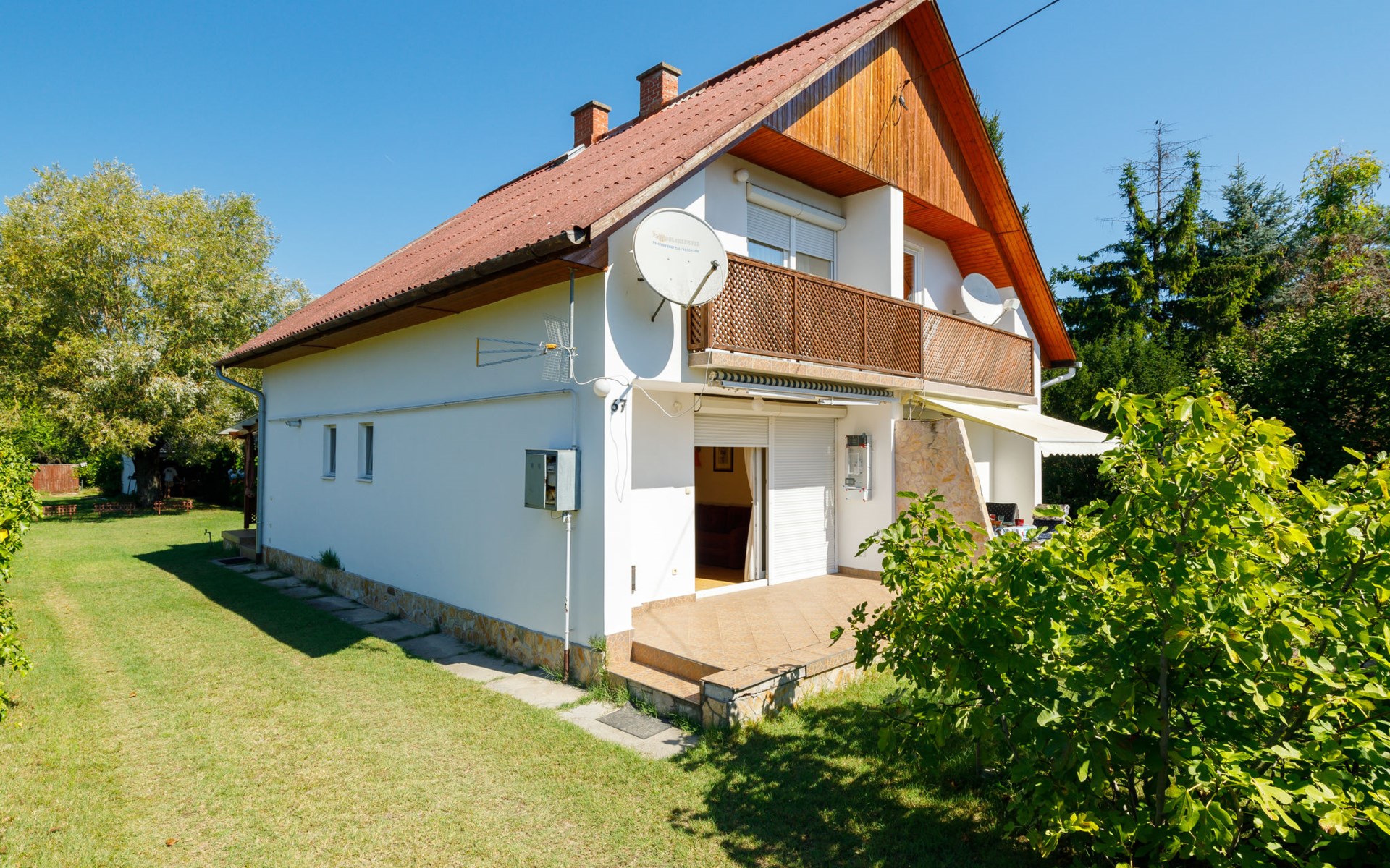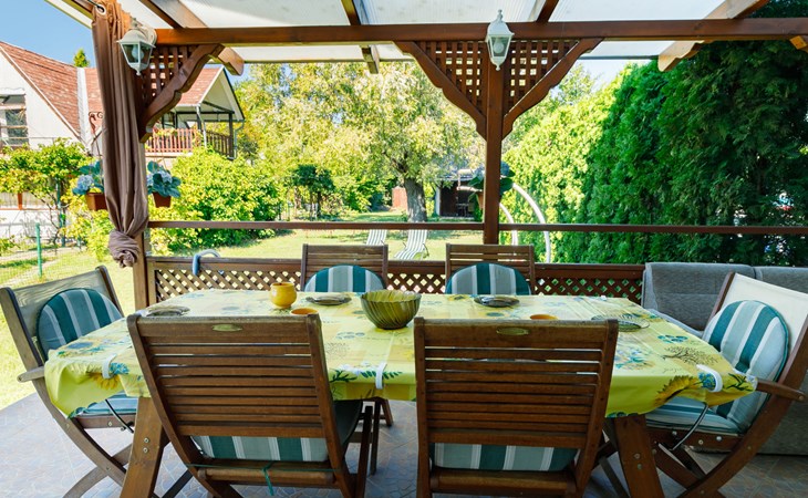 Zamárdi 12 km van Siófok: Mooi twee onder één kap woning "Aurora", bouwjaar 2007. Zonnige ligging, 200 m van het meer, 800 m van het strand. Voor alleengebruik: terrein 200 m2, ligweide. In het huis: wasmachine. Levensmiddelenwinkel, restaurant 150 m, grasstrand 200 m. Het objekt is geschikt voor 6 volwassenen + 1 kinderen. Spoorweg in de buurt.
