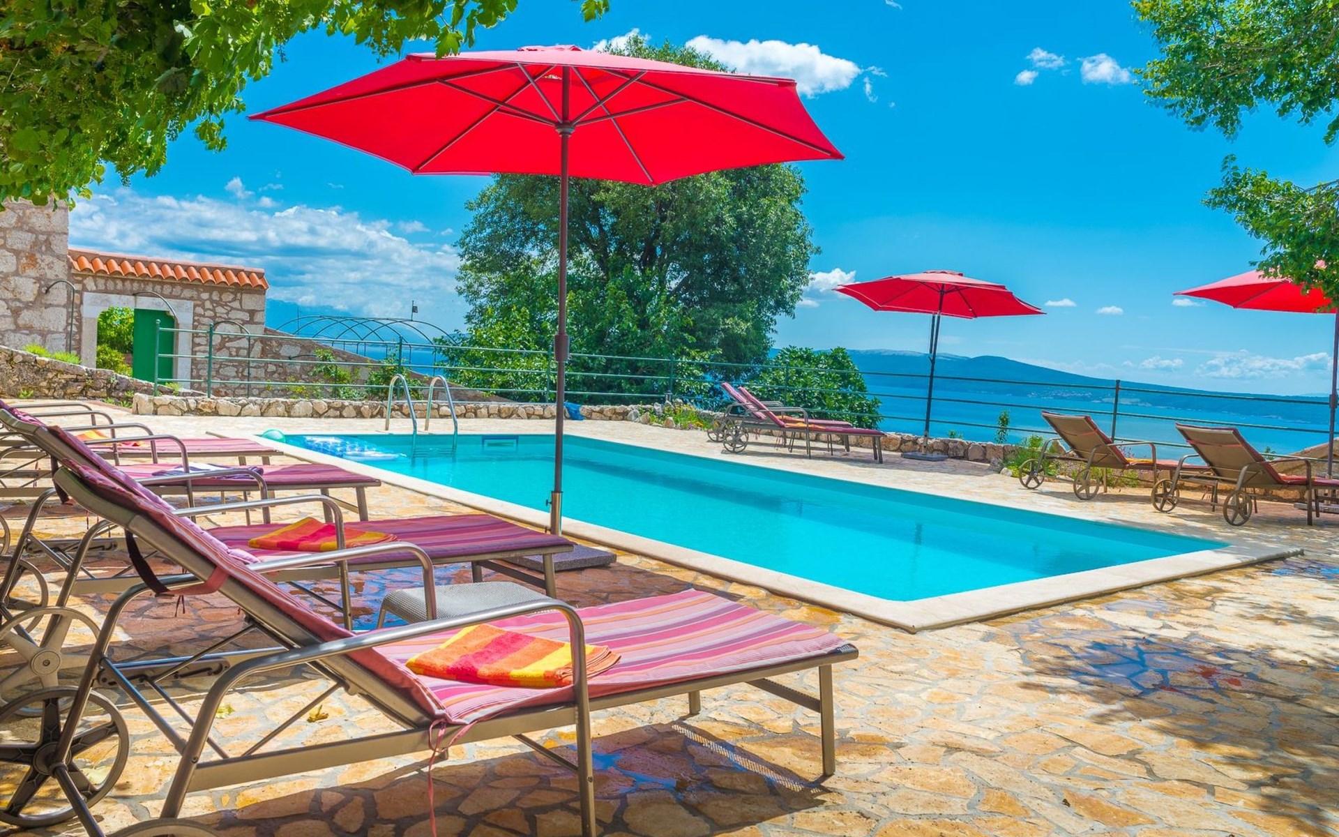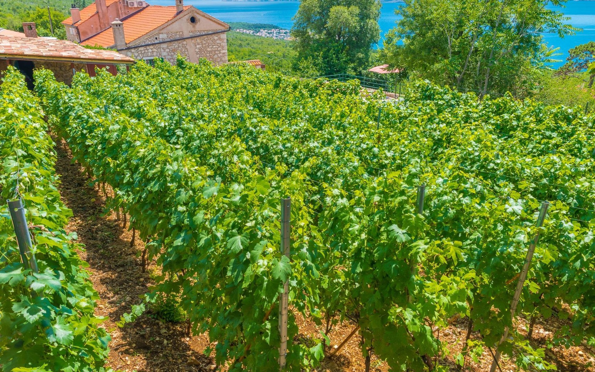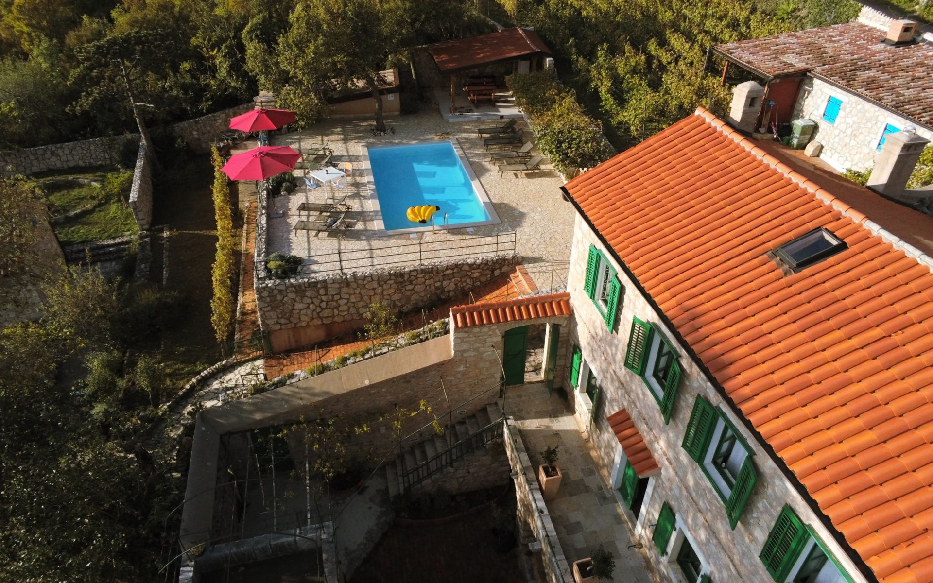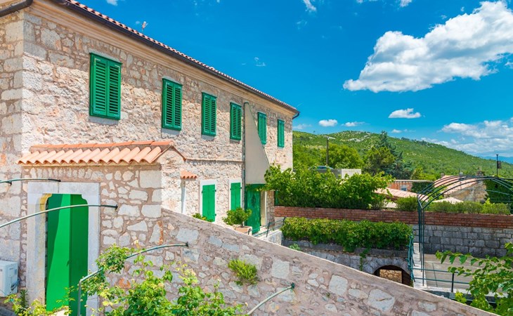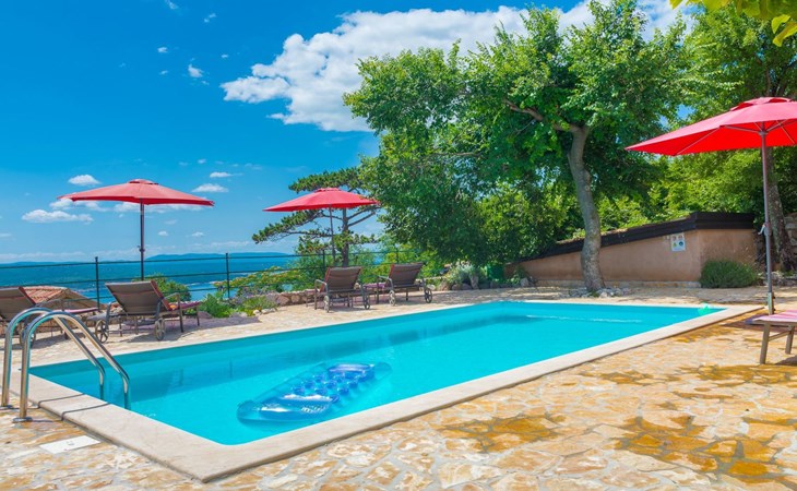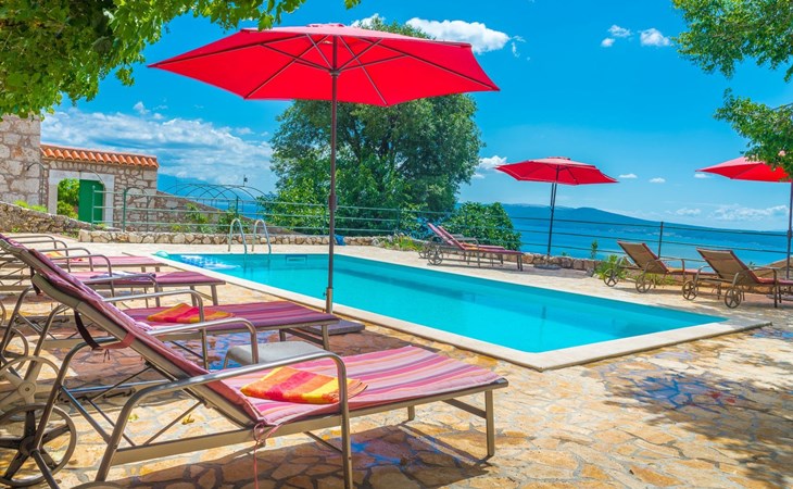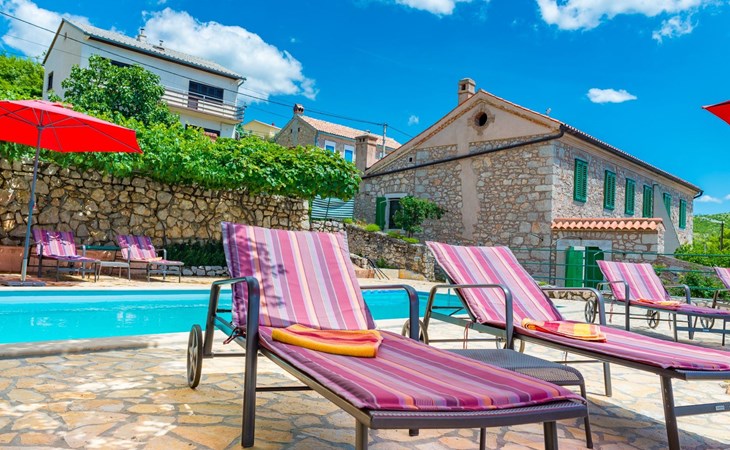 Maximaal 3 huisdieren/honden toegestaan. Discover the enchanting Villa Vesna, a beautifully renovated stone villa set over four levels, designed with privacy and space in mind for a group of friends seeking a relaxing yet adventurous holiday. Nestled in a late 19th century building that has been meticulously adapted to meet the standards of modern-day comfort while retaining its authentic old-world charm, this villa promises an unforgettable stay with its splendid Adriatic Sea views and unique character.Inside, Villa Vesna does not disappoint. Each of the four bedrooms boasts an en-suite shower, attractive paintings, colorful fabrics against white walls, wooden floors, and breathtaking views of the Adriatic Sea, ensuring every stay is both comfortable and picturesque. The villa's thoughtful layout includes two double bedrooms on the ground floor and two on the upper floor, all designed to provide guests with the utmost privacy and comfort. A traditional style lounge sits on an intermediate floor, offering a cool retreat in the summer and a cozy spot by the fireplace in winter, complemented by a spacious kitchen that leads out to a large covered outdoor eating area complete with BBQ facilities.The villa's exterior is equally impressive, featuring a private pool and a mediterranean garden on the side, perfect for relaxation and enjoying the long summer evenings. The property's renovation emphasized authenticity, integrating a vineyard and olive grove planted in 2008 and a variety of shrubs and herbs in the gardens for guests to enjoy. Privacy is guaranteed, even when the two neighboring villas - Villa Vesna and Villa Milka - are rented together for larger groups up to 12 people, with each boasting its own private pools and gardens.Surrounded by the lush landscapes and the panoramic views on the Island Krk, Villa Vesna is ideally placed for both relaxation and exploration. The property's position allows easy access to the local vineyards, olive groves, and the serene beauty of the Adriatic coast, inviting guests to immerse themselves in the region's natural splendor and rich cultural heritage.Villa Vesna offers the perfect escape for those seeking a blend of luxury, tradition, and natural beauty. With its carefully curated interiors, breathtaking surroundings, and picturesque setting, this villa guarantees an experience that is both exceptionally comfortable and genuinely memorable. Let Villa Vesna be your next adventure, where endless relaxation and new discoveries await.