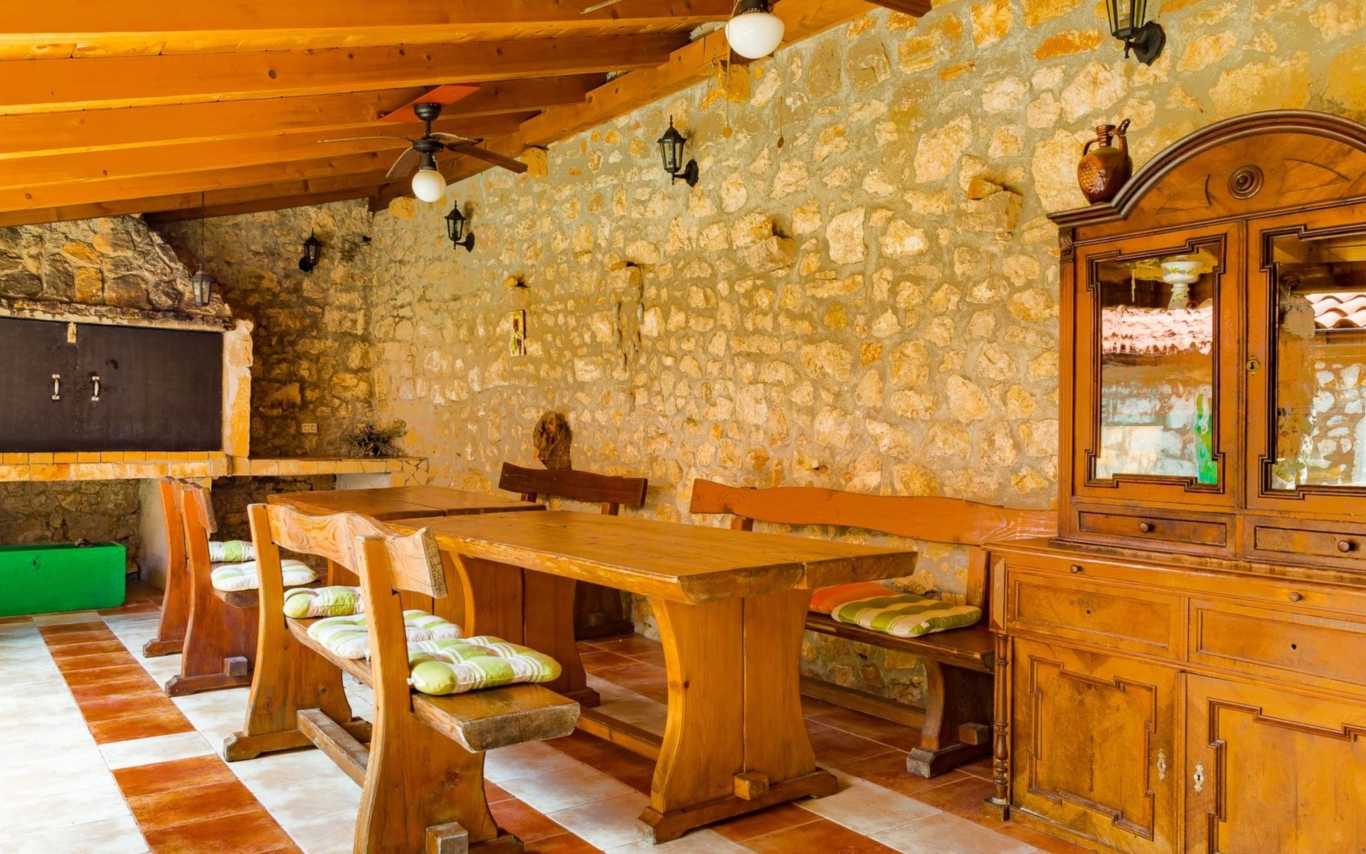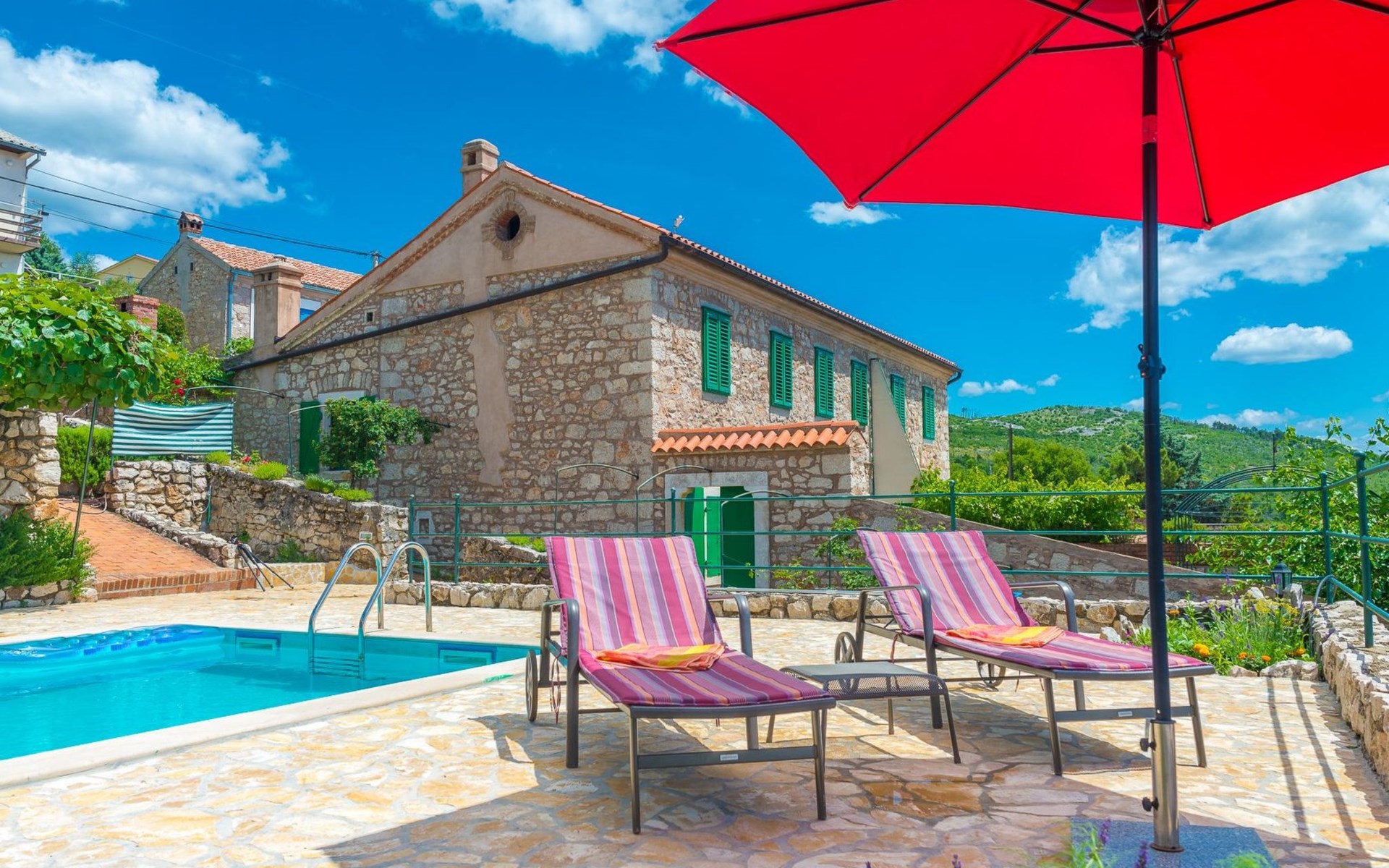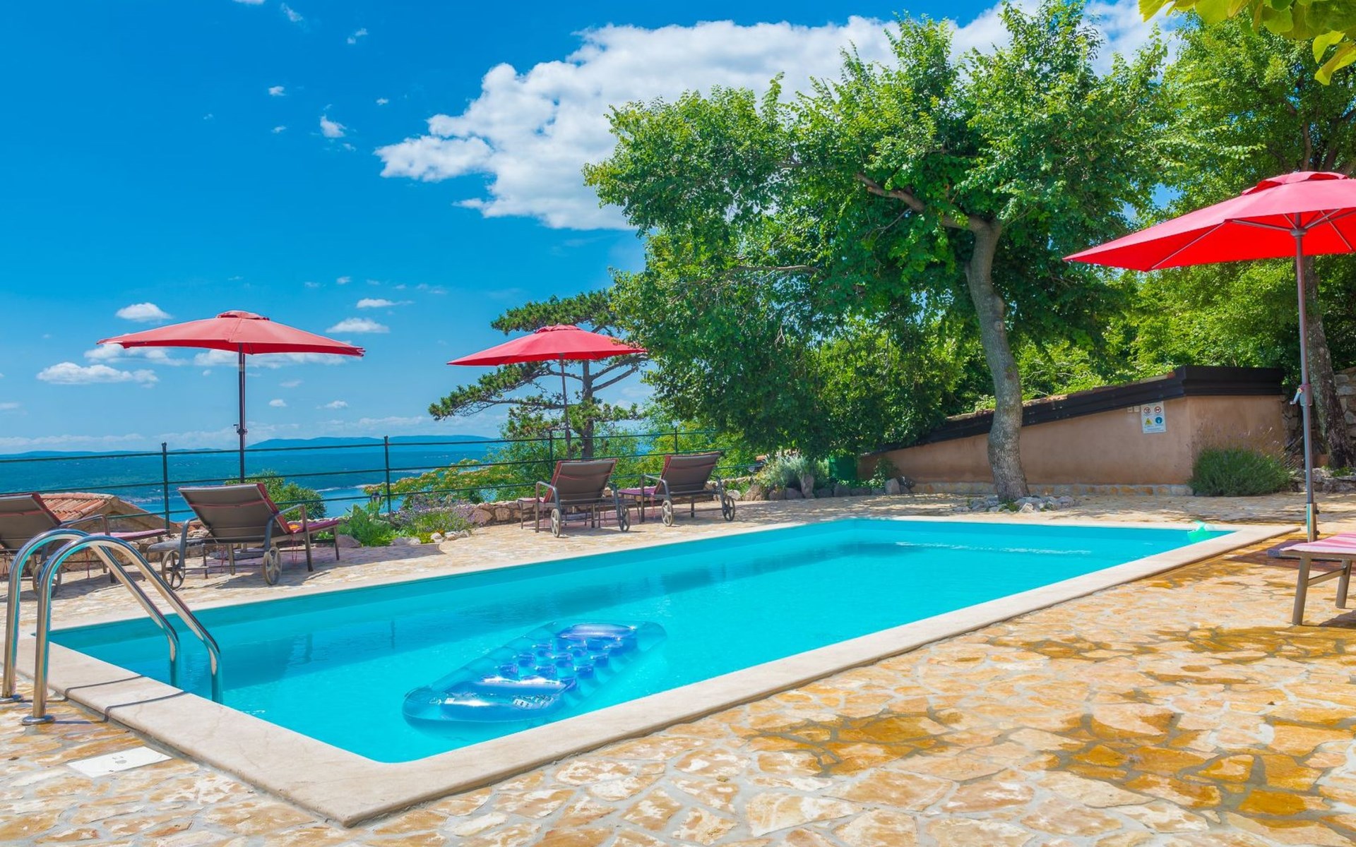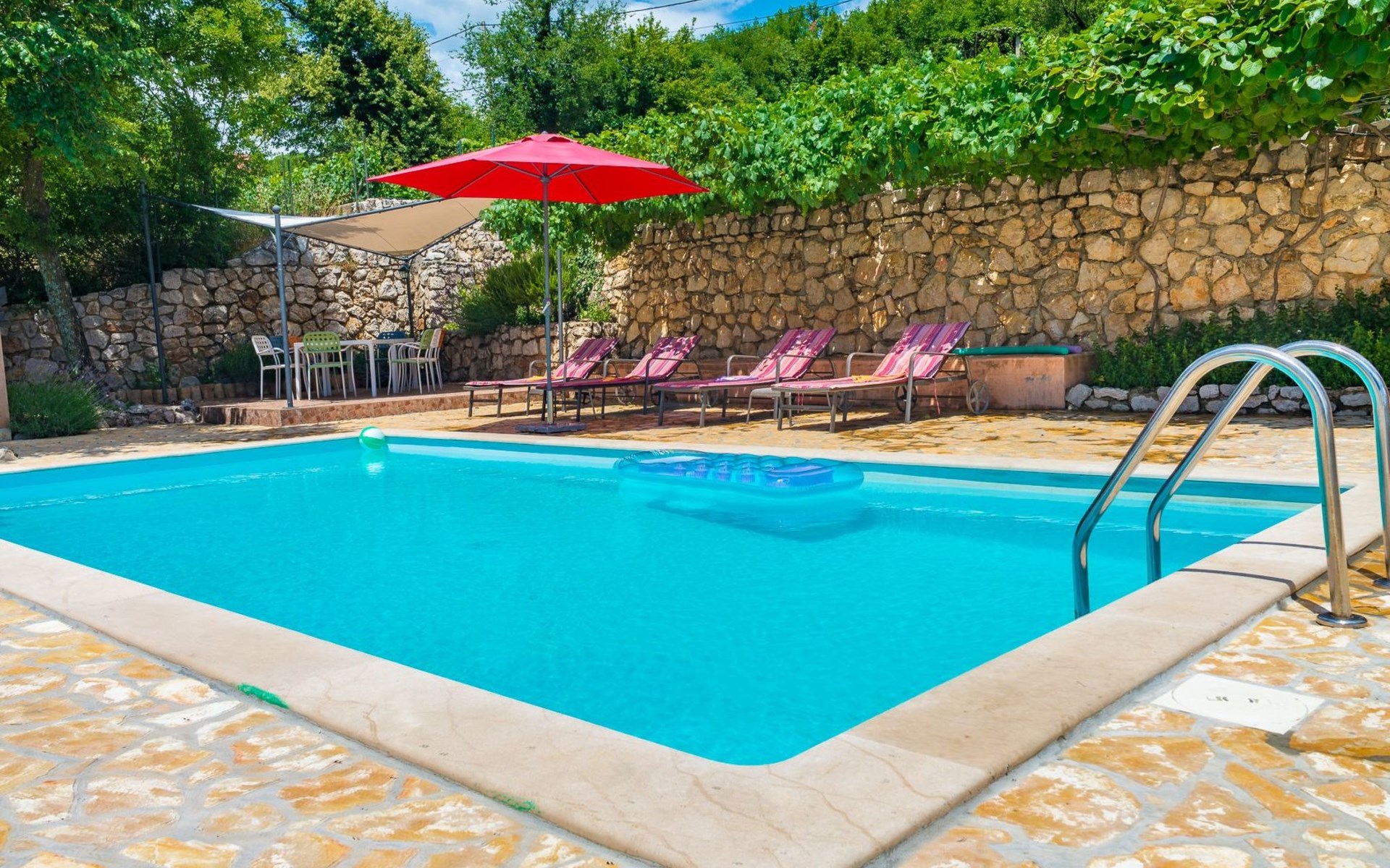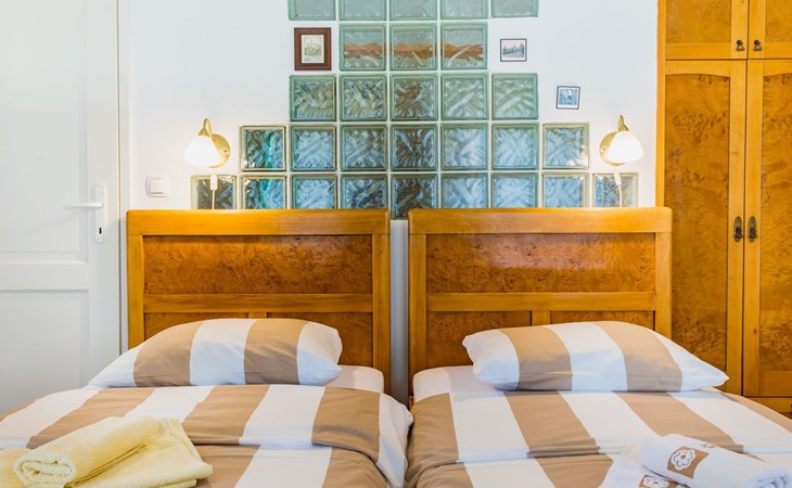 Maximaal 3 huisdieren/honden toegestaan. Discover the enchanting Villa Vesna, a beautifully renovated stone villa set over four levels, designed with privacy and space in mind for a group of friends seeking a relaxing yet adventurous holiday. Nestled in a late 19th century building that has been meticulously adapted to meet the standards of modern-day comfort while retaining its authentic old-world charm, this villa promises an unforgettable stay with its splendid Adriatic Sea views and unique character.Inside, Villa Vesna does not disappoint. Each of the four bedrooms boasts an en-suite shower, attractive paintings, colorful fabrics against white walls, wooden floors, and breathtaking views of the Adriatic Sea, ensuring every stay is both comfortable and picturesque. The villa's thoughtful layout includes two double bedrooms on the ground floor and two on the upper floor, all designed to provide guests with the utmost privacy and comfort. A traditional style lounge sits on an intermediate floor, offering a cool retreat in the summer and a cozy spot by the fireplace in winter, complemented by a spacious kitchen that leads out to a large covered outdoor eating area complete with BBQ facilities.The villa's exterior is equally impressive, featuring a private pool and a mediterranean garden on the side, perfect for relaxation and enjoying the long summer evenings. The property's renovation emphasized authenticity, integrating a vineyard and olive grove planted in 2008 and a variety of shrubs and herbs in the gardens for guests to enjoy. Privacy is guaranteed, even when the two neighboring villas - Villa Vesna and Villa Milka - are rented together for larger groups up to 12 people, with each boasting its own private pools and gardens.Surrounded by the lush landscapes and the panoramic views on the Island Krk, Villa Vesna is ideally placed for both relaxation and exploration. The property's position allows easy access to the local vineyards, olive groves, and the serene beauty of the Adriatic coast, inviting guests to immerse themselves in the region's natural splendor and rich cultural heritage.Villa Vesna offers the perfect escape for those seeking a blend of luxury, tradition, and natural beauty. With its carefully curated interiors, breathtaking surroundings, and picturesque setting, this villa guarantees an experience that is both exceptionally comfortable and genuinely memorable. Let Villa Vesna be your next adventure, where endless relaxation and new discoveries await.