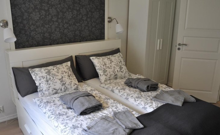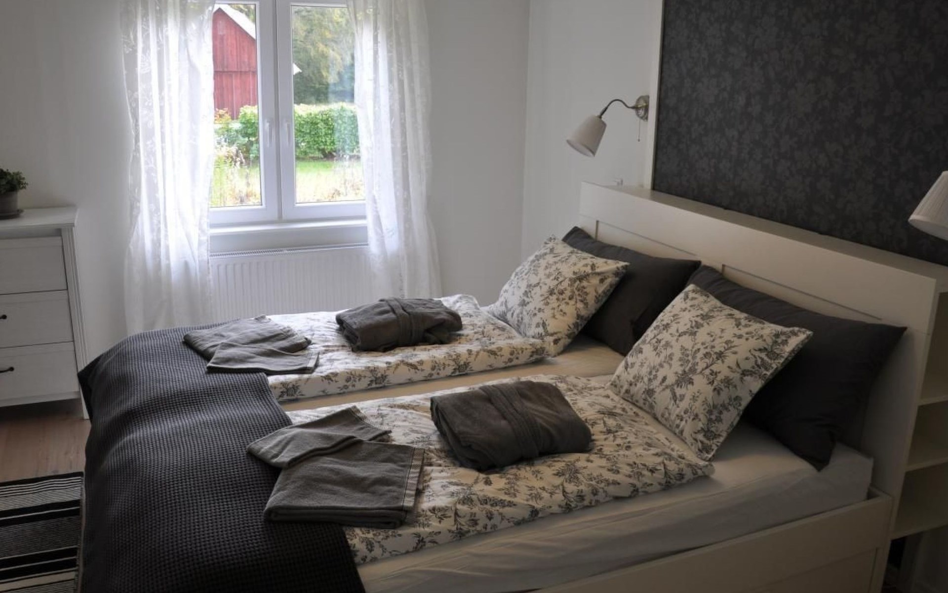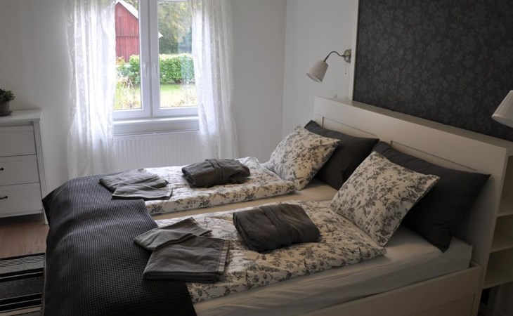 Maximaal 2 huisdieren/honden toegestaan. Newly renovated studio for rent in an original 18th century Swedish house. This apartment on 50sqm has a bedroom with double bed, flat screen TV, free Wifi, living room / dining room with dining table for four people and a daybed, small kitchen (4 - ring ceramic hob, extractor fan, sink, fridge freezer), bathroom with walk-in shower and a patio with possibility to use the barbecue.Directly at the house starts one of many nature reserves. The lake Möckeln is only 800 meters away and is considered one of the best fishing waters with its 18 species of fish. Fishing cards or canoes can be organized.Escape everyday life and enjoy nature. Just 2km away is the birthplace of the famous botanist Carl von Linné with a museum and botanical garden. All are is a nature and culture reserv and have a restaurant.Short descriptionOther : Non-smoking houseShort description 1Number of kitchens : 1Other rooms : Garden furnituresLiving room 1Other living room features : Daybed, dining table with four chairs and a china cabinet.Bedroom 1Other bedroom furniture : Wardrobe, dresser, TV, luggage rack, bedside lamp and shelf.SurroundingNearby sports facilities : Bike tours, Canoeing, Cross-country skiing, Fishing, Football area, Golf course, Horse stalls (guests), Hunting facilities, Ice skating, Indoor riding arena, Mountainbiking, Riding possibilities, Rowing, Sport center, TennisSurrounding 1Excursion possibilities : Various nature reserves, lake Möckeln for fishing and boat / canoe ride as many other destinations in the immediate vicinity.Location description : Älmhult is only 6km away from us and has various shops, pharmacies, opticians and restaurants.Garden and outdoorGarden facilities : Garden furniture provided, GrillOn-site leisure facilities : SaunaService benefitsService facilities (may incur additional costs) : Breakfast, Cleaning service during your stay, Transfer service (airport etc).
