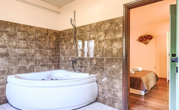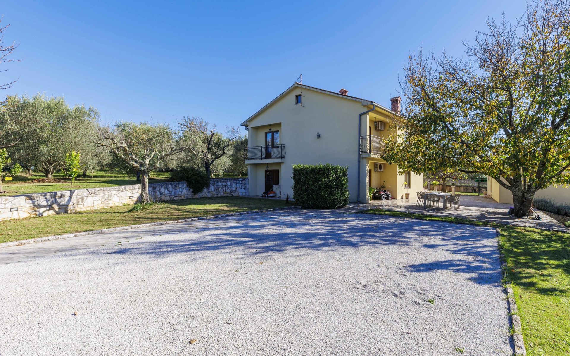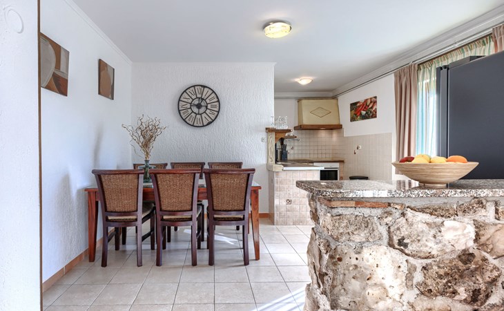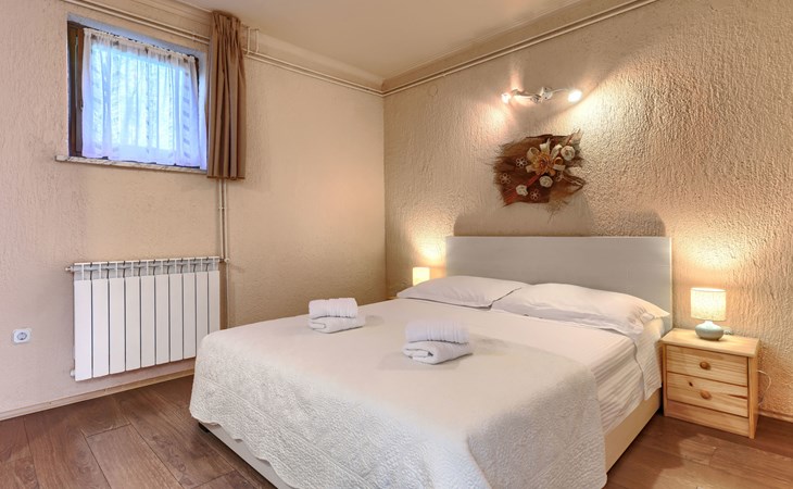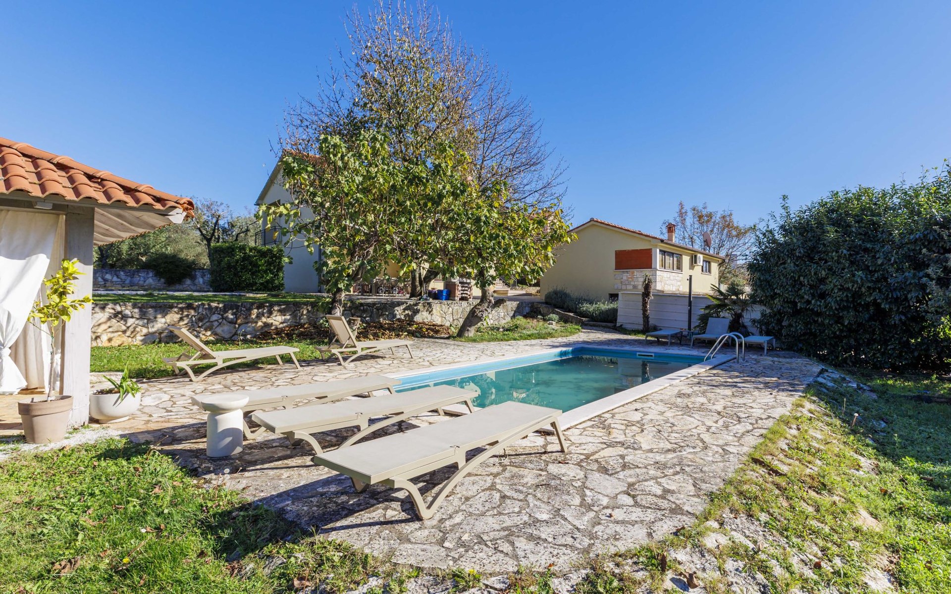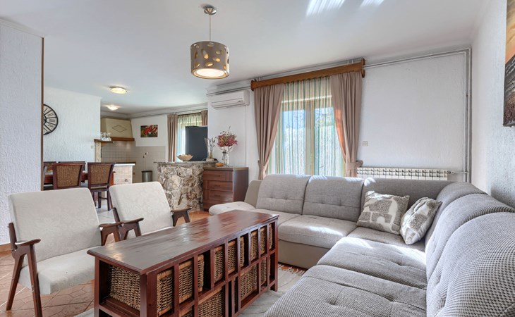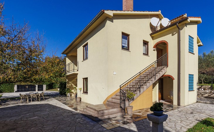 Bašići 12 km van Poreča: Villa "Elli", van 2 verdiepingen. 3 km van het centrum van Tinjan, zonnige ligging, 12 km van zee, aan een weg. Voor alleengebruik: terrein 2.255 m2 met gazon en bomen, openluchtzwembad hoekig (4 x 8 m, 140 cm diepte, seizoensgebonden beschikbaarheid: 01.Mei. - 01.Okt.) met trap. Buitendouche, terras (25 m2), tuinmeubelen, barbecue, kinderspeelplaats (glijbaan, schommel), onderhoud zwembad door de eigenaar/tuinman. In het huis: internetaansluiting, wasmachine. Parkeerplaats (voor 4 auto's) bij het huis op het terrein. Winkel 3 km, supermarkt 7 km, restaurant 100 m, bushalte 3 km, kiezelstrand 12 km, rotsstrand 12 km. Surfschool 12 km, wandelroutes, vanaf het huis, fietspad 100 m. Attracties in de buurt: Adrenalin Park Kringa 5 km. De eigenaar accepteert geen jeugdgroepen.
