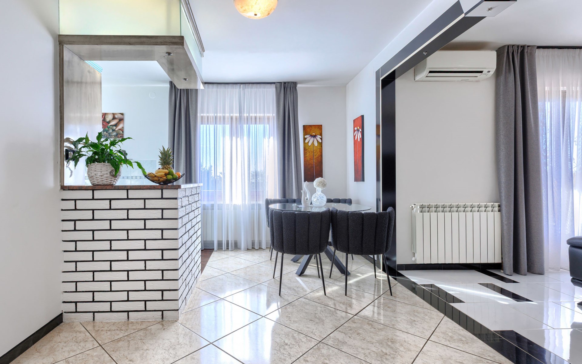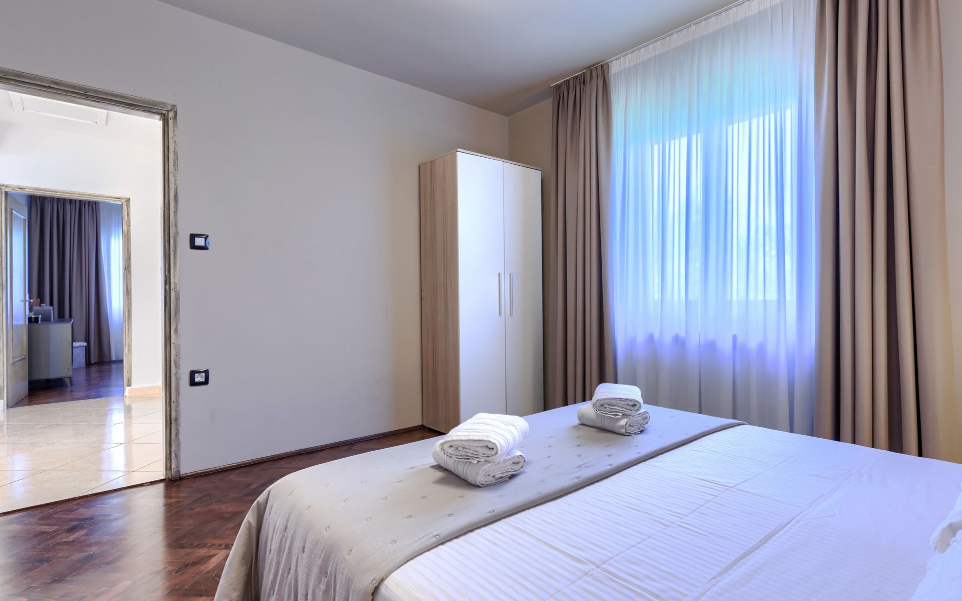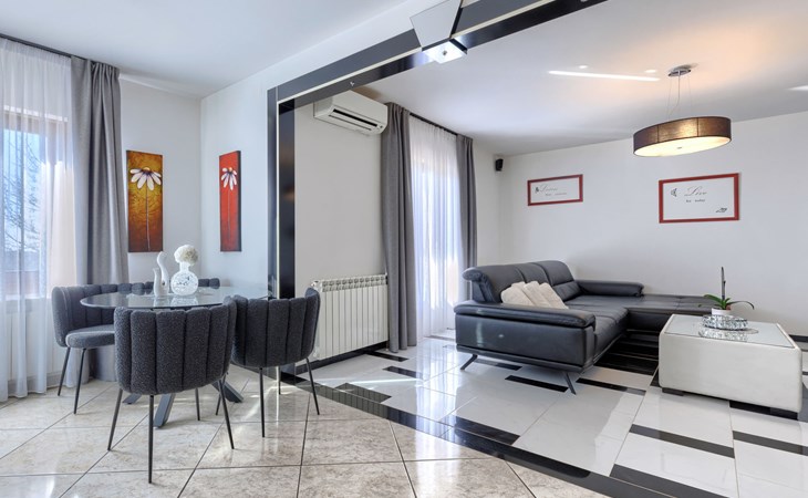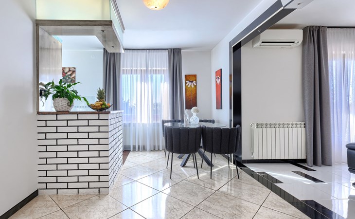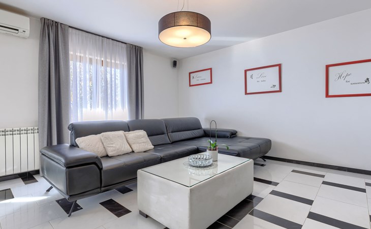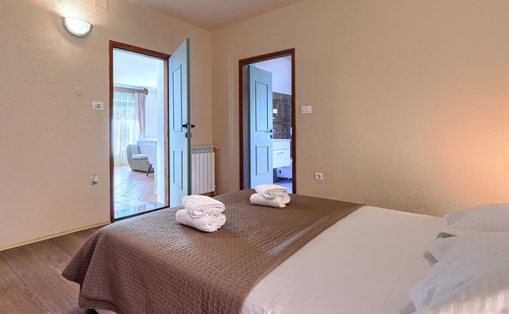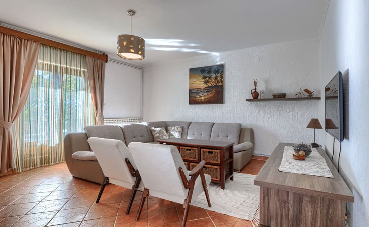 Bašići 12 km van Poreča: Villa "Elli", van 2 verdiepingen. 3 km van het centrum van Tinjan, zonnige ligging, 12 km van zee, aan een weg. Voor alleengebruik: terrein 2.255 m2 met gazon en bomen, openluchtzwembad hoekig (4 x 8 m, 140 cm diepte, seizoensgebonden beschikbaarheid: 01.Mei. - 01.Okt.) met trap. Buitendouche, terras (25 m2), tuinmeubelen, barbecue, kinderspeelplaats (glijbaan, schommel), onderhoud zwembad door de eigenaar/tuinman. In het huis: internetaansluiting, wasmachine. Parkeerplaats (voor 4 auto's) bij het huis op het terrein. Winkel 3 km, supermarkt 7 km, restaurant 100 m, bushalte 3 km, kiezelstrand 12 km, rotsstrand 12 km. Surfschool 12 km, wandelroutes, vanaf het huis, fietspad 100 m. Attracties in de buurt: Adrenalin Park Kringa 5 km. De eigenaar accepteert geen jeugdgroepen.