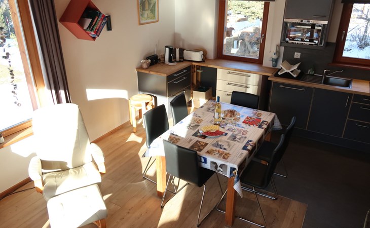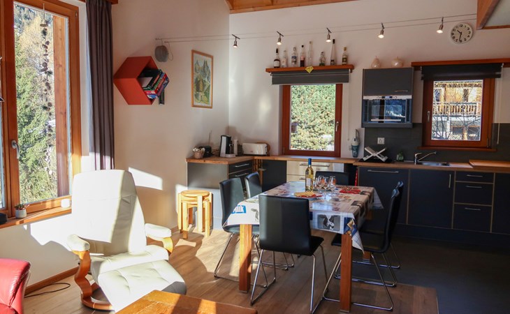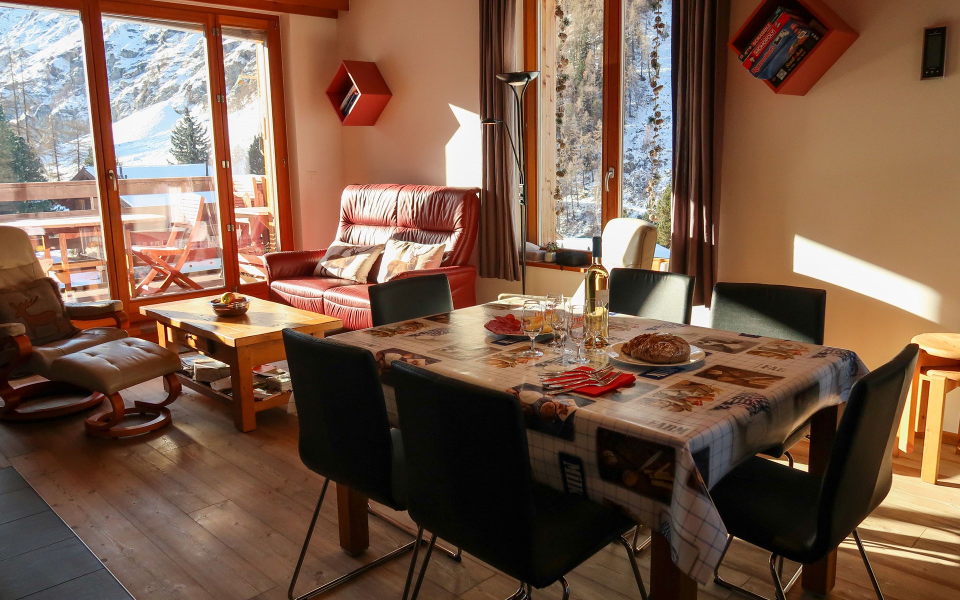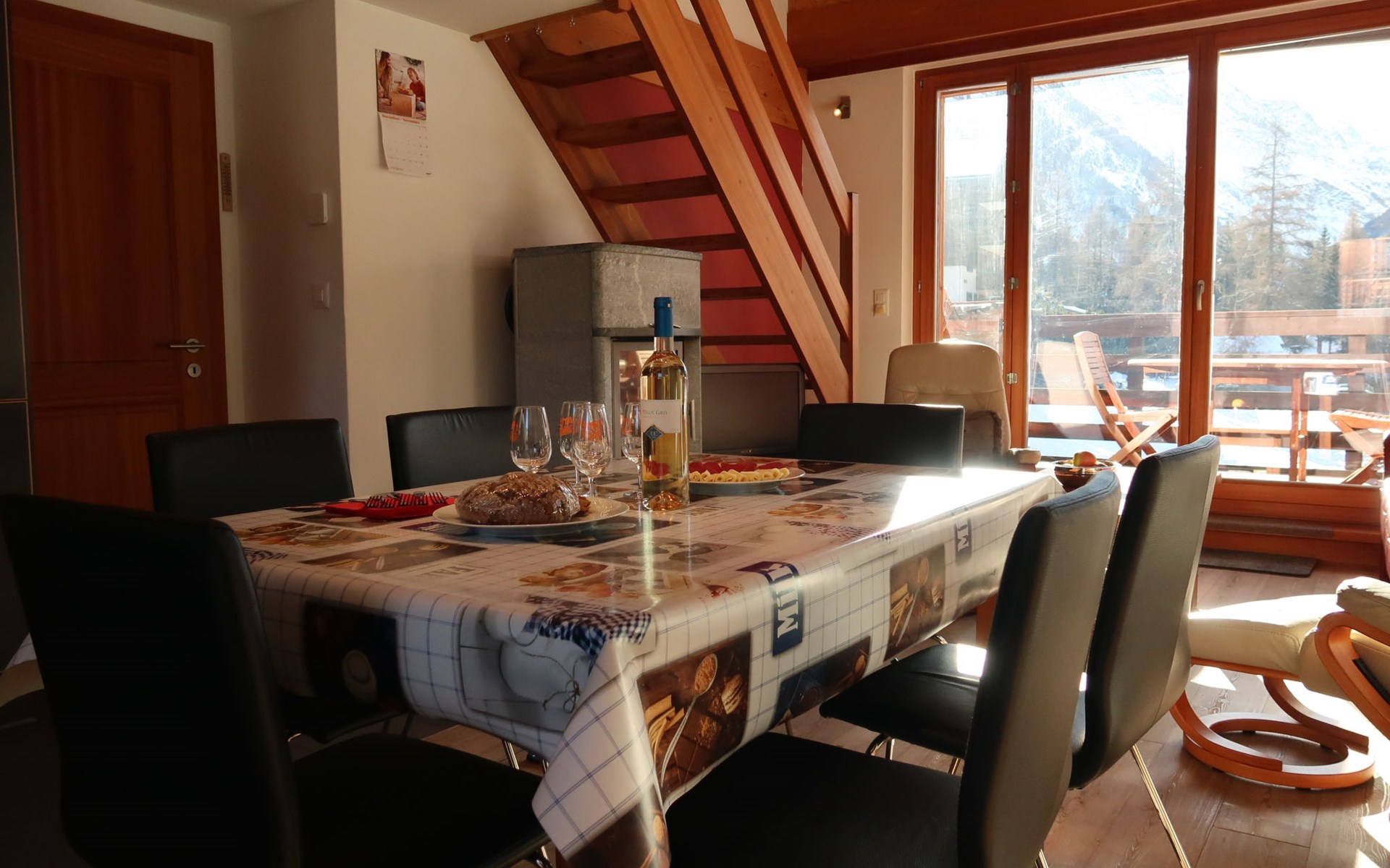 Appartementencomplex "Ryad C Zinal", 1.700 m boven zeeniveau. In de plaats, rustige, zonnige ligging tegen een helling, in een woonwijk, op het zuiden. Voor medegebruik: weide. In het huis: berging voor ski's, centrale verwarming. 's winters 4x4 aanbevolen. Trappenweg naar het huis. Parkeerplaats nr. Ryad C bij het huis. Supermarkt 800 m, restaurant 700 m, bakkerij, café 800 m, bushalte "Zinal télécabine" 850 m, overdekt zwembad 1 km. Kabelbaan op 1 km, skiverhuur 800 m, langlaufloipe 1 km. Auto noodzakelijk.