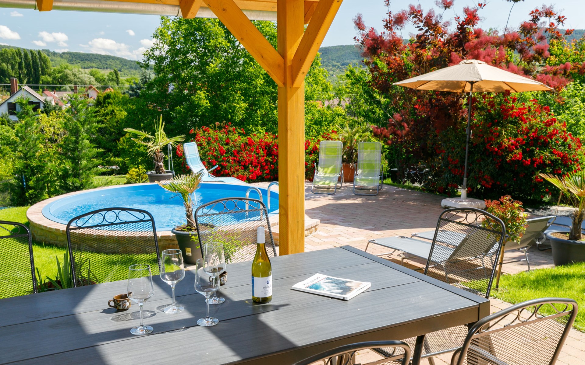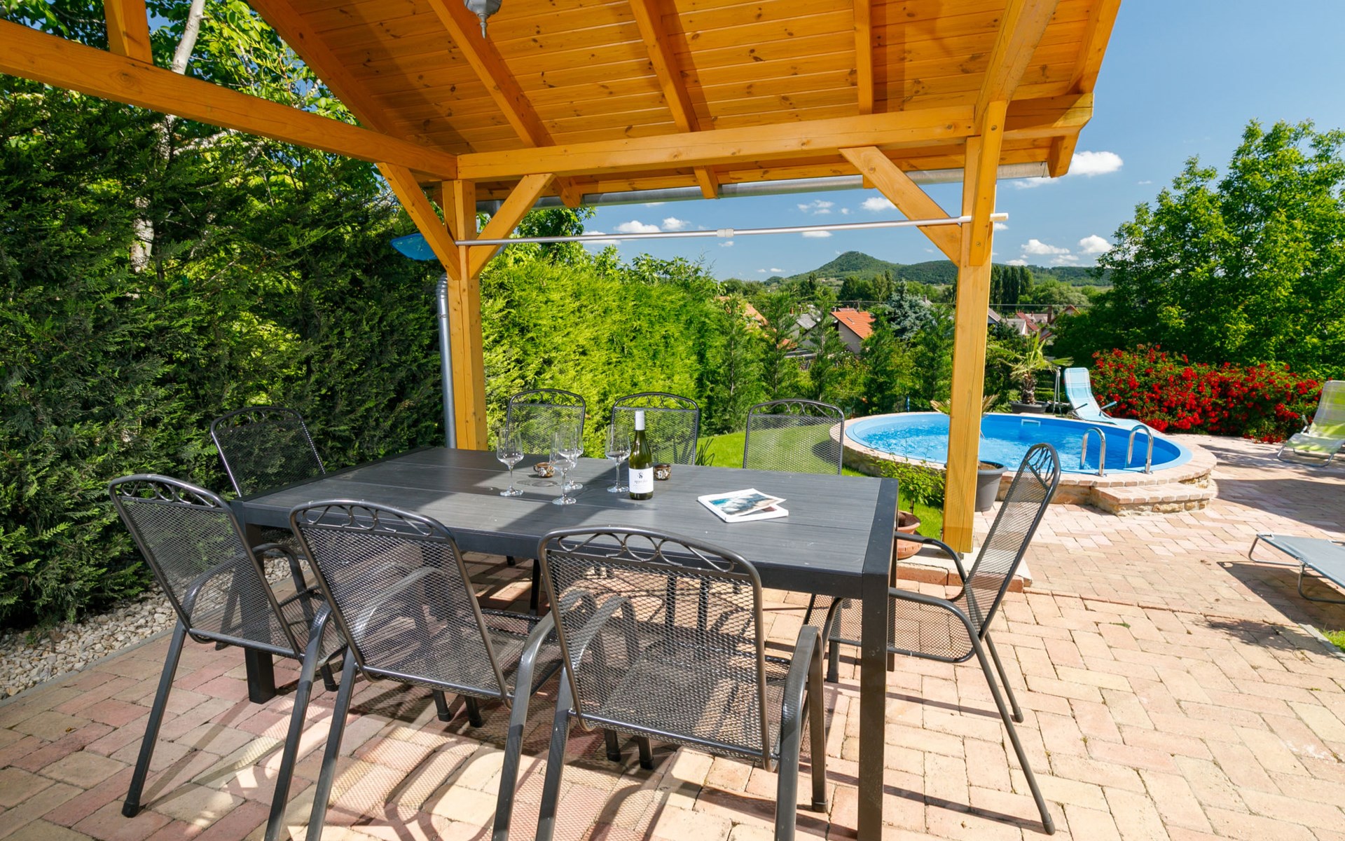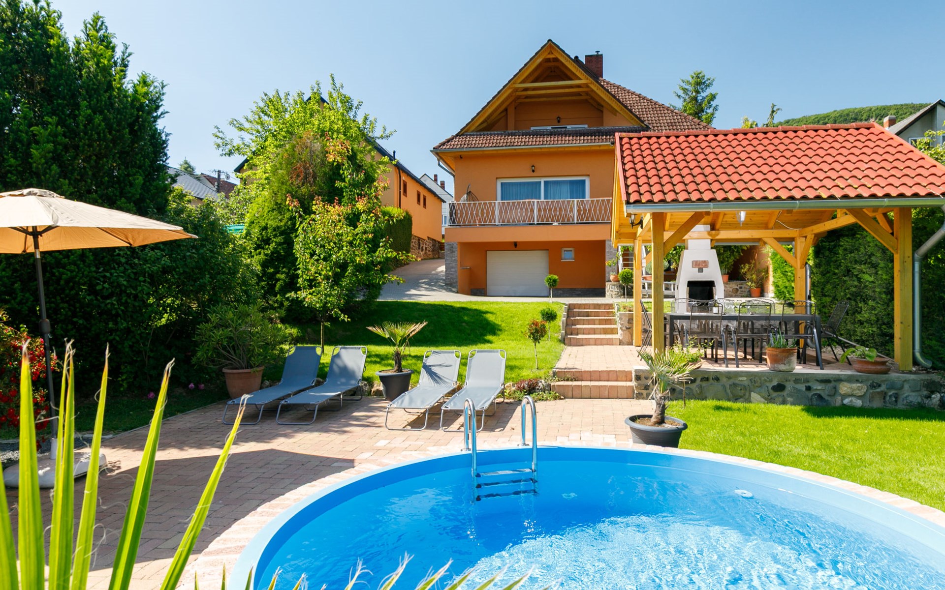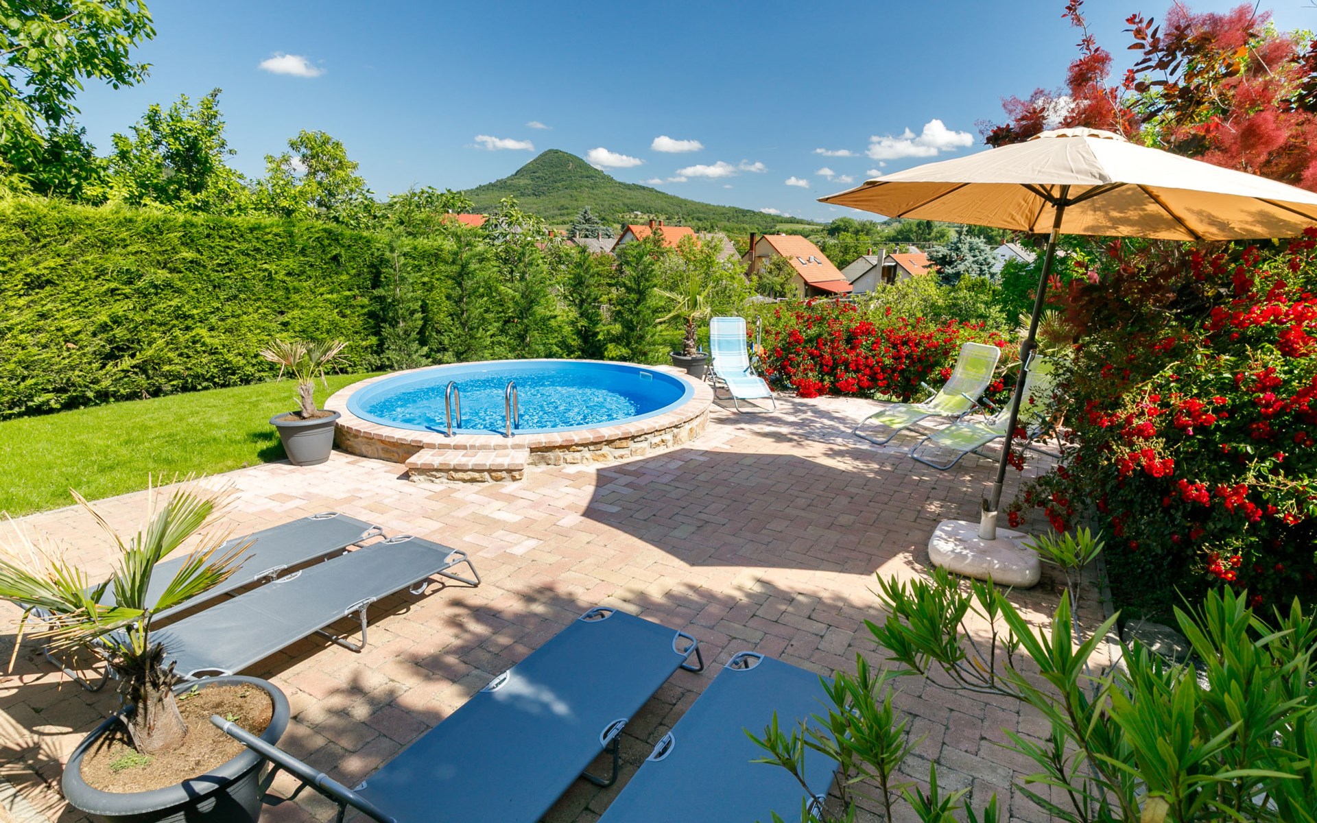 Badacsonytomaj 25 km van Keszthely: Mooi Huis met 2 woningen "Beate". 1.4 km van het centrum van Badacsonytomaj, 4.5 km van het centrum van Badacsony, 38 km van het centrum van Keszthely, tegen een helling, in een woonwijk, 2 km van het meer, 1.8 km van het strand. Voor medegebruik: terrein 900 m2 (omheind) met gazon. Kinderspeelplaats. Voor alleengebruik: tuin op verschillende niveaus met gazon, openluchtzwembad (4 x 2 m, 1 cm diepte, seizoensgebonden beschikbaarheid: 01.Mei. - 30.Sep.). Tuinmeubelen, parkeerplaats (voor 3 auto's) op het terrein. Winkel 800 m, levensmiddelenwinkel 300 m, supermarkt 11 km, restaurant 1 km, bakkerij 1 km, fietsverhuur 1 km, grasstrand 2 km, thermaalbad "Hévíz" 30 km. Tennis 2 km, manege 4 km, fietspad 1.5 km, kinderspeelplaats 550 m. Attracties in de buurt: Festetics Castle 26 km, Tihany 37 km, Balatonfüred Annagora Aquapark 38 km, Tapolca Lake Cave Visitor Centre 10 km, Szigliget Castle 88 km, Folly Arboretum 3 km. De eigenaar woont in hetzelfde huis.