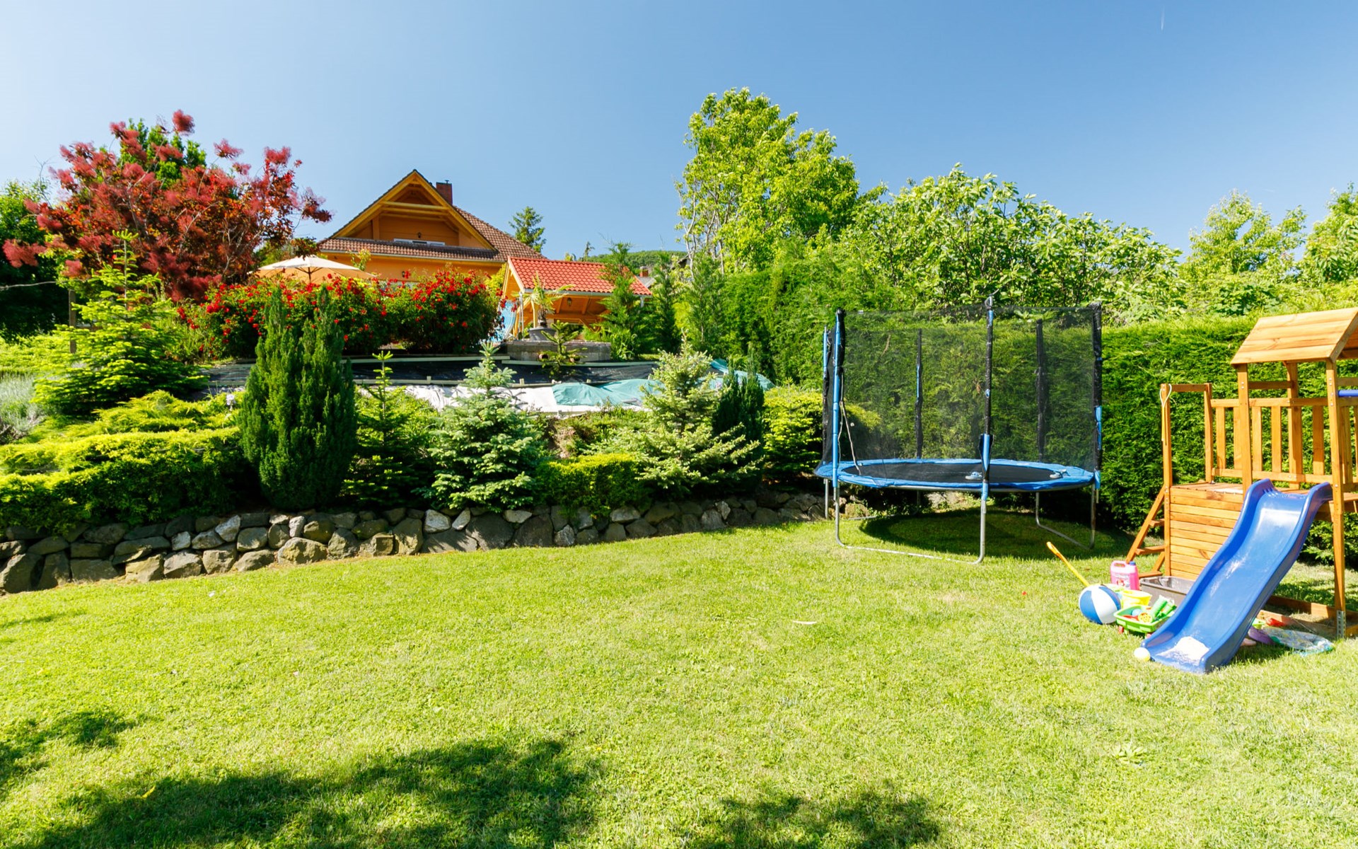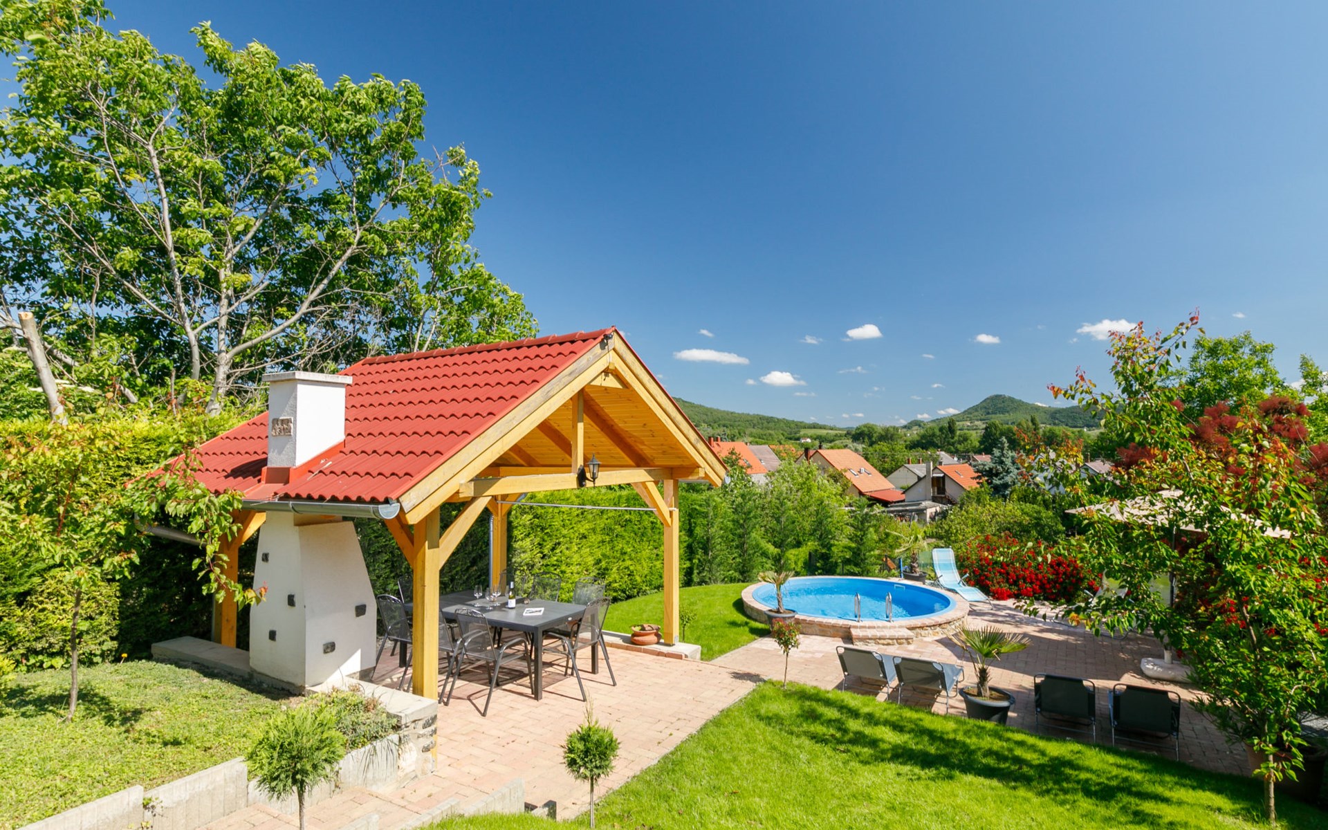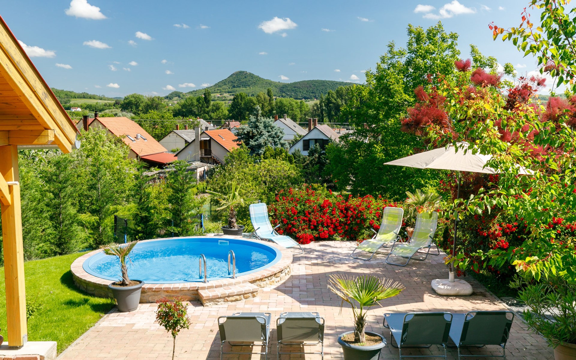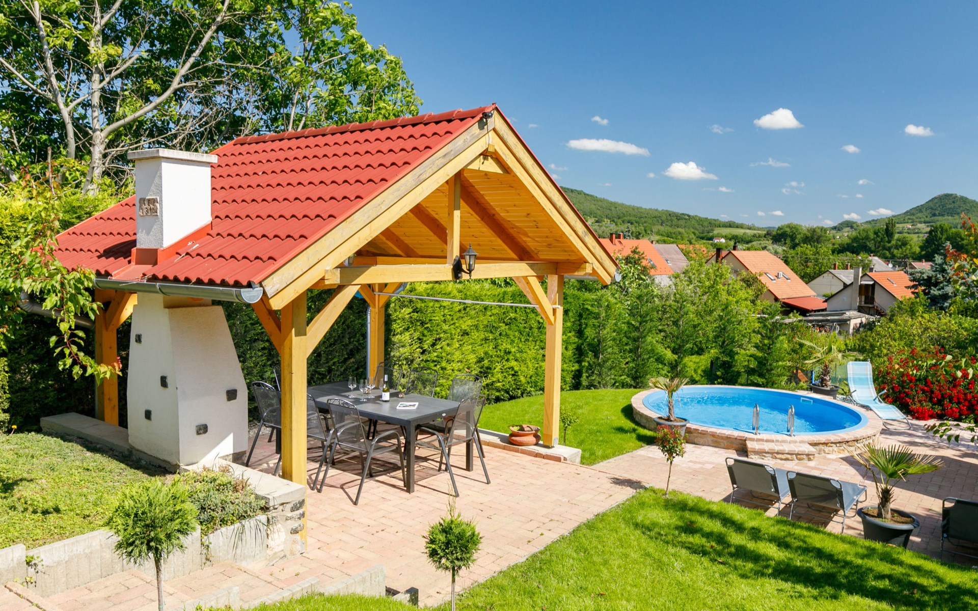Badacsonytomaj 25 km van Keszthely: Mooi Huis met 2 woningen "Beate". 1.4 km van het centrum van Badacsonytomaj, 4.5 km van het centrum van Badacsony, 38 km van het centrum van Keszthely, tegen een helling, in een woonwijk, 2 km van het meer, 1.8 km van het strand. Voor medegebruik: terrein 900 m2 (omheind) met gazon. Kinderspeelplaats. Voor alleengebruik: tuin op verschillende niveaus met gazon, openluchtzwembad (4 x 2 m, 1 cm diepte, seizoensgebonden beschikbaarheid: 01.Mei. - 30.Sep.). Tuinmeubelen, parkeerplaats (voor 3 auto's) op het terrein. Winkel 800 m, levensmiddelenwinkel 300 m, supermarkt 11 km, restaurant 1 km, bakkerij 1 km, fietsverhuur 1 km, grasstrand 2 km, thermaalbad "Hévíz" 30 km. Tennis 2 km, manege 4 km, fietspad 1.5 km, kinderspeelplaats 550 m. Attracties in de buurt: Festetics Castle 26 km, Tihany 37 km, Balatonfüred Annagora Aquapark 38 km, Tapolca Lake Cave Visitor Centre 10 km, Szigliget Castle 88 km, Folly Arboretum 3 km. De eigenaar woont in hetzelfde huis.
