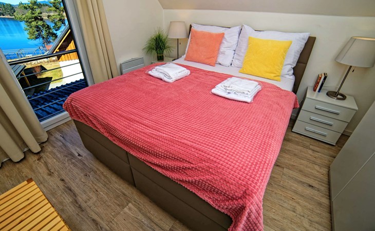 Kindvriendelijk, moderne vakantiecomplex "Lakeside Village". 45 huizen in de plaats. 10 appartementen in de woning. Buiten de plaats, rustige, zonnige ligging, direct aan het meer. Voor medegebruik: terrein. Privé-strand, beachvolleybal, barbecue, stookplaats, kinderspeelplaats. In het complex: receptie, bar, bistro, sauna, massage, hot tub (alles extra), kiosk, fietsverhuur. Beschikbaar: boot (extra). Broodjesservice en ontbijt op aanvraag. In de winter sneeuwkettingen aanbevolen. Parkeerplaats bij het huis. Oplaadstation. Bushalte "Frymburk Vřesná, rozcestí" 3.5 km, meer (zwemmen) "Lipno". Manege 500 m, ijsbaan 11 km. Attracties in de buurt: Aquaworld, Marina Lipno, Bobová dráha, Lanový park, Bikepark (Lipno) 15 km, Český Krumlov (UNESCO) 35 km. Bekende skigebieden kunnen gemakkelijk worden bereikt: Frymburk 5 km, Kramolin 15 km, Sternstein 25 km, Hochficht, Sterngartl 40 km. Wandelgebied Stezka korunami stromů (Lipno) 15 km. Baby uitrusting op aanvraag (extra). Vissen toegestaan (visvergunning noodzakelijk), privé aanlegsteiger voor een boot. De woningen kunnen onderling van inrichting verschillen.
