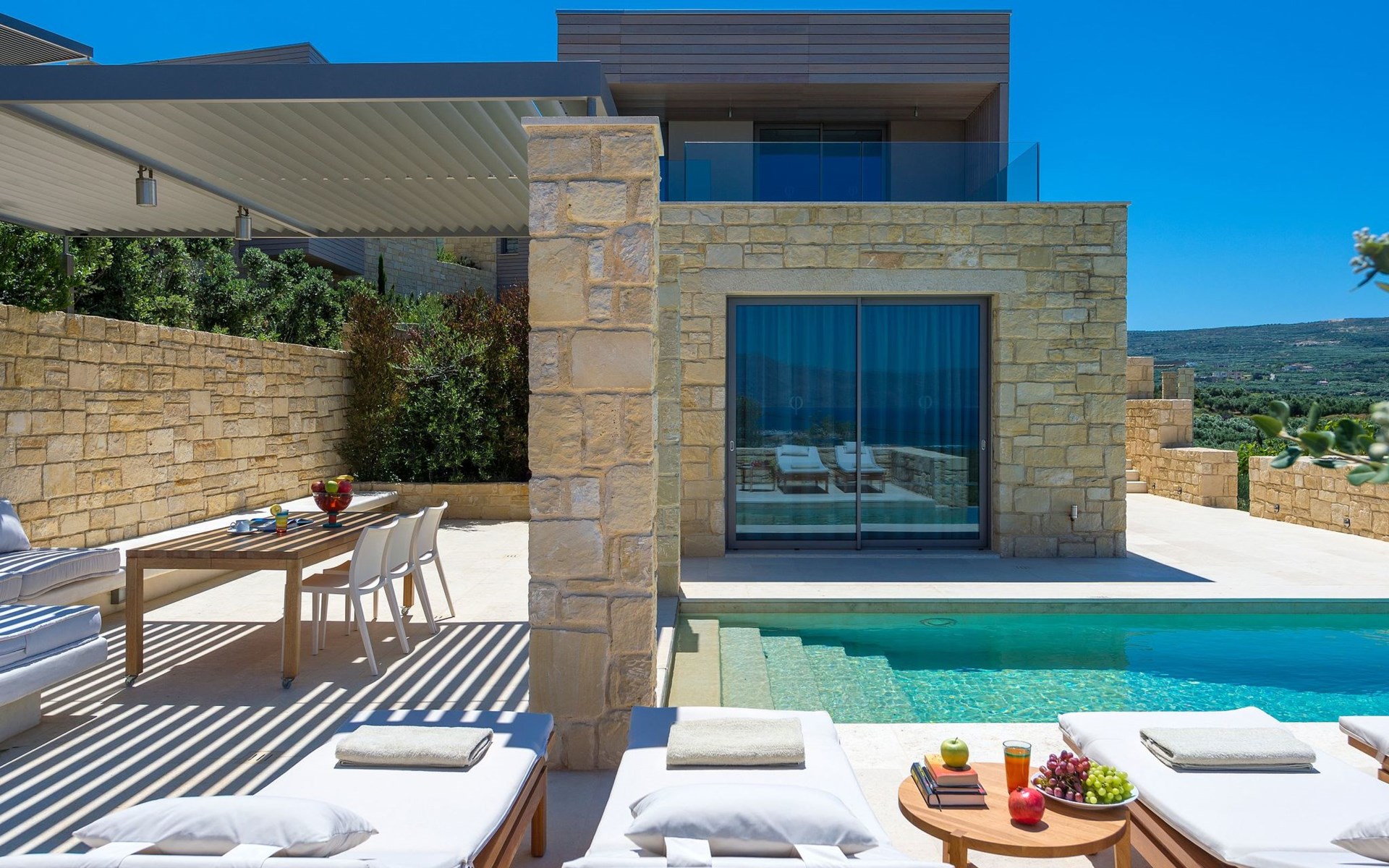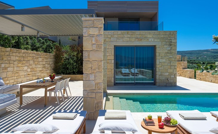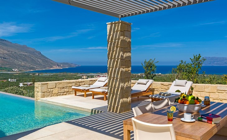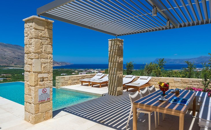 Set against the tranquil backdrop of a rural hillside, the villa Oneiro offers a slice of paradise just 2km from the bustling town of Kissamos and merely 1km from the nearest pristine beach. This north-east facing treasure trove is nestled within a striking distance of 30 minutes from the regional capital, Chania, and 55km from the airport, making it an ideal retreat for those craving a blend of seclusion and convenience. Positioned perfectly, it offers easy access to a myriad of other villages, beaches, and attractions, all within a comfortable drive, ensuring you experience the very best of Western Crete.Inside, villa Oneiro dazzles with its meticulous attention to comfort and style. The living spaces spread over two floors bathe in natural sunlight, pouring in through expansive windows that not only illuminate but also offer panoramic views of the lush surroundings. The exclusive Cimentogonia surfaces in the living area and bathrooms heighten the sense of luxury, while the open-plan kitchen comes fully equipped with Corian work surfaces and a comprehensive range of appliances for your culinary exploits. Not to mention, the ground floor hosts a double/twin bedroom with an en-suite spa shower, and the upper floor introduces a master bedroom with a large balcony overlooking the Aegean, and an open-plan bathroom to enjoy the view from the bath.The exterior of villa Oneiro is nothing short of breathtaking. The centerpiece is a private infinity pool where guests can immerse themselves in the tranquil waters under the sun with views stretching across to the Gramvousa Peninsular and Kissamos Bay. A stylish outdoor dining area under a specially-designed pergola allows for al fresco feasts amid a garden lush with endemic Mediterranean flora. Such a setting promises serene mornings and enchanting evenings under the Crete sky, designed to amplify the island's natural charm.Surrounded by the undisturbed beauty of Western Crete, villa Oneiro places guests within arm's reach of the island's best-kept secrets. From secluded beaches to quaint tavernas offering fresh, local cuisine, the opportunity to explore and immerse oneself in the local culture is boundless. Furthermore, with the added benefit of comprehensive local knowledge from Youphoria villas' onsite host, guests can indulge in a tailored experience, from yoga classes and summer sports to guided walks and winery visits, ensuring no stone is unturned in this exquisite corner of the world.Villa Oneiro is not just a stay; it's an experience woven from the fabric of dreams. With our unparalleled hospitality, from in-house facilities to expert concierge services, we invite you to make this haven your home away from home. Whether it's the allure of hidden beaches, the taste of the local cuisine, or the adventure of exploring Crete's unspoiled corners, villa Oneiro stands as your gateway to a holiday framed by luxury, serenity, and the endless charm of Greek island life. 1042K91002953301