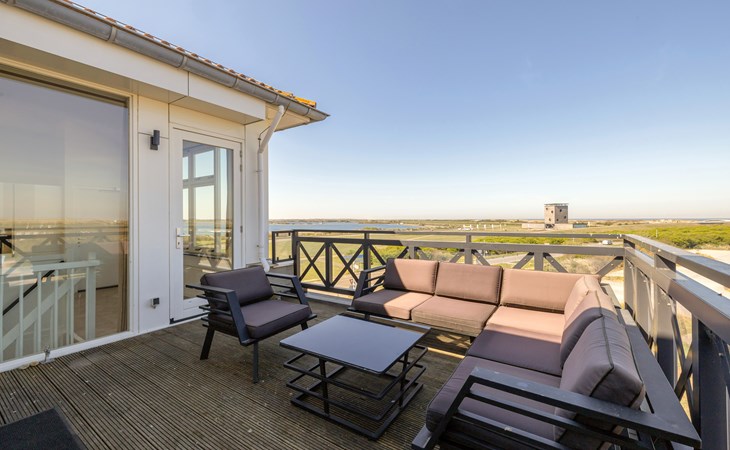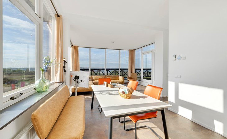 Rondom de appartementen ligt een royaal terras met uitzicht op de Brouwersdam. Dankzij de grote raampartijen geniet u volop van natuurlijk licht en een weids uitzicht over de omgeving. De combinatie van luxe, ruimte en ligging maakt dit een bijzondere plek om te verblijven aan de Zeeuwse kust.