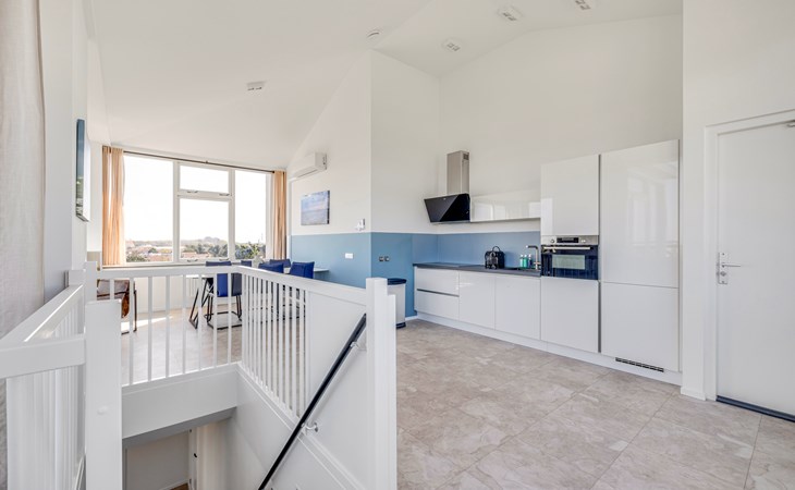 Op de bovenste verdieping van Residence Kabbelaarsbank bevinden zich twee exclusieve, geschakelde penthouses: de Parelduiker en Zeezicht. Beide beschikken over een eigen voordeur vanuit dezelfde gang, waardoor u samen arriveert en toch volledige privacy behoudt. Via het royale terras loopt u eenvoudig van het ene naar het andere penthouse, wat deze combinatie uniek maakt.
