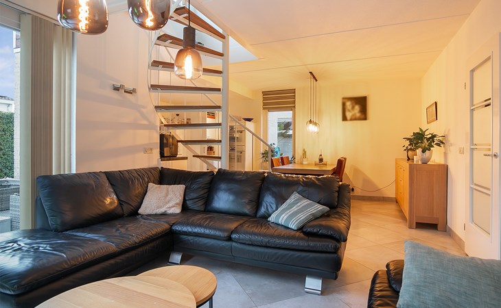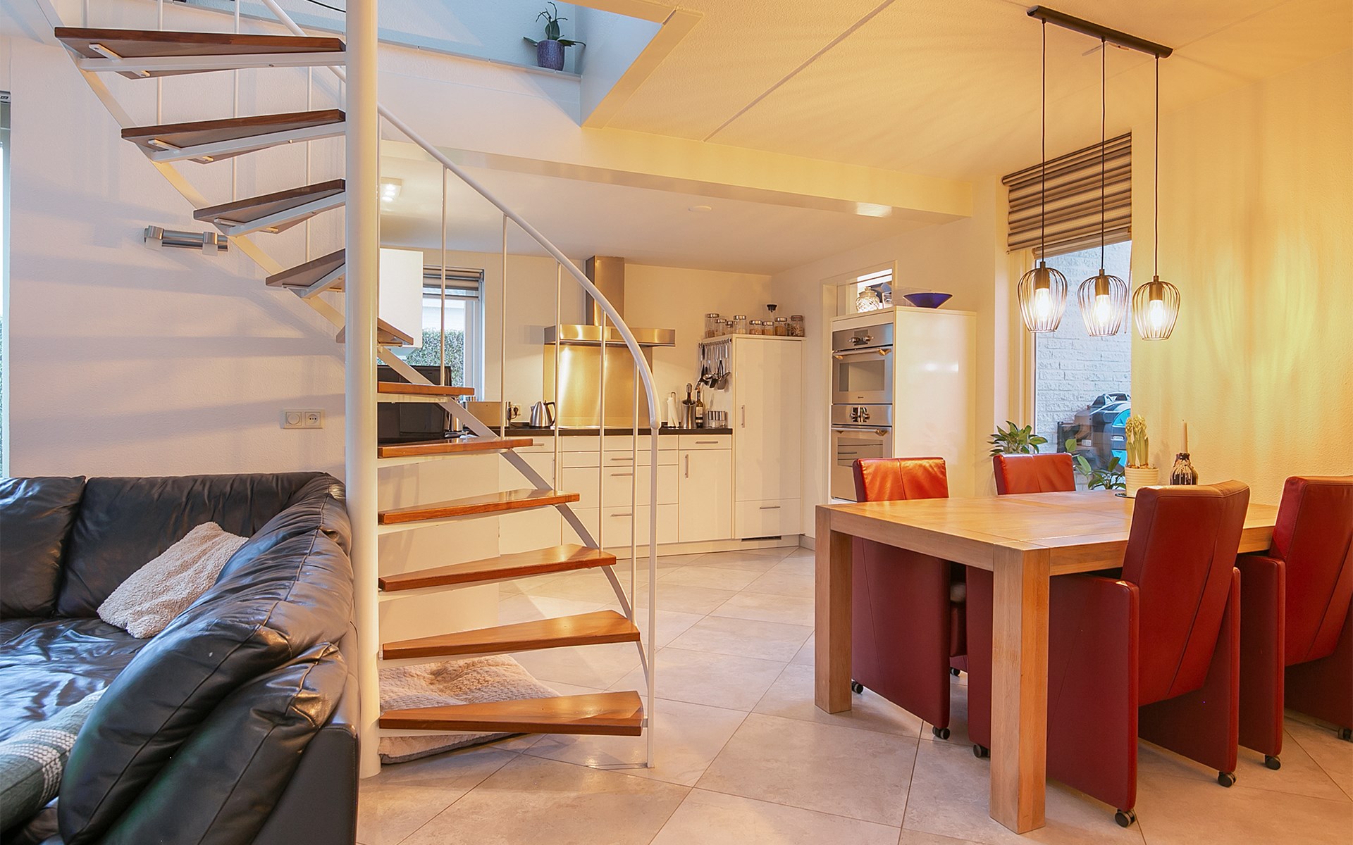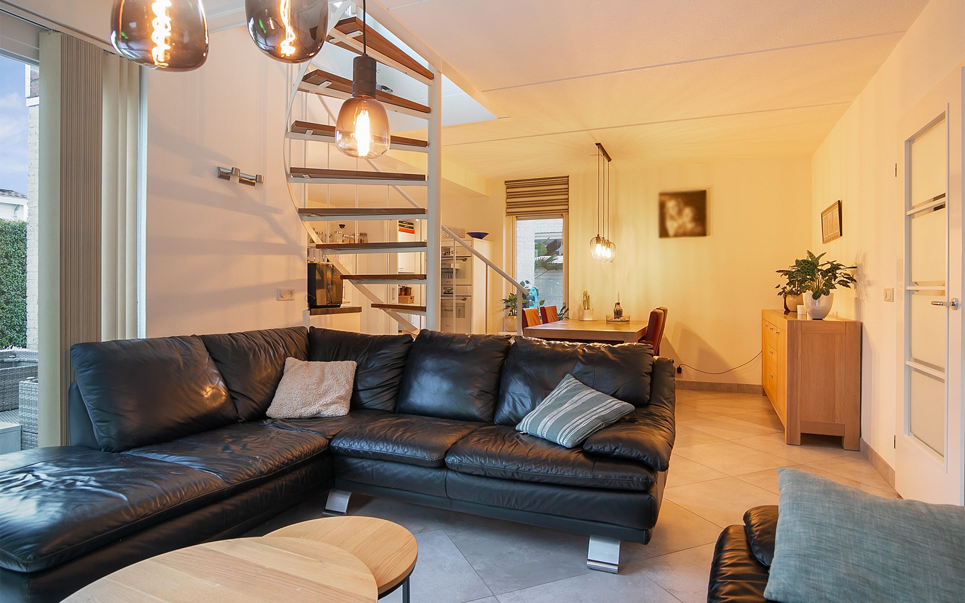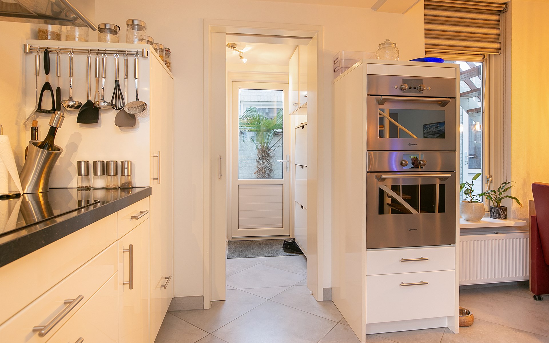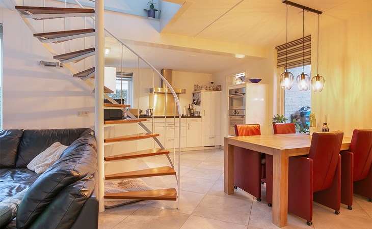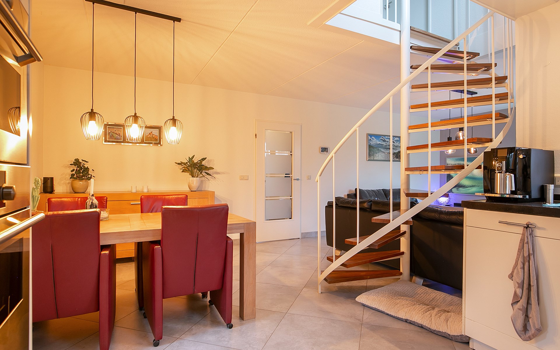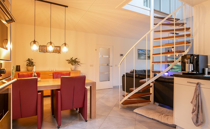 Vanuit de hal komt u in de ruime woonkamer met gezellige zithoek met Smart-tv en uitzicht op de tuin. De moderne open keuken is ruim en voorzien van inbouwapparatuur zoals een inductiekookplaat, vaatwasser, oven, magnetron en koel-vriescombinatie. Voor de koffieliefhebbers is een Nespresso koffiemachine aanwezig.