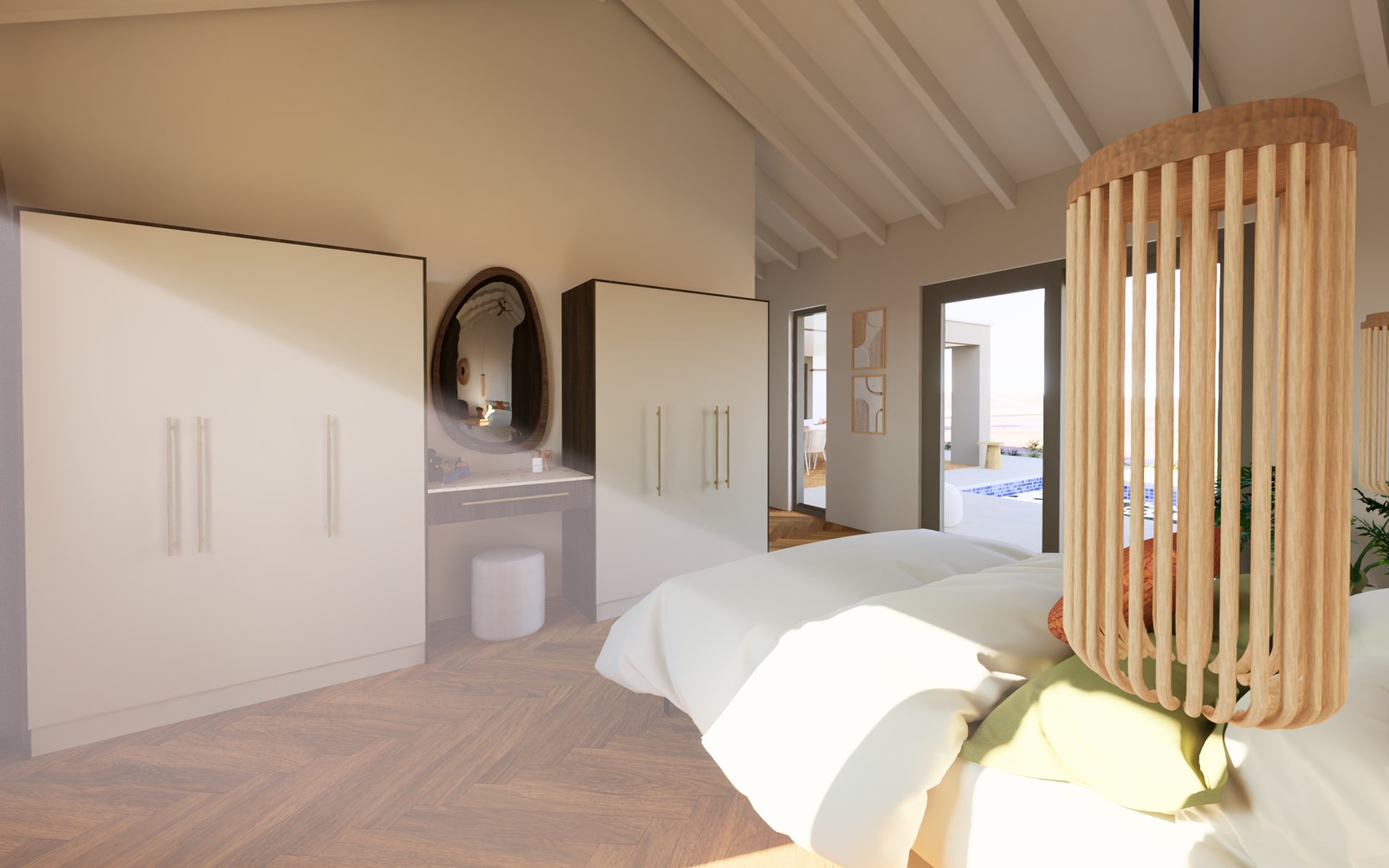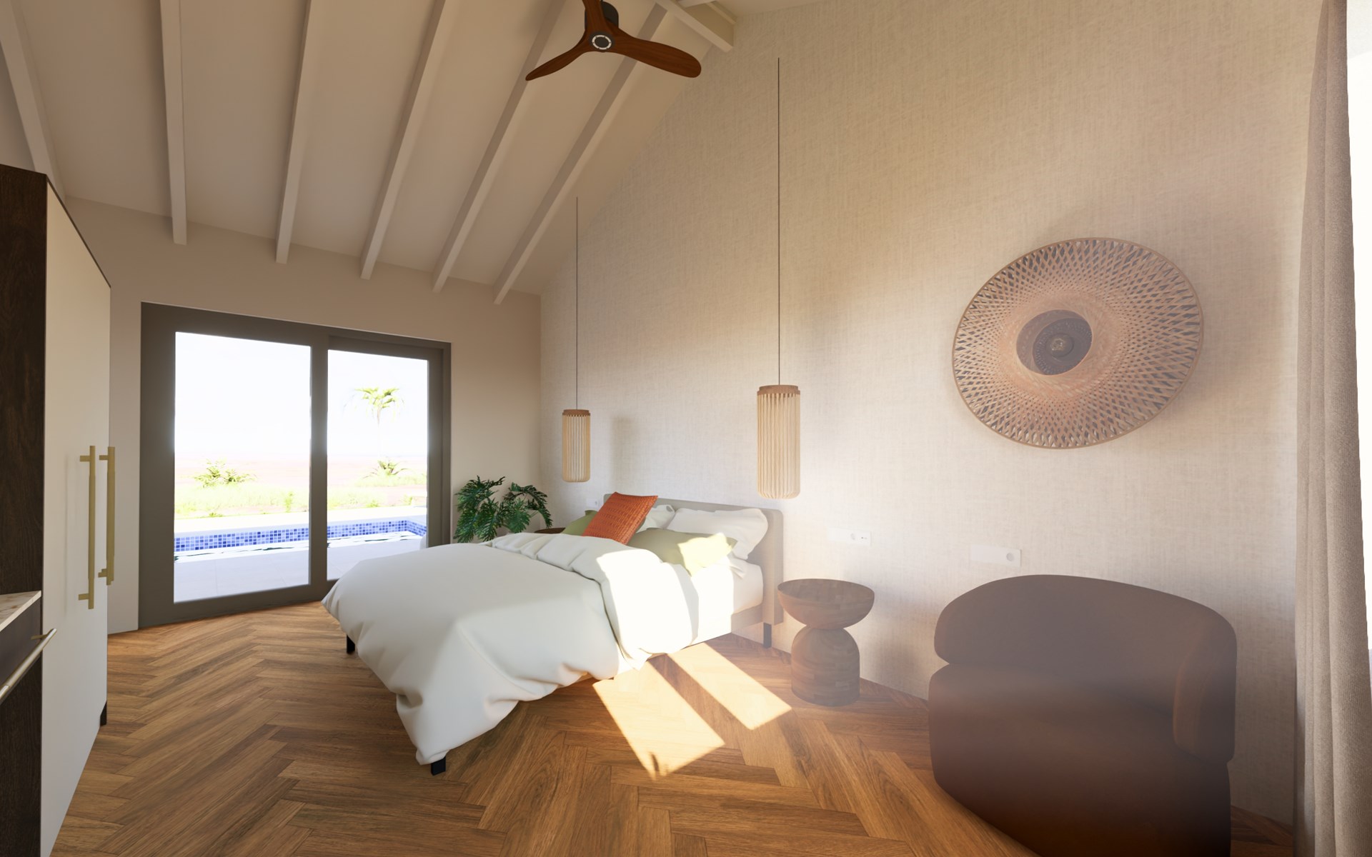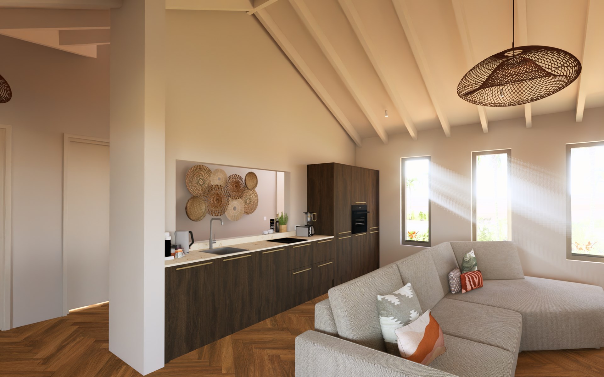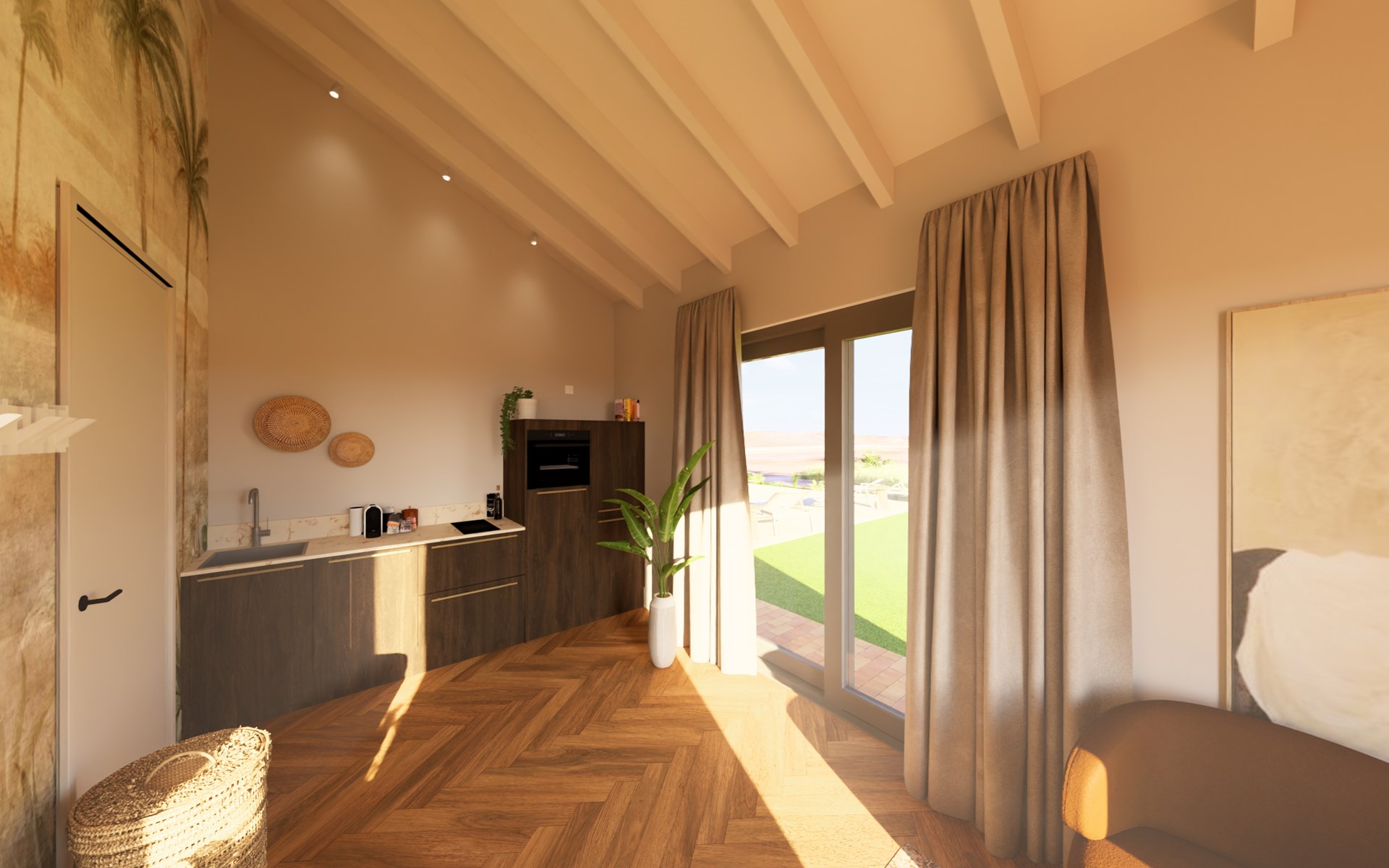 De villa is zeer sfeervol en luxe ingericht met oog voor detail. Warme materialen, natuurlijke tinten en hoogwaardige afwerking zorgen voor een elegante en ontspannen ambiance. Binnen en buiten lopen naadloos in elkaar over, zodat je optimaal geniet van het buitenleven.